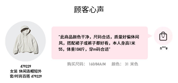 Uniqlo Women's Casual Hooded Short Jacket/Fashionable and Versatile 479229