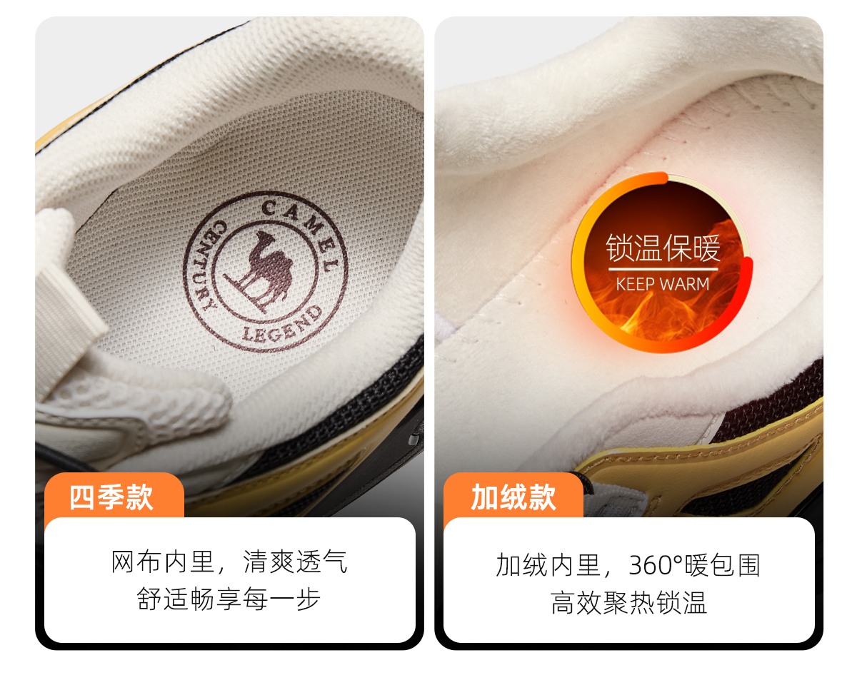 [Same Style as Wang Junkai] Camel Cloud Mountain 2Nd Generation Winter Men's Shoes with Fleece, Sports Hiking Shoes, Outdoor Trekking Shoes for Women