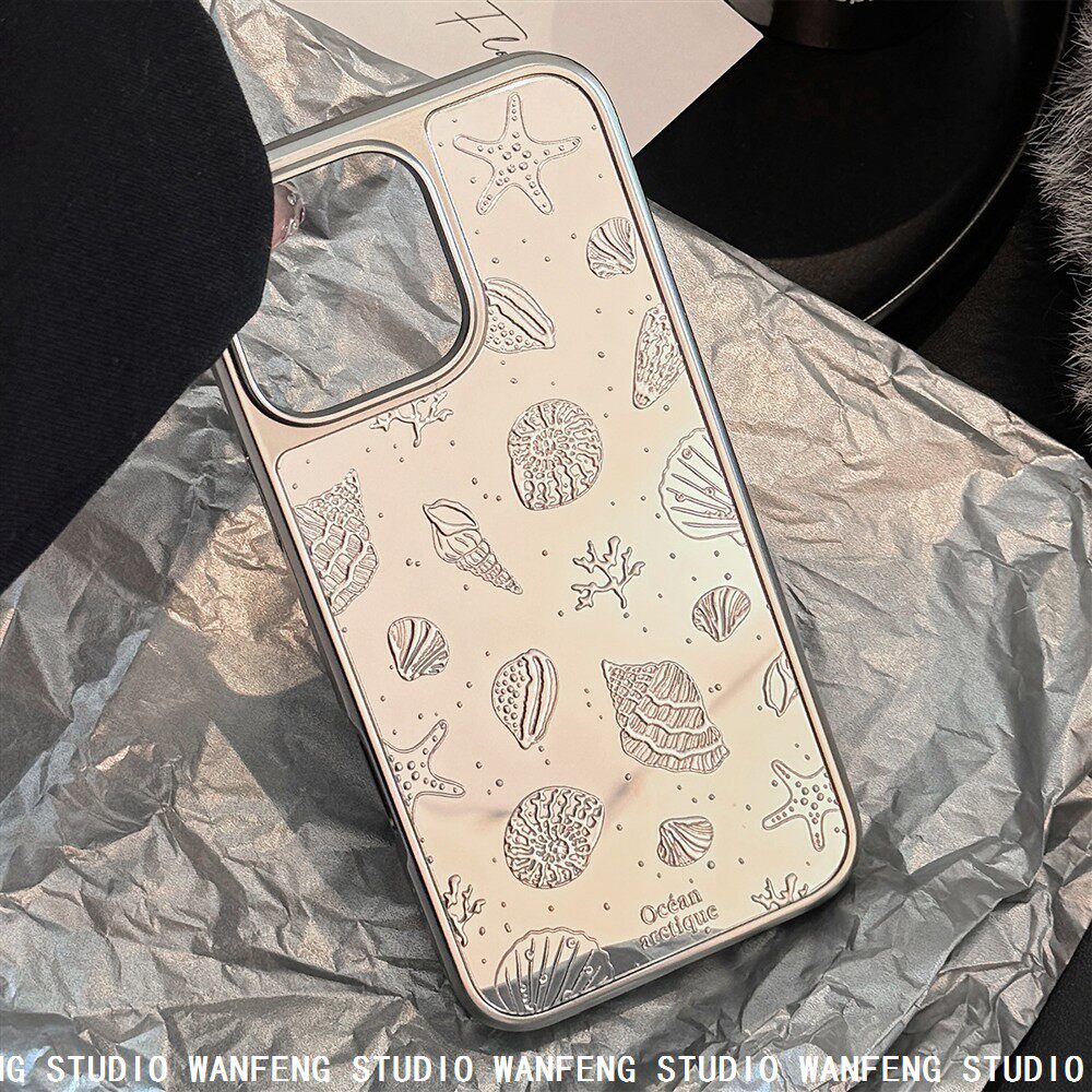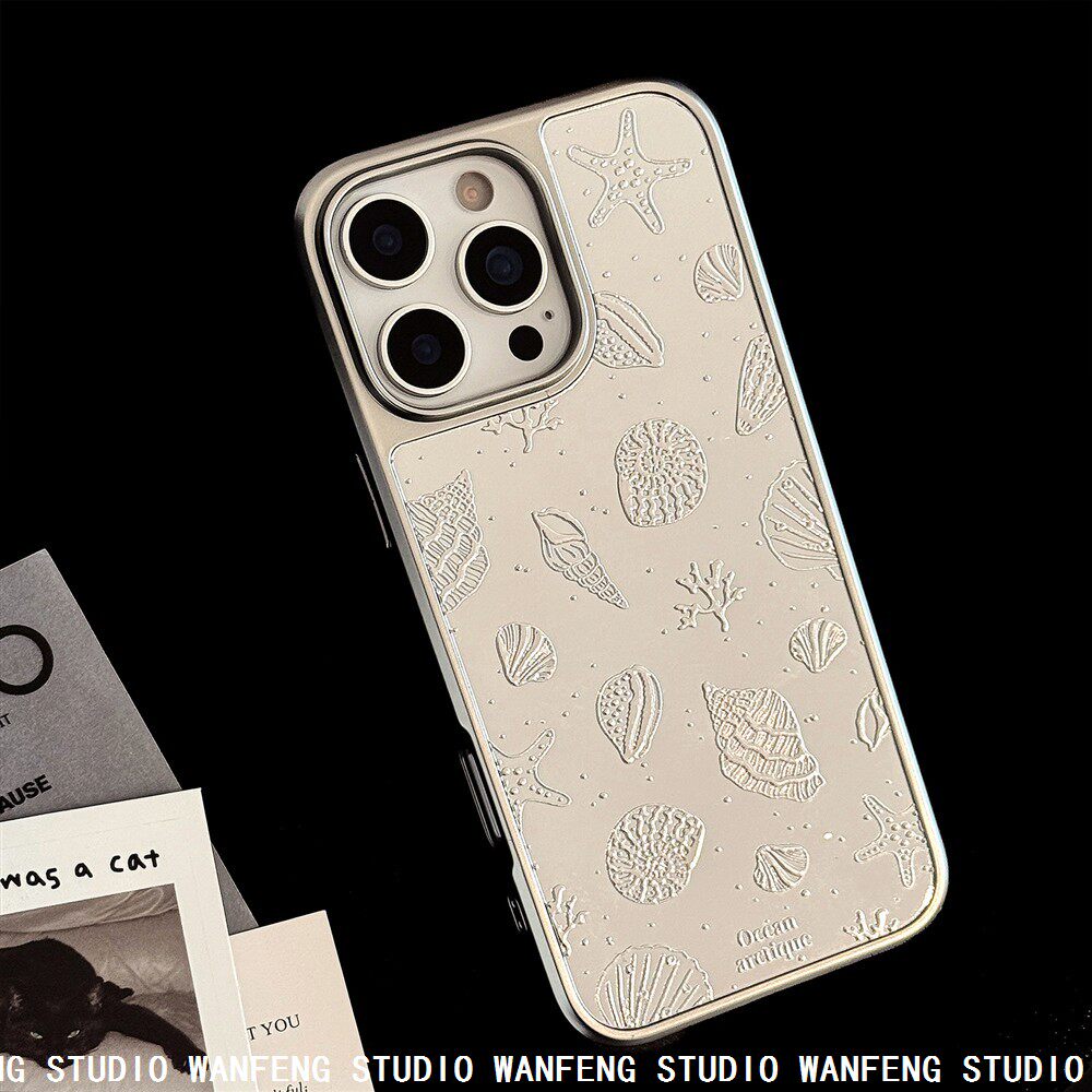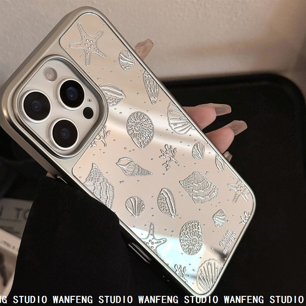 Gold-Plated Electroplating Suitable for iPhone 17 Pro Max, Apple 16 Phone Case, 15 Starfish Shell, 14 Mirror Surface, High-End 13