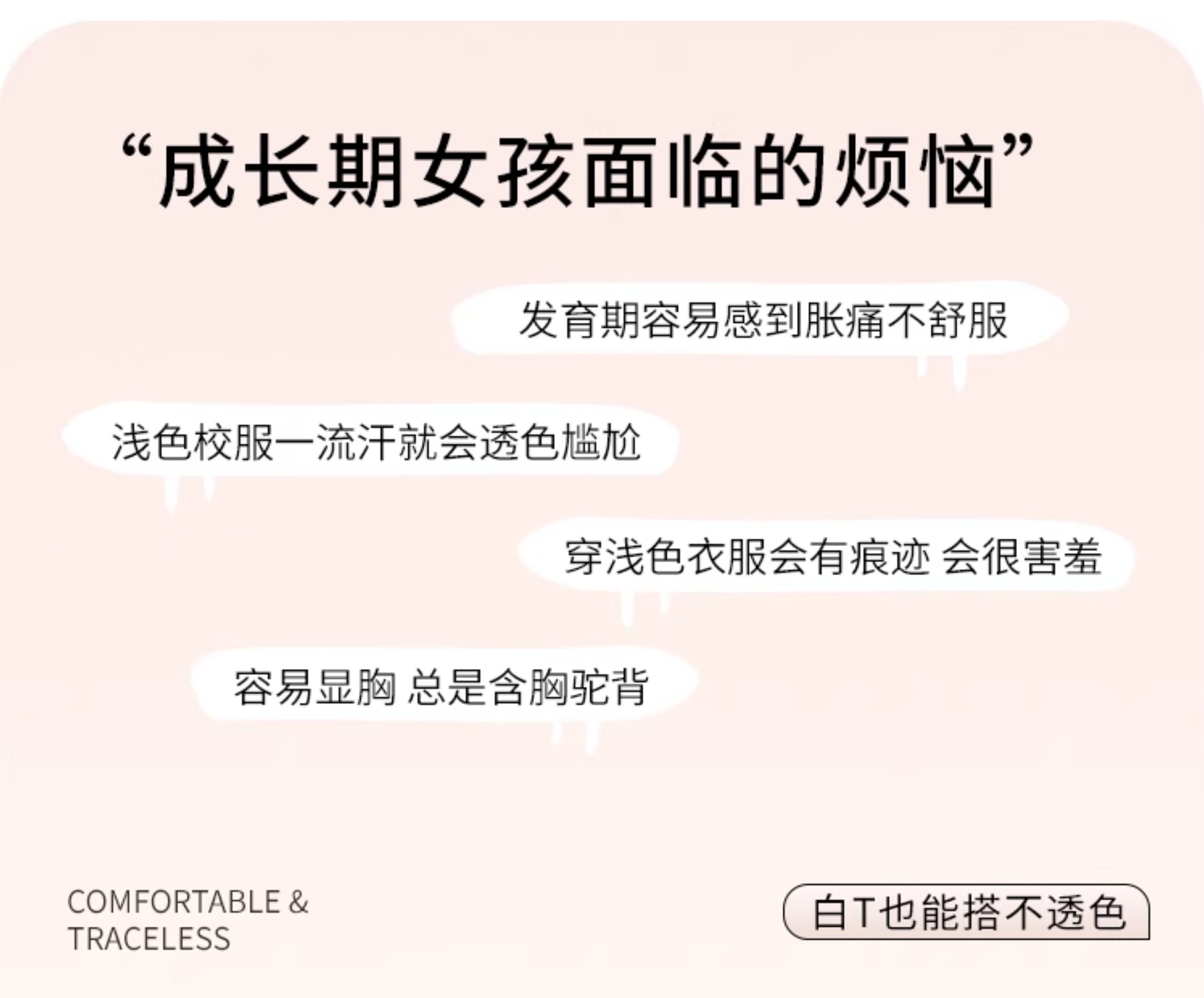 Yikuo Girl's Liquid Foundation Invisible Bra for Teenagers, Students, Junior High School Students, Developmental Period Girls' Vest Bra, High School