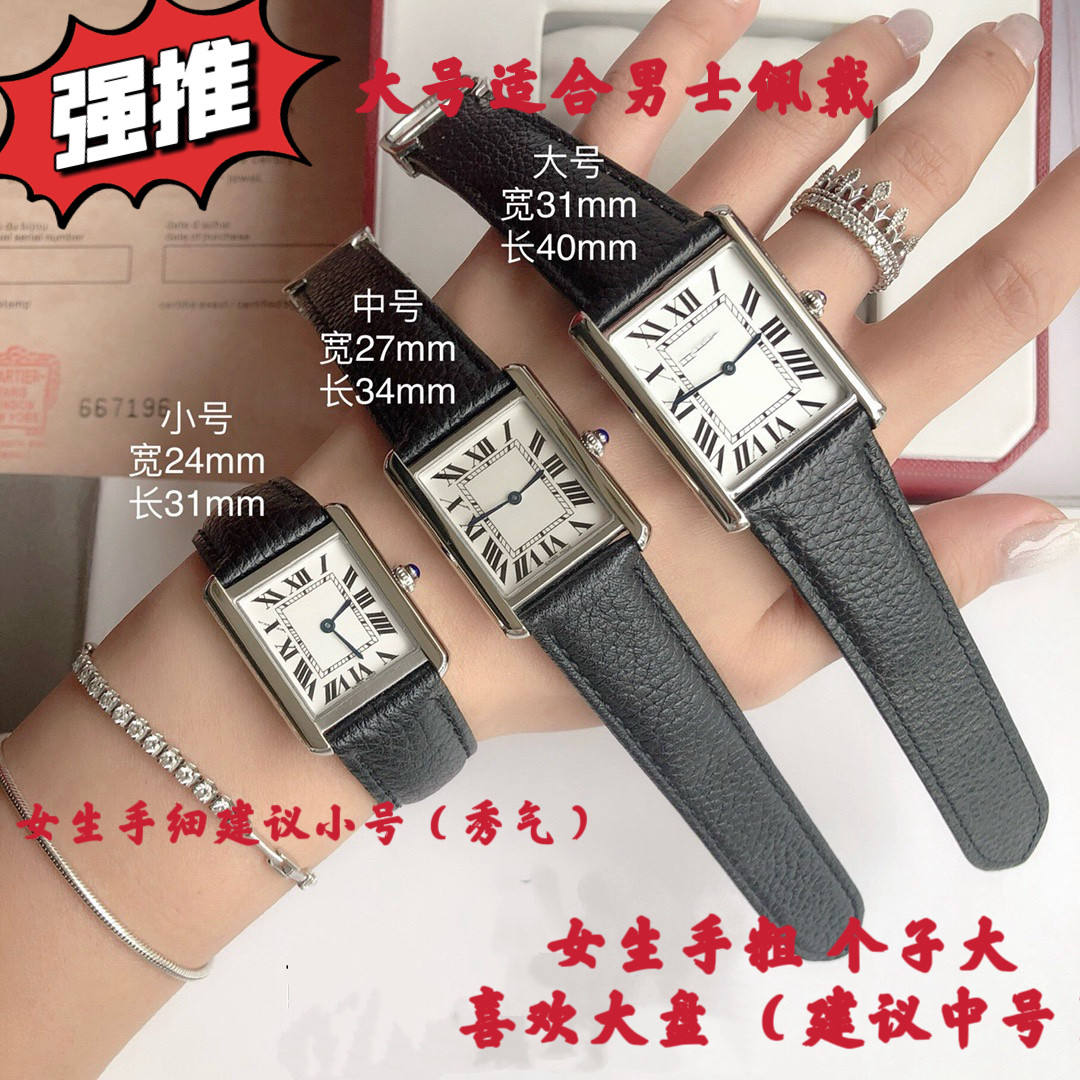 Rectangular Watch for Women, Classic Tank Style, Unisex Watch, Roman Numerals, Black Genuine Leather Watch, Calfskin, Vintage