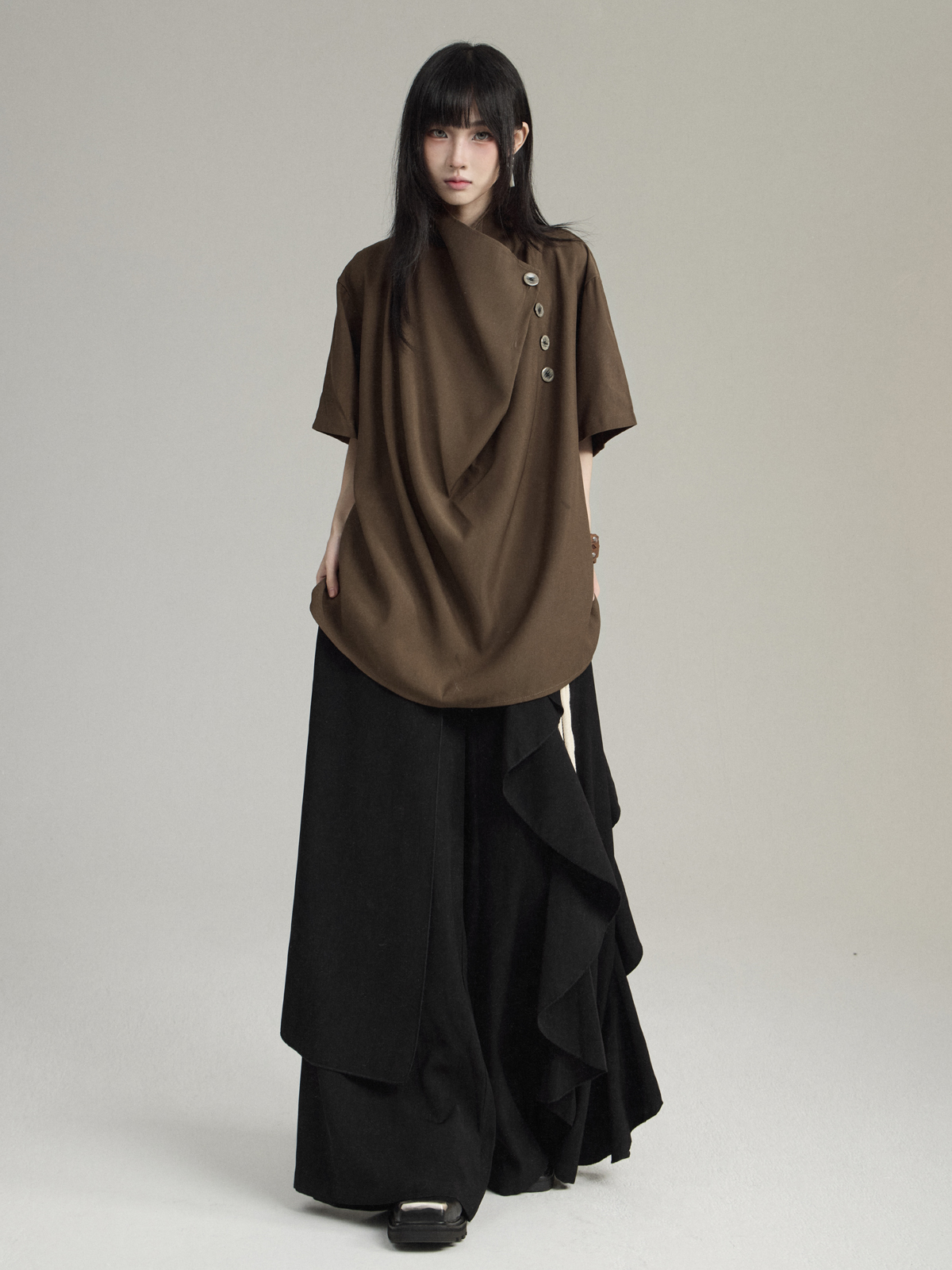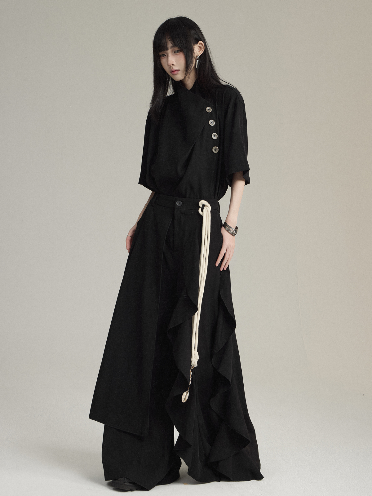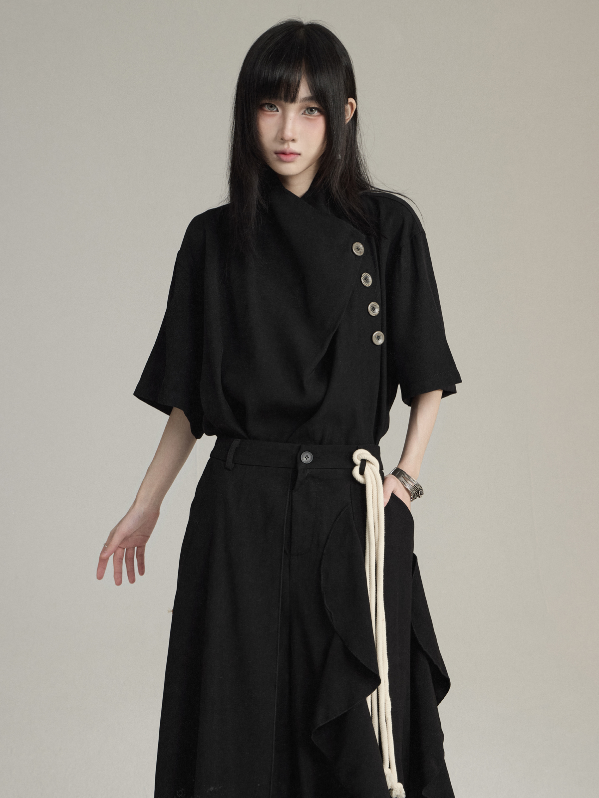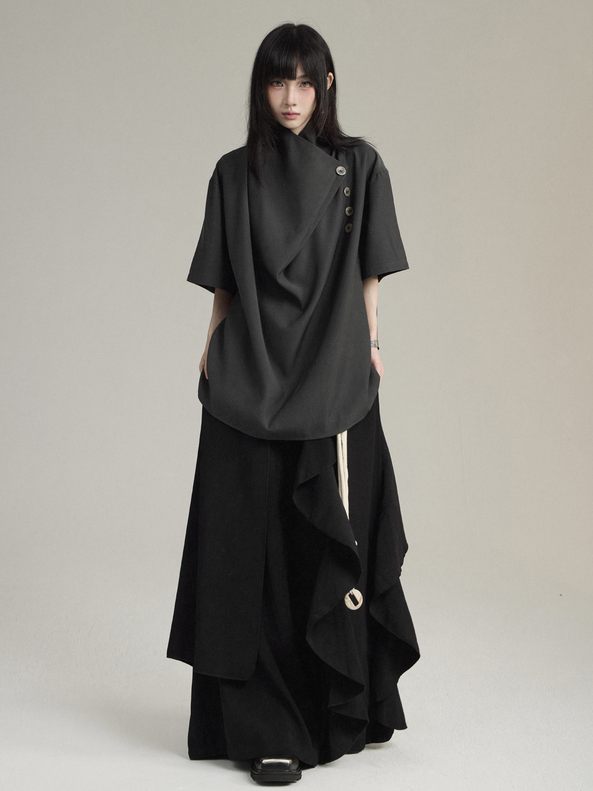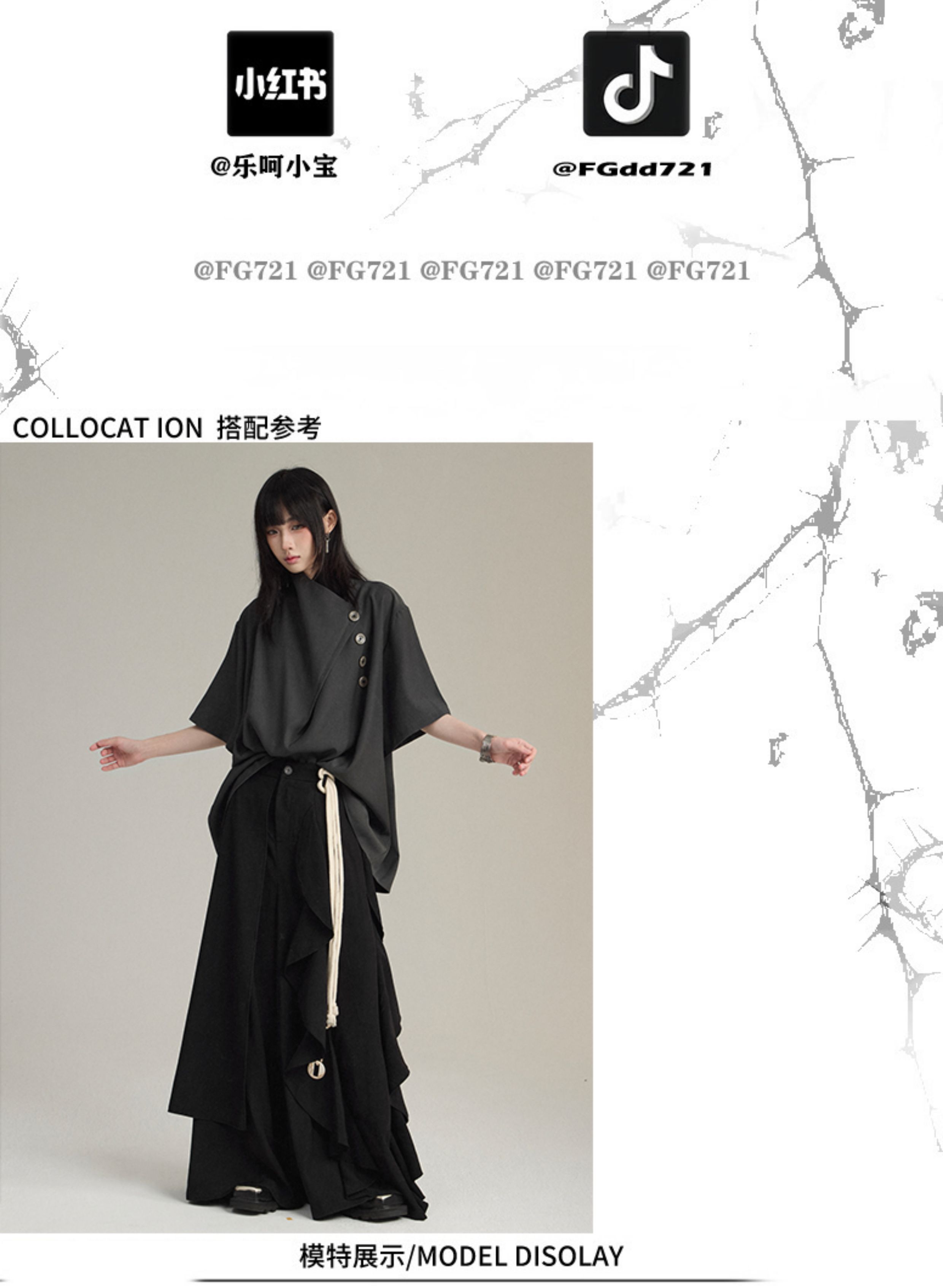 Fg721 Yohji Yamamoto Style Suit, Gender-Neutral Design, Niche Short-Sleeve Shirt, High-End Pantskirt