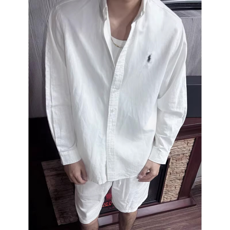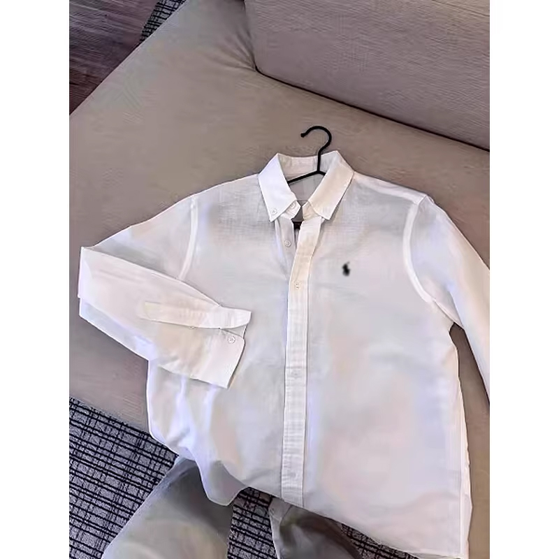 White Pony Embroidery Cotton-Linen Shirt for Men, Summer Old Money Style Sun Protection Shirt, Relaxed and Laid-Back Jacket