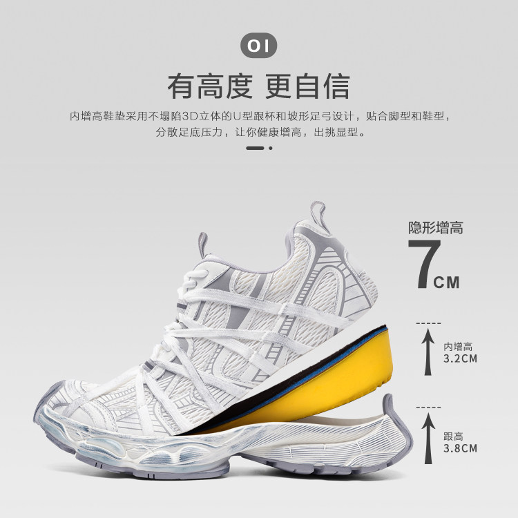 Xjxy7Cm Height-Increasing Shoes Men's Casual Shoes Sneakers Dad Shoes Autumn and Winter Shoes Men's Shoes 2025 New Trendy Style