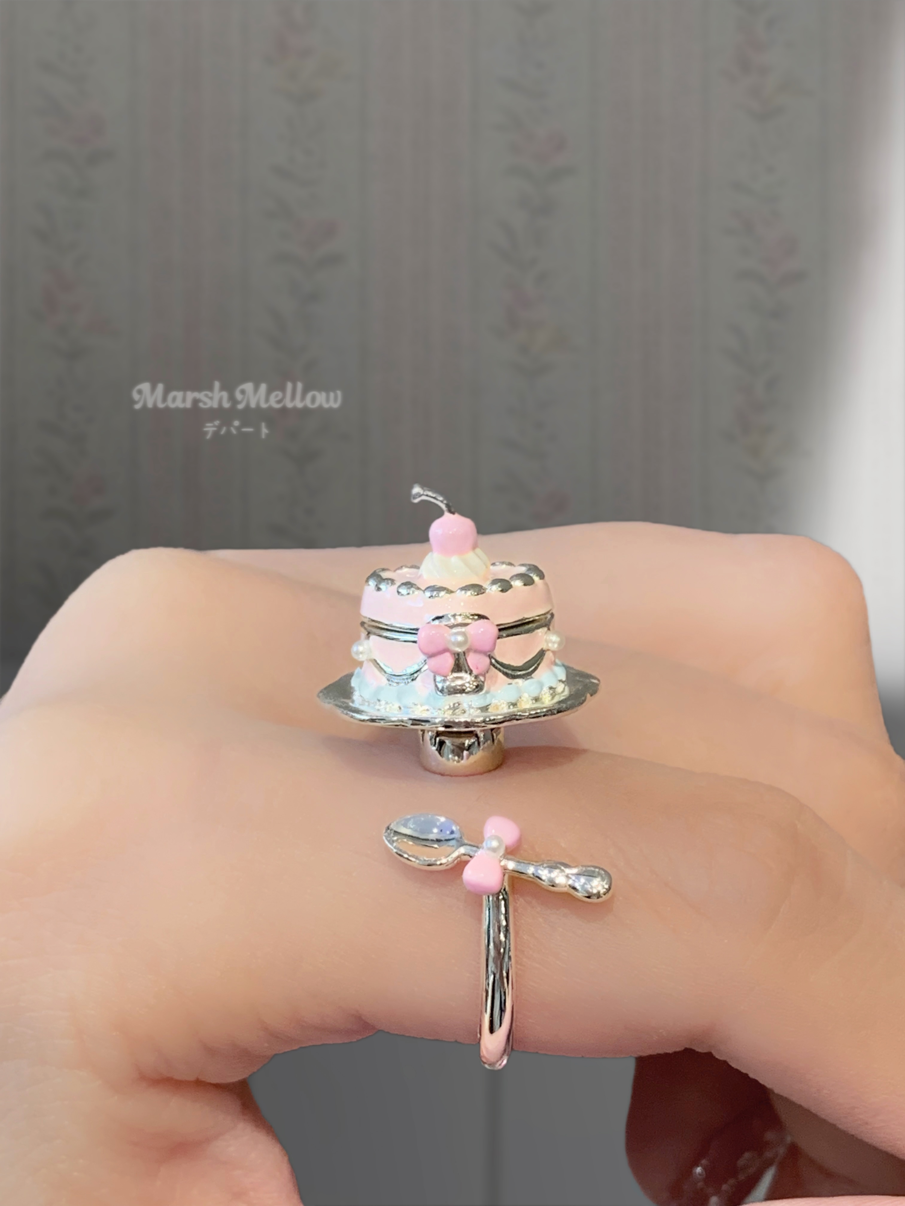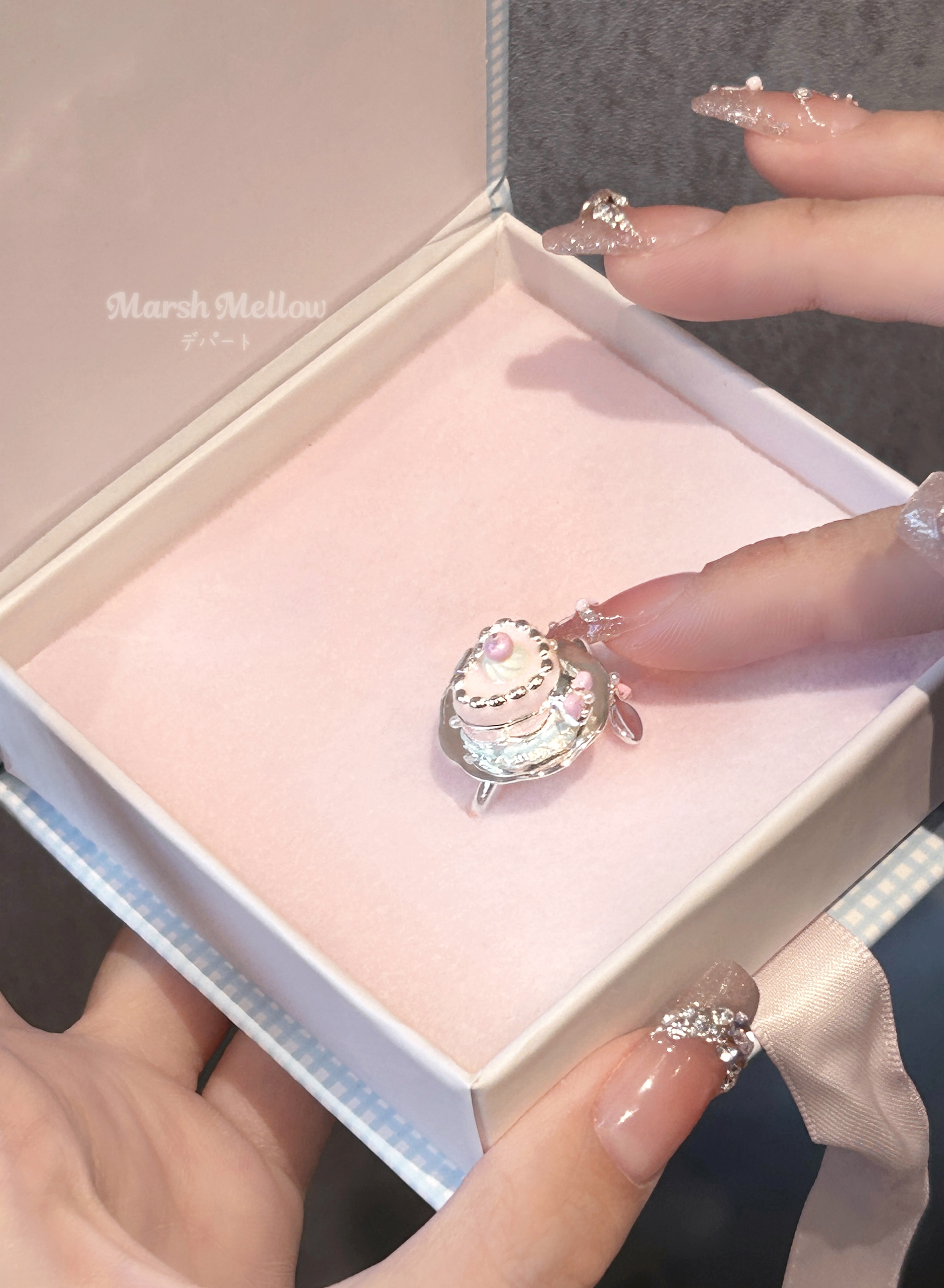 New Product! Cream Cake 925 Silver-Plated Ring, Girly Style, Niche Design, Light Luxury, High-End Feel, Original Jewelry