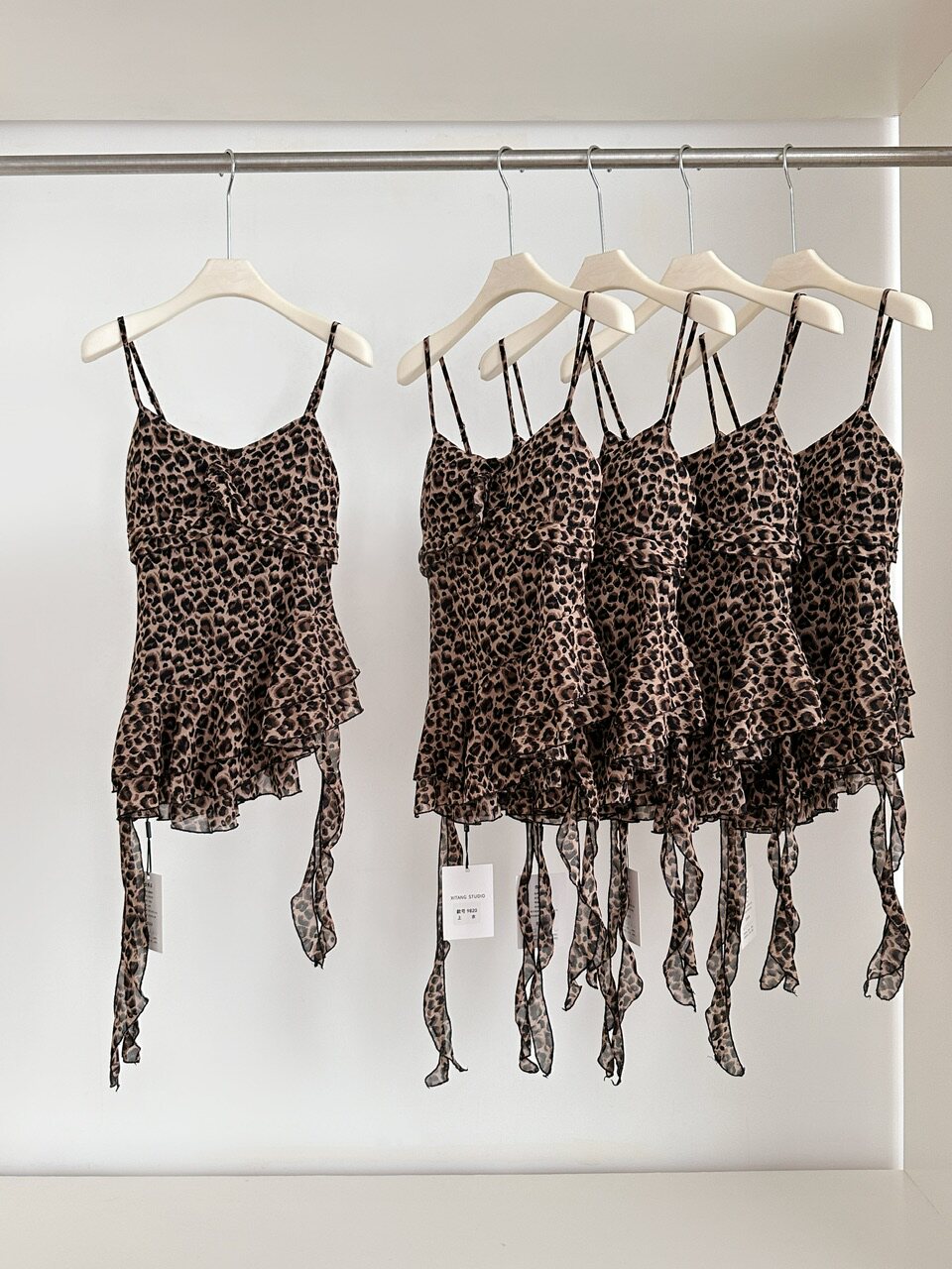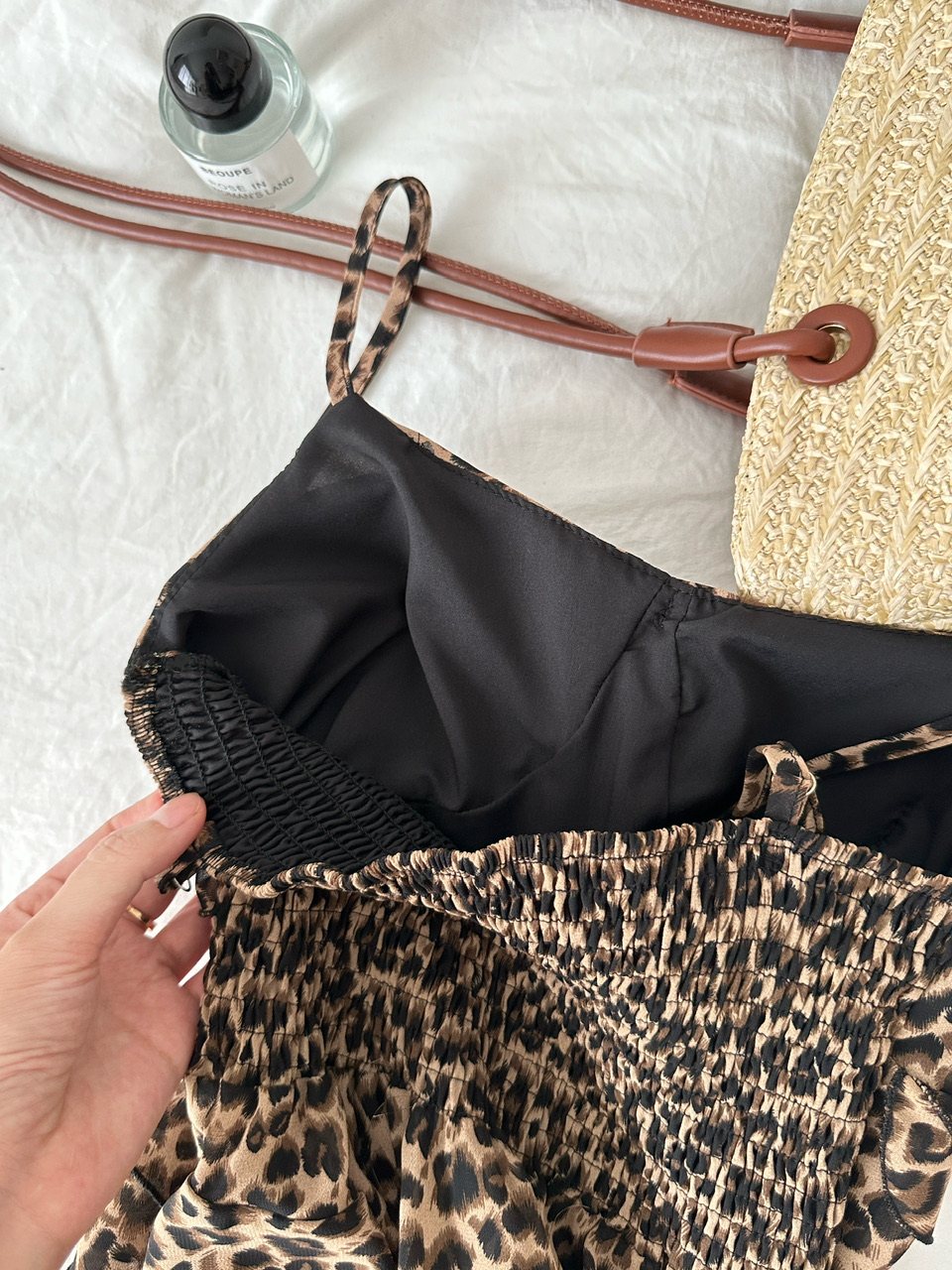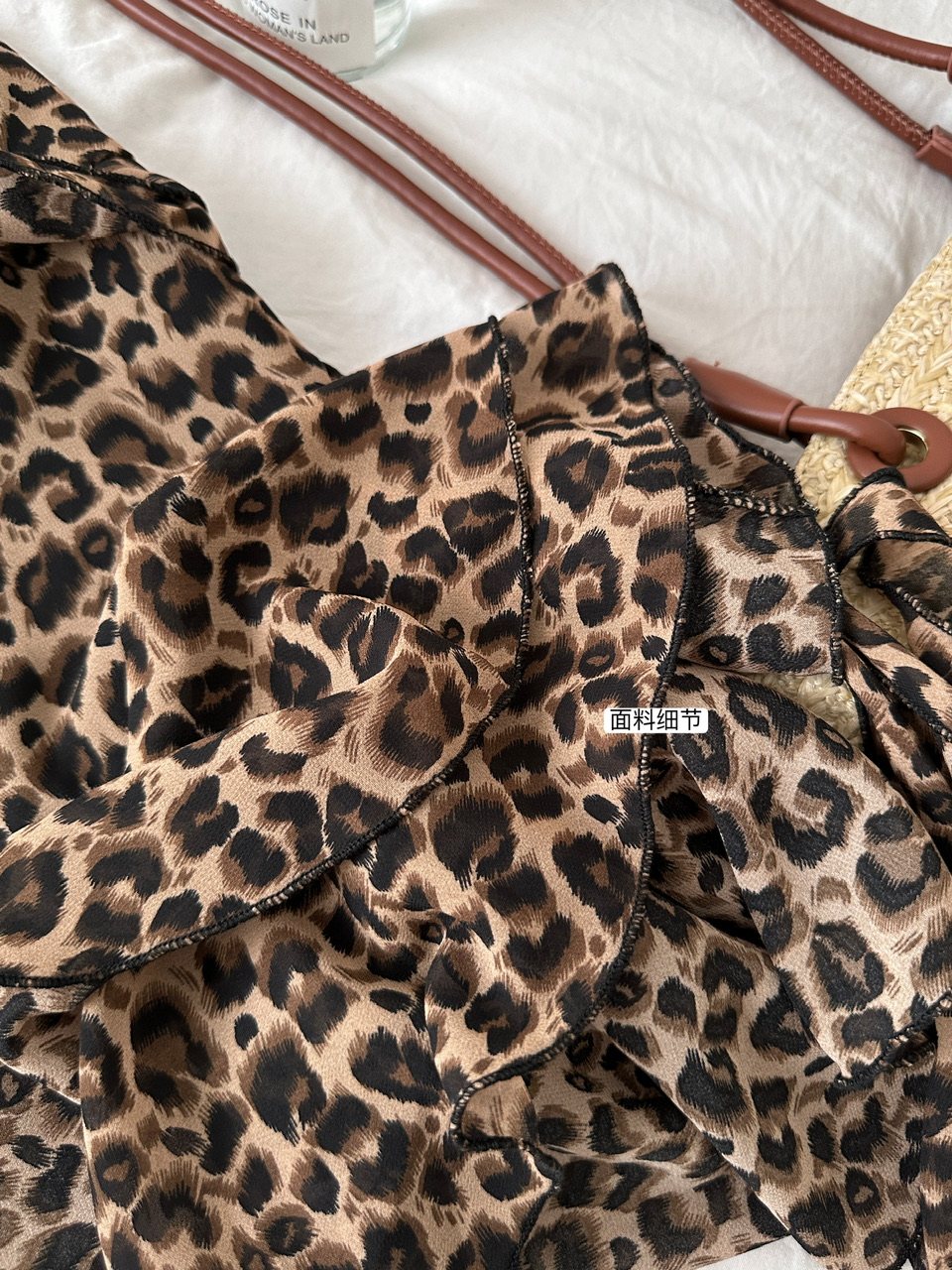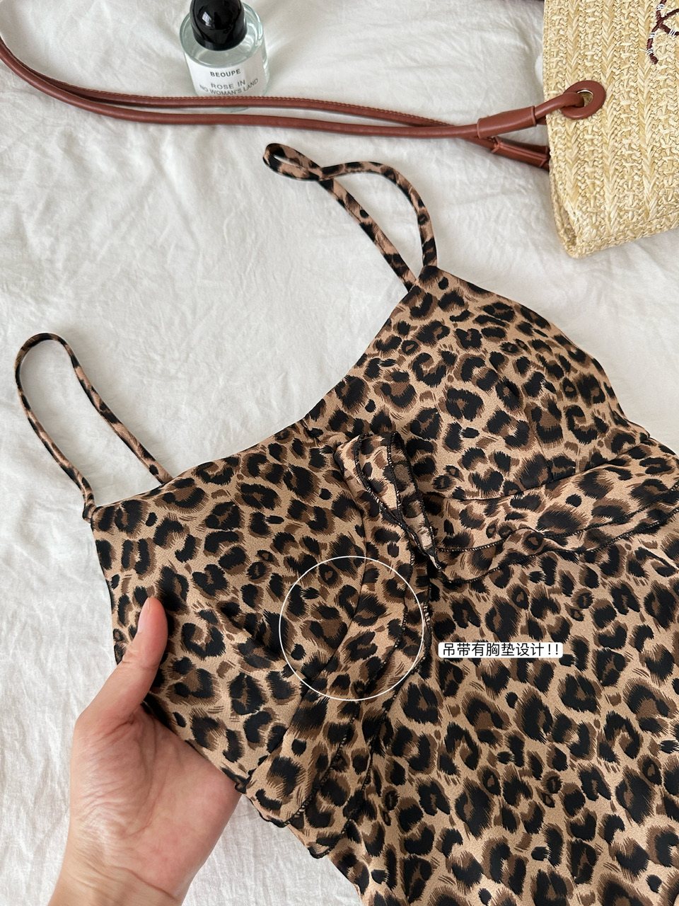 New for Summer! Leopard Print Irregular Chiffon American Retro Sexy Slim-Fit Camisole Top for Outerwear
