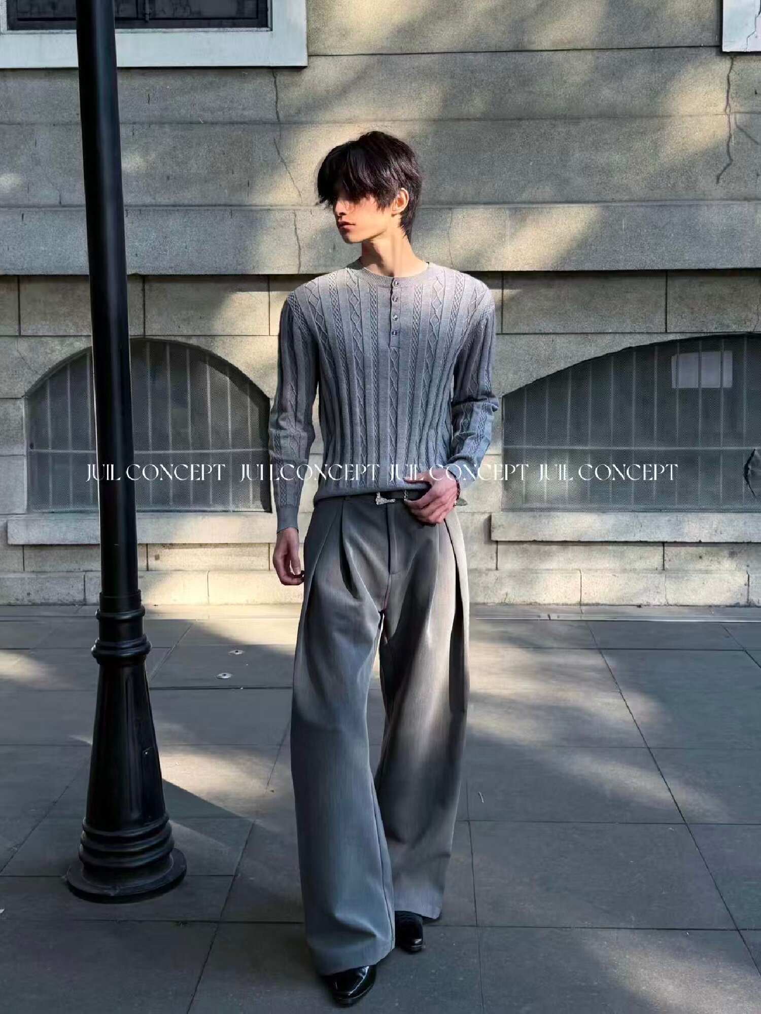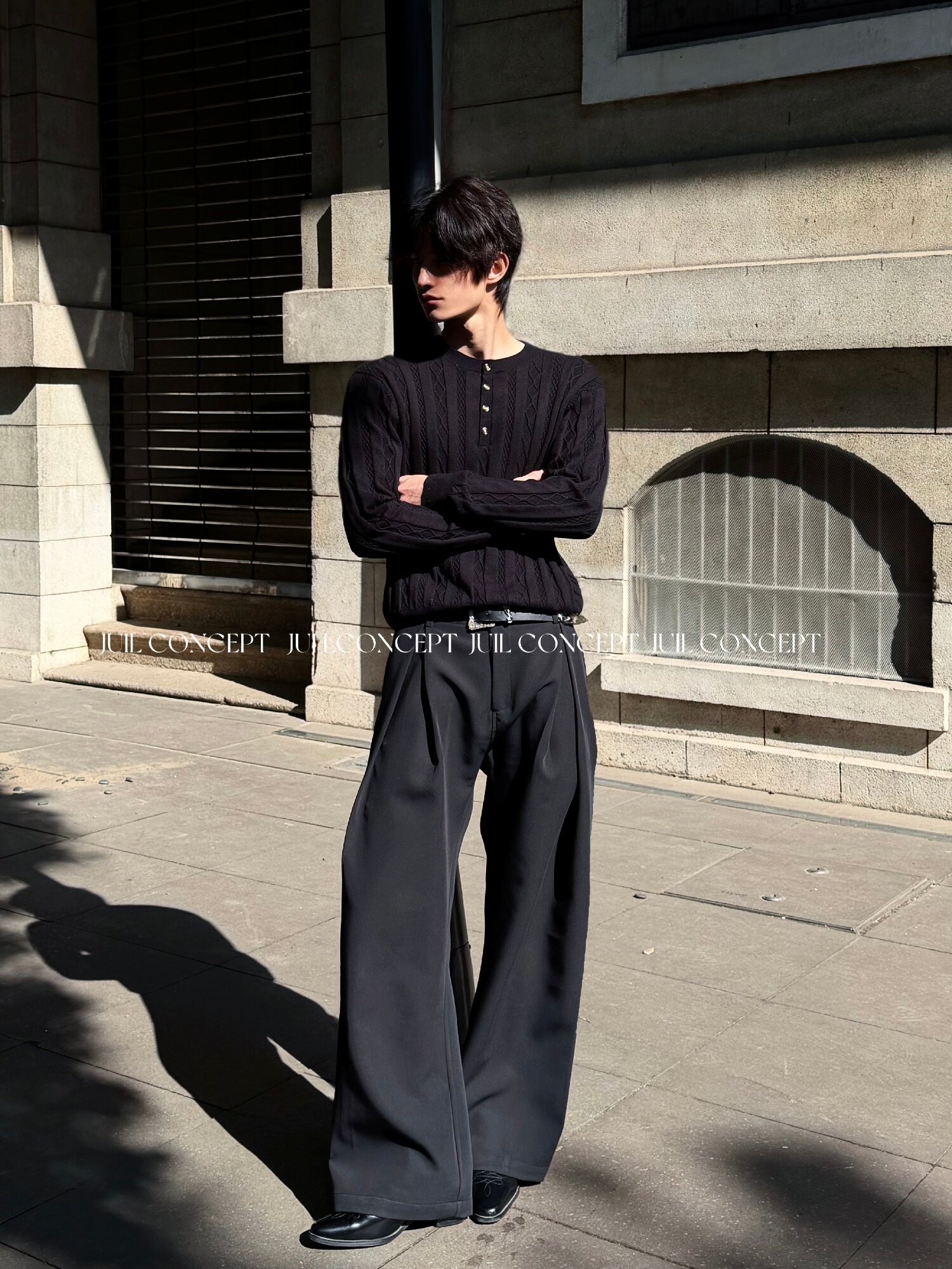 Jiul 【High-End Version】 Three-Dimensional A-Line Silhouette Double-Layer Pleated Knife-Cut Trousers, Loose Cleanfit Long Pants