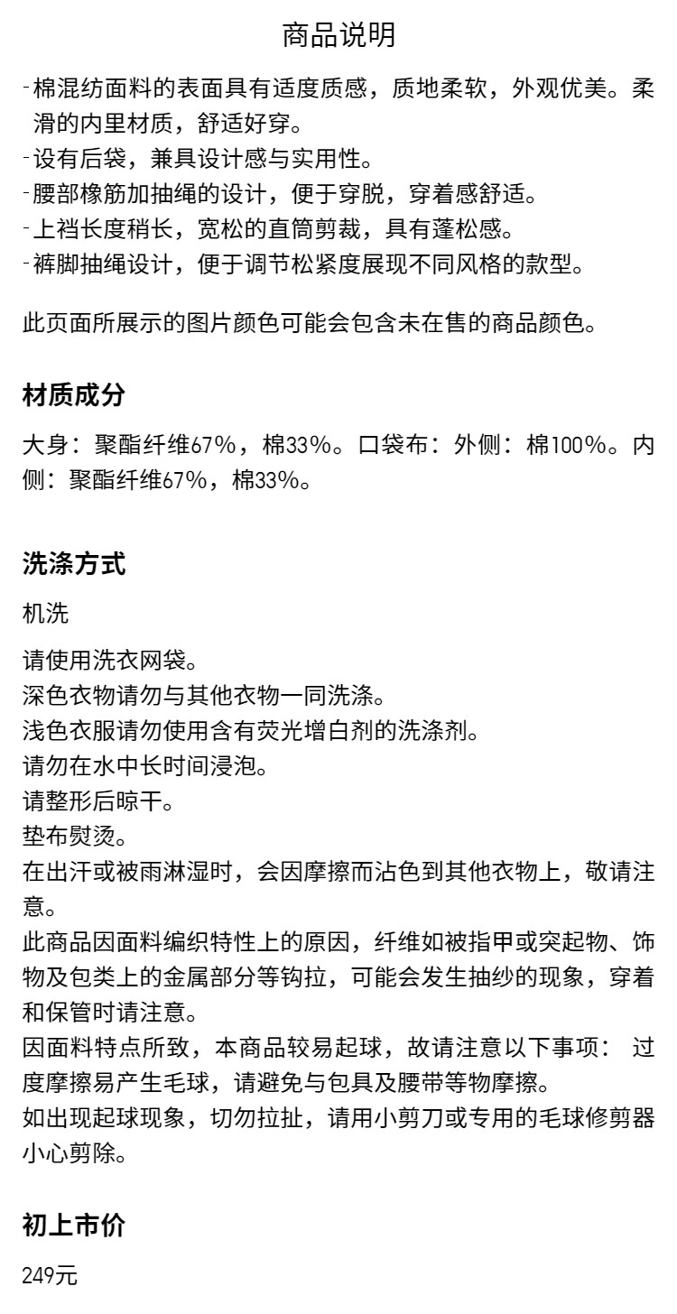Uniqlo Collaboration Men's and Women's Loose-Fitting Sports Pants Casual Pants Regular Style 479854
