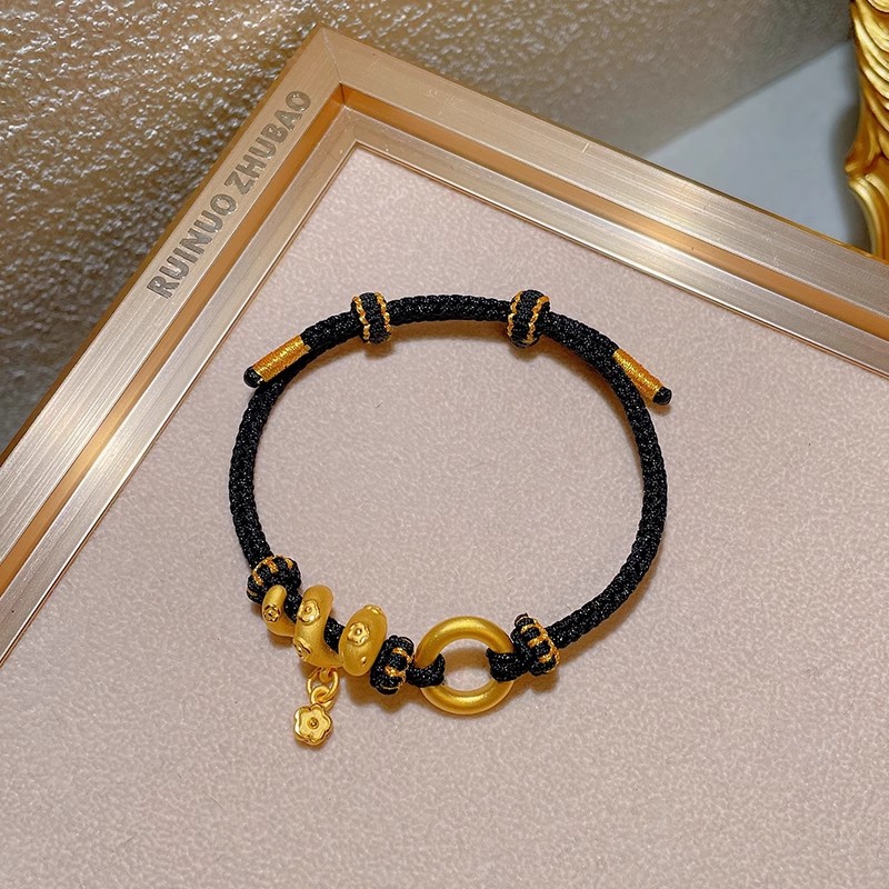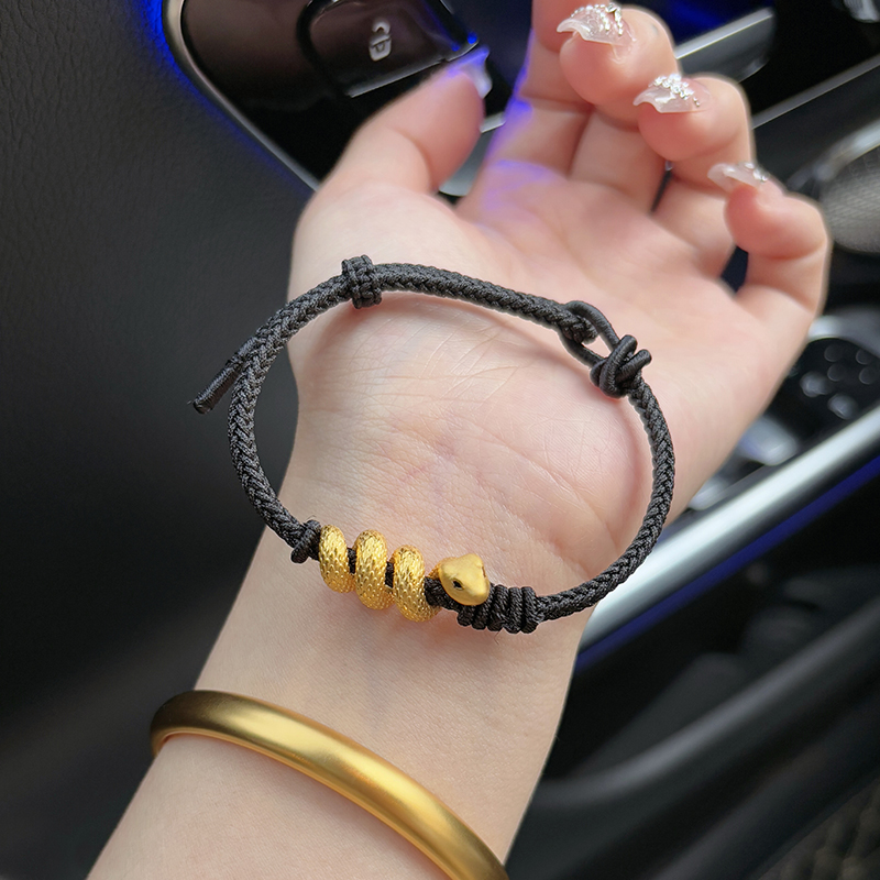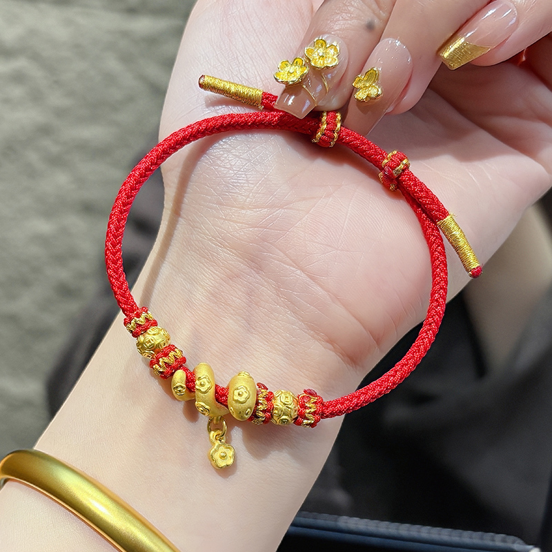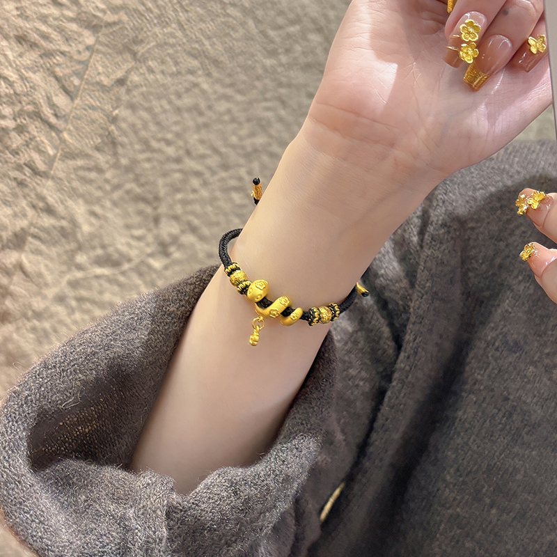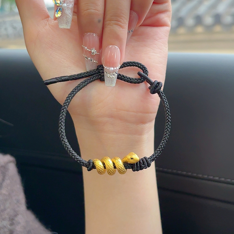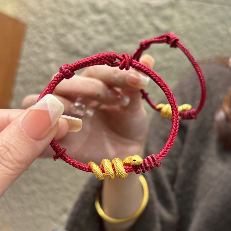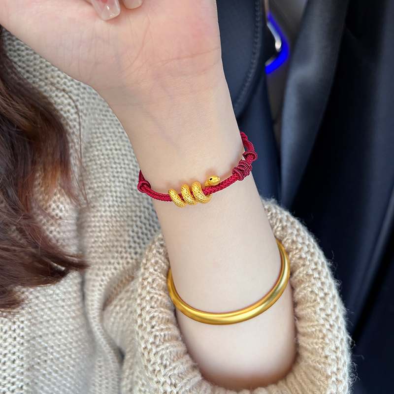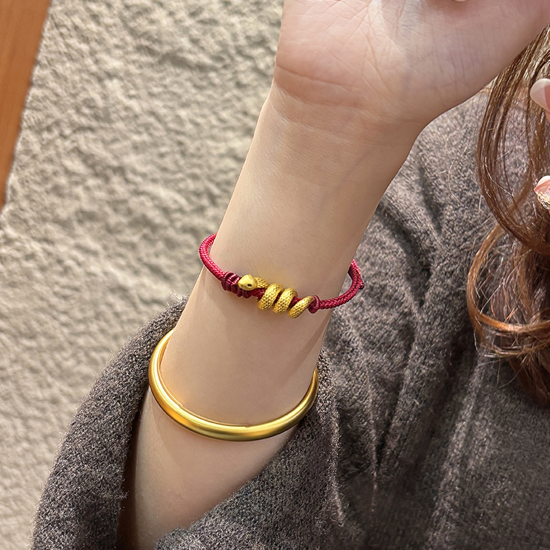 European Gold Curly Snake Bracelet for Women Pure Gold 999 Birth Year Safety Buckle Disc Snake-Shaped Braided Red Rope Gift Girlfriend