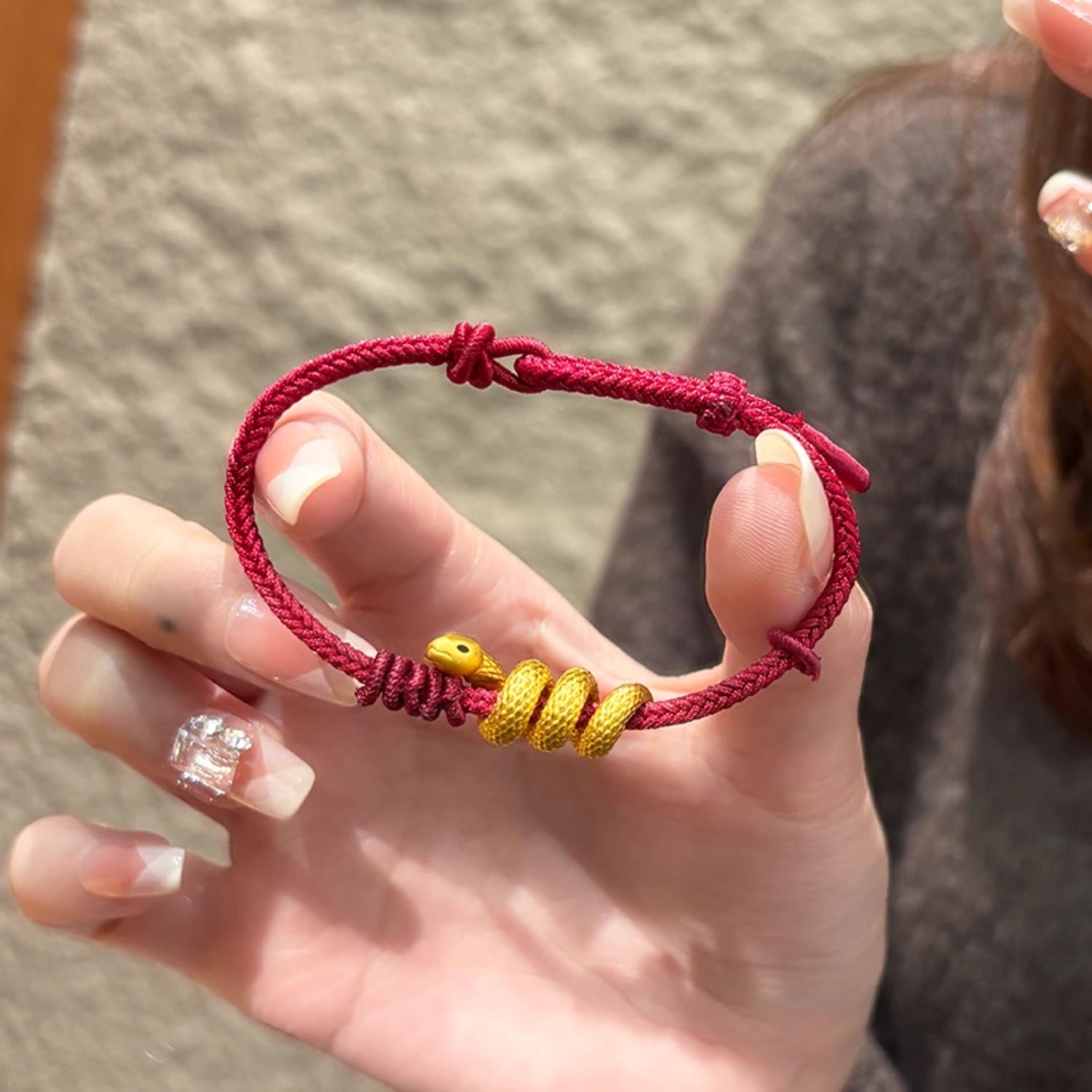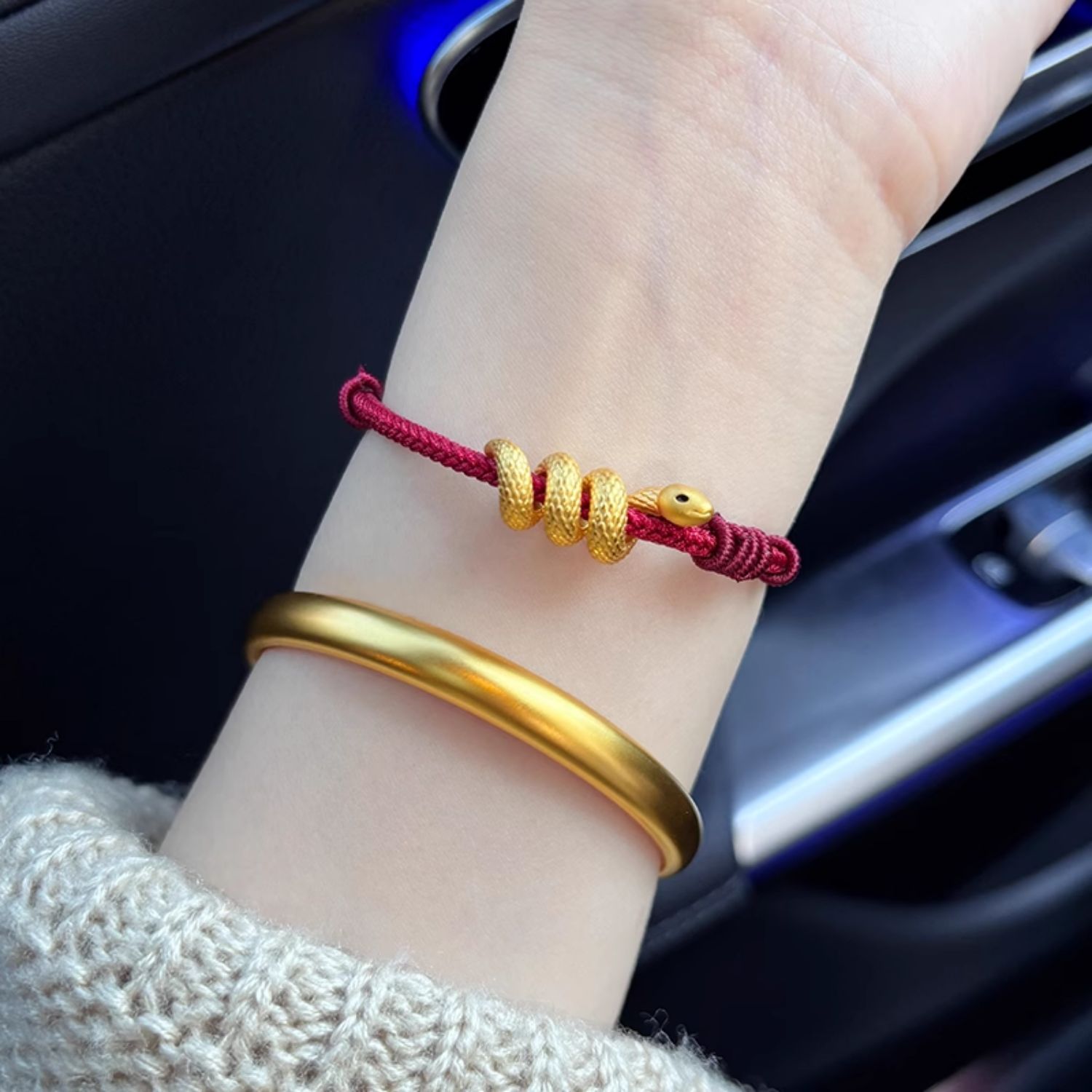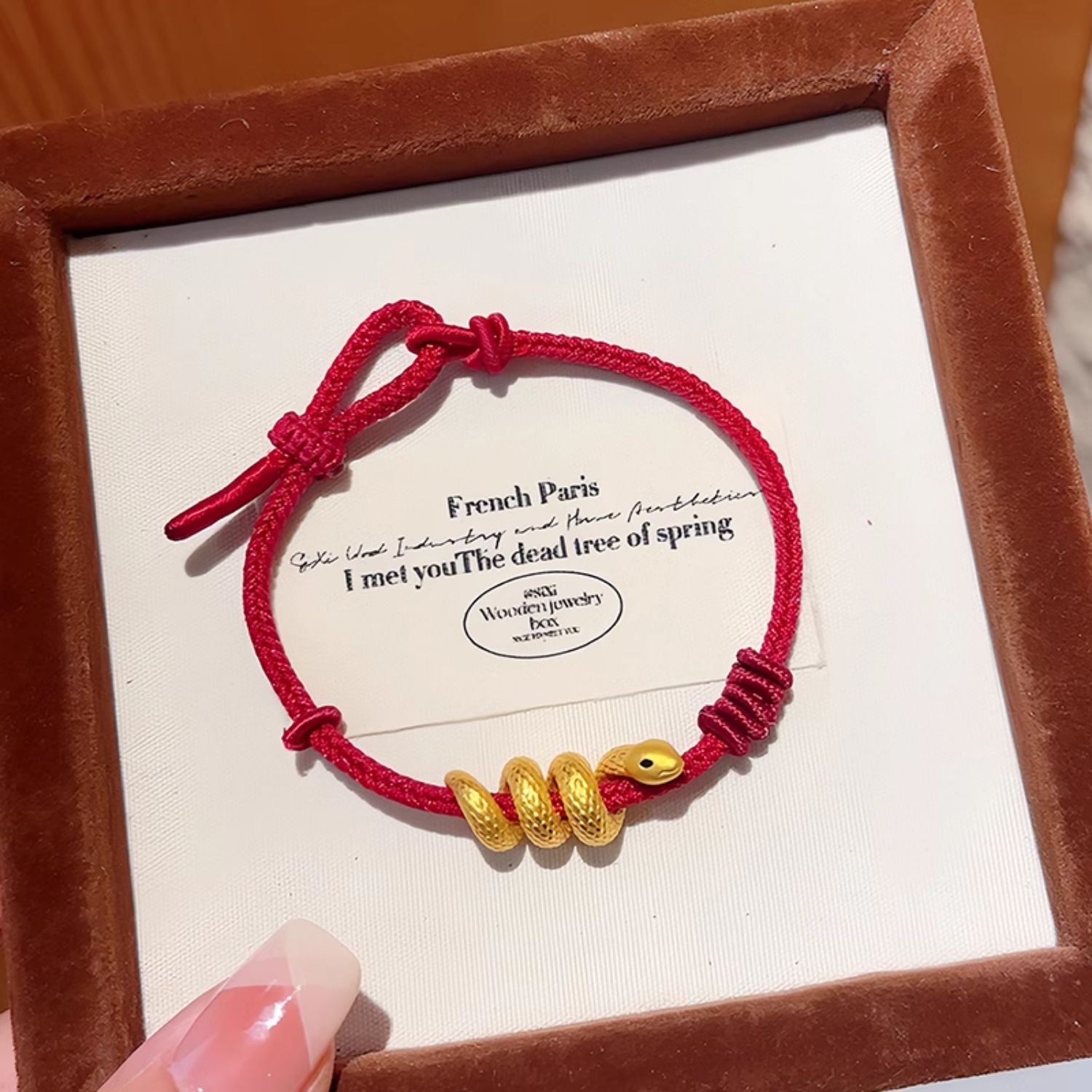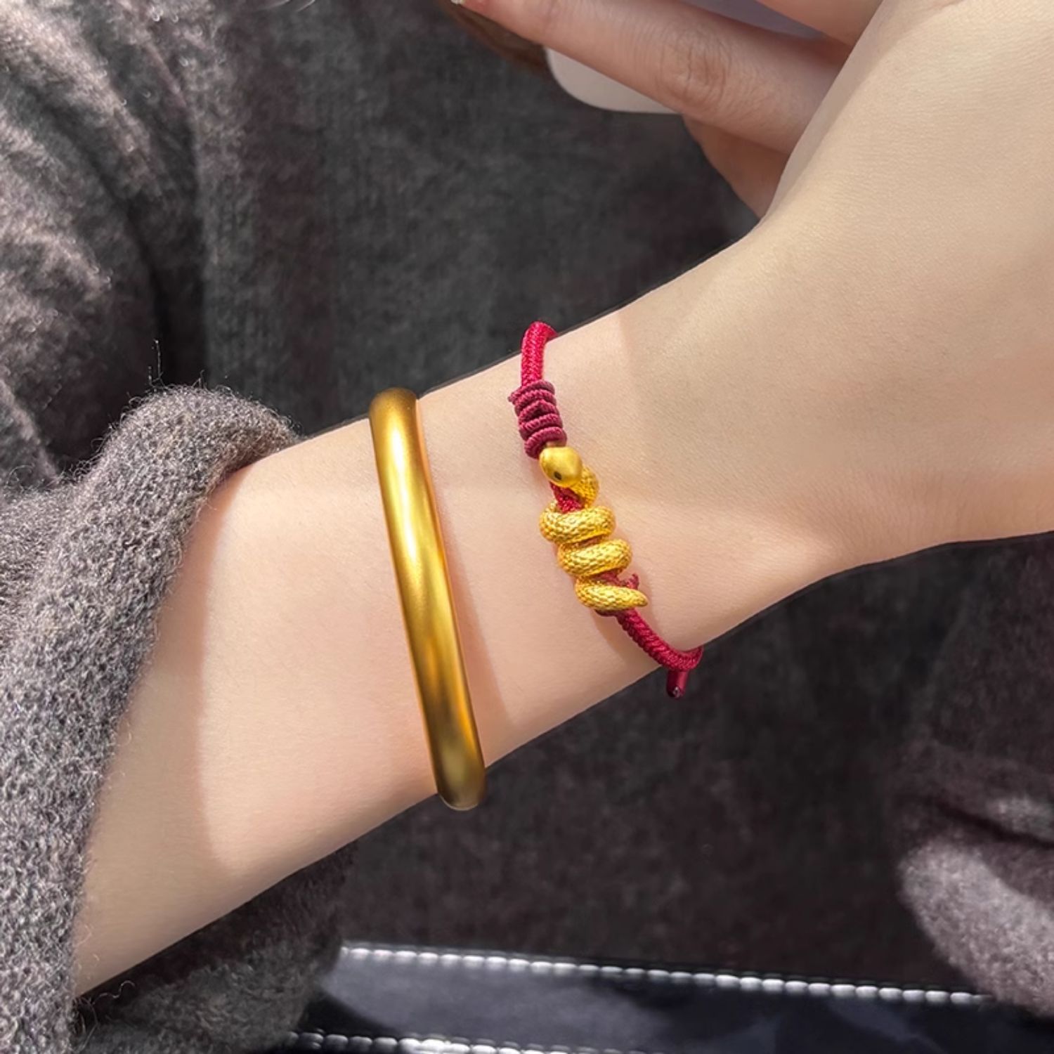 European Gold Curly Snake Bracelet for Women Pure Gold 999 Birth Year Safety Buckle Disc Snake-Shaped Braided Red Rope Gift Girlfriend