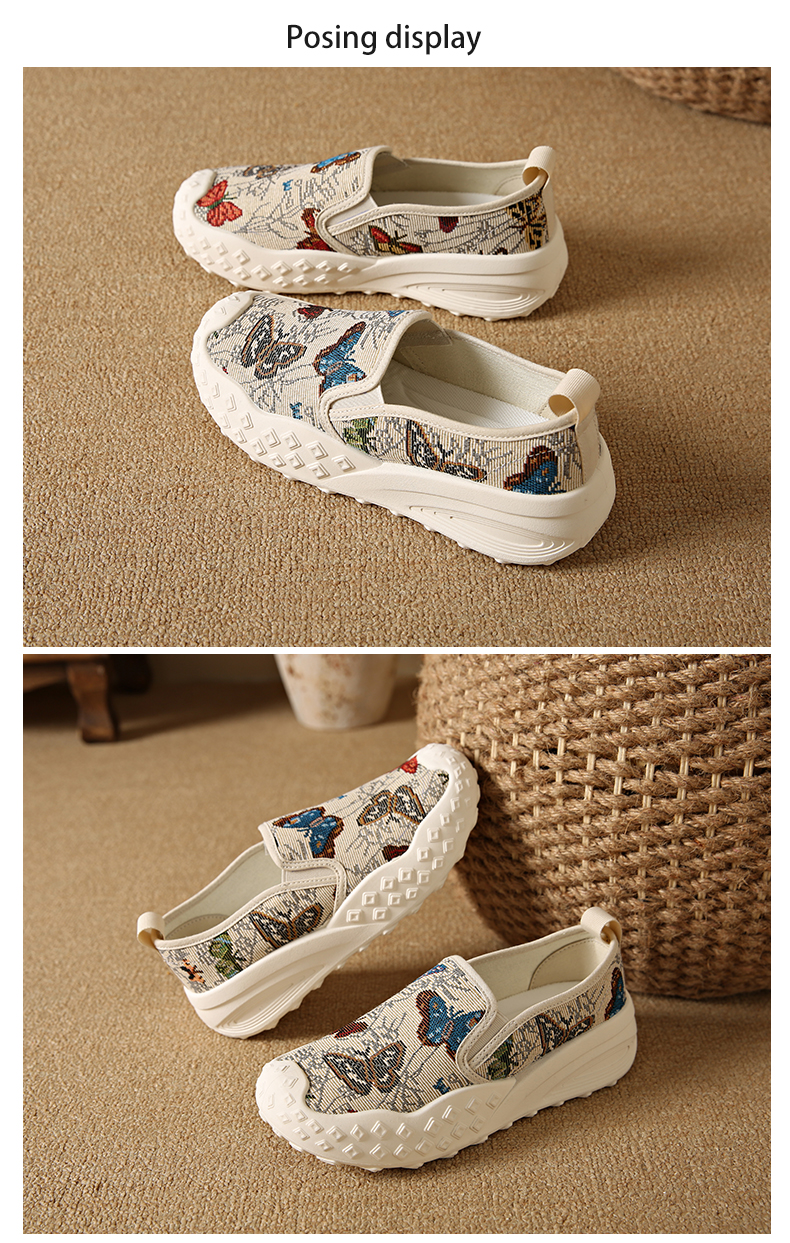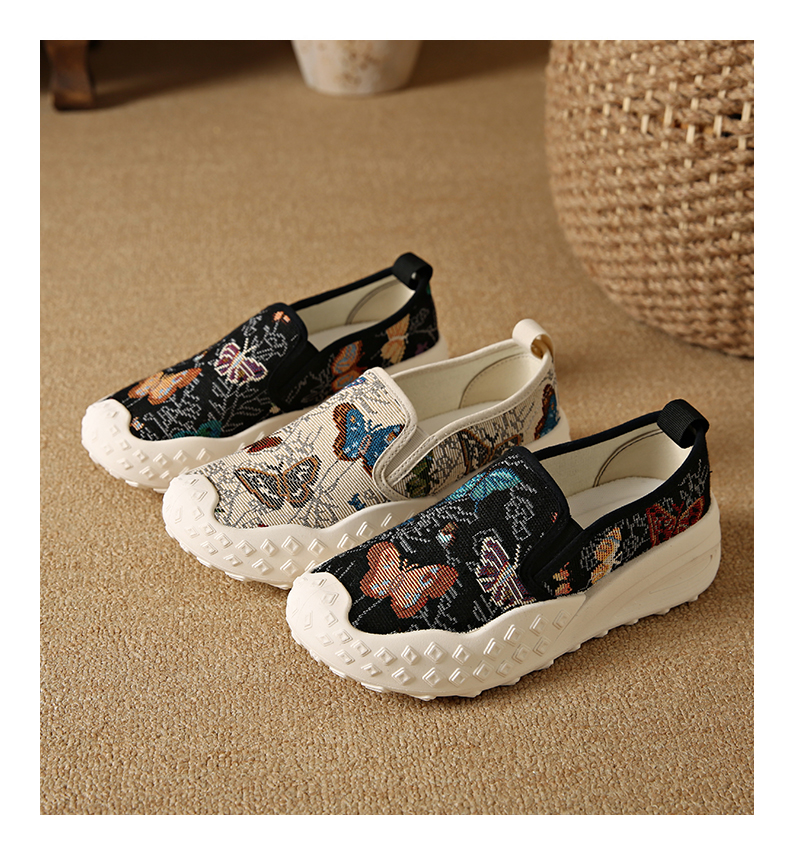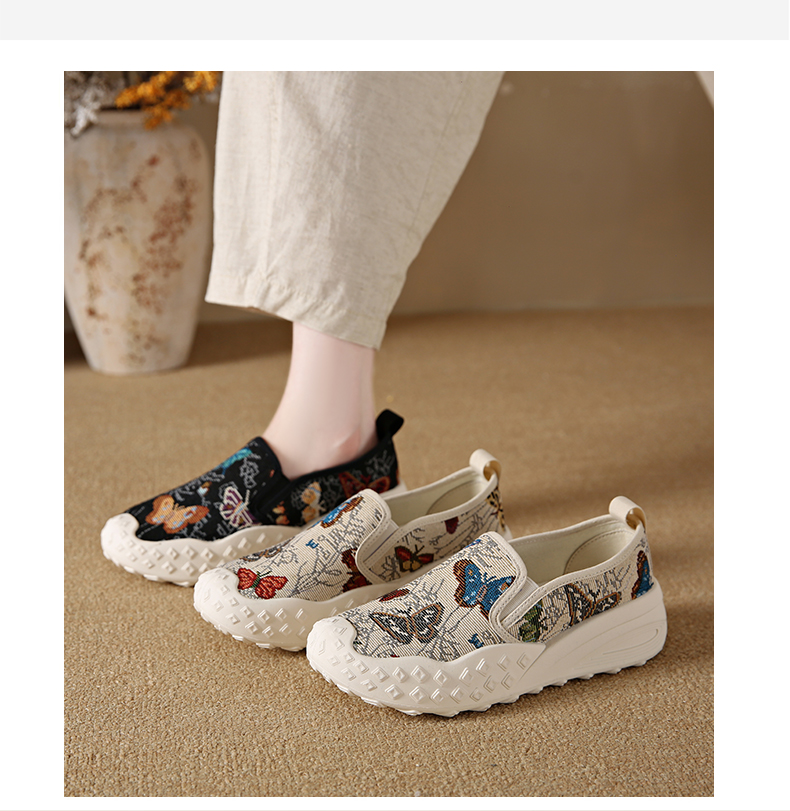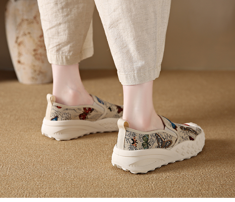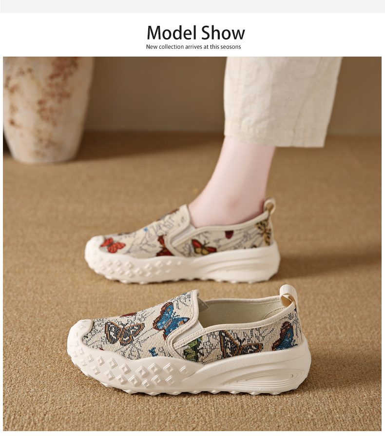 Women's Canvas Shoes 2025 New Thick-Soled Breathable Slip-On Old Beijing Cloth Shoes Comfortable Fisherman Shoes Size 34 Autumn