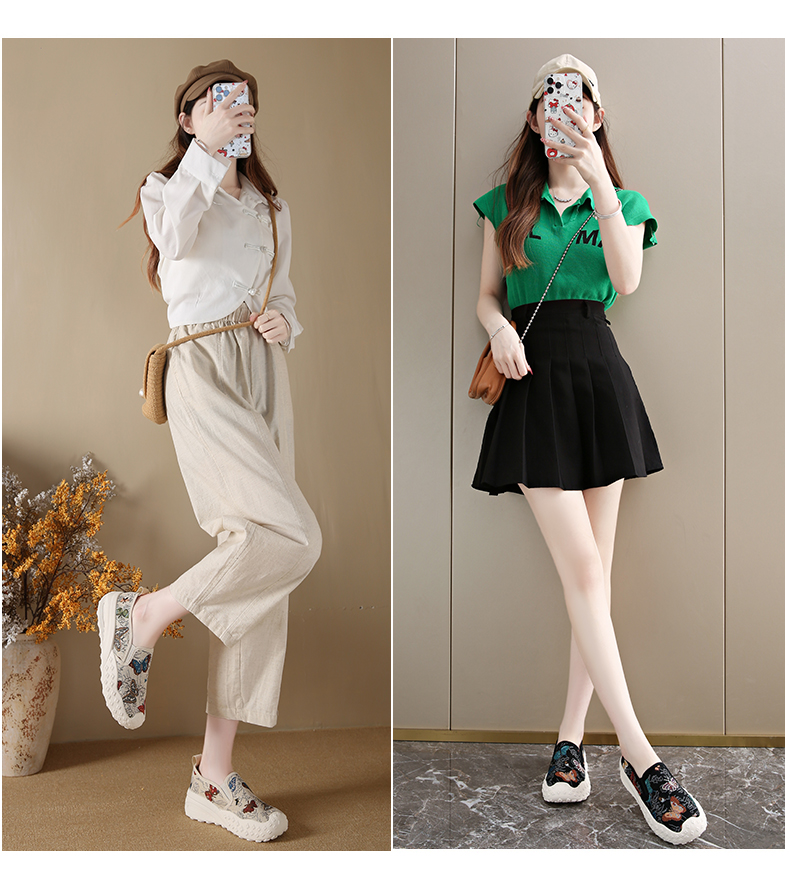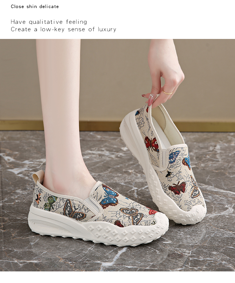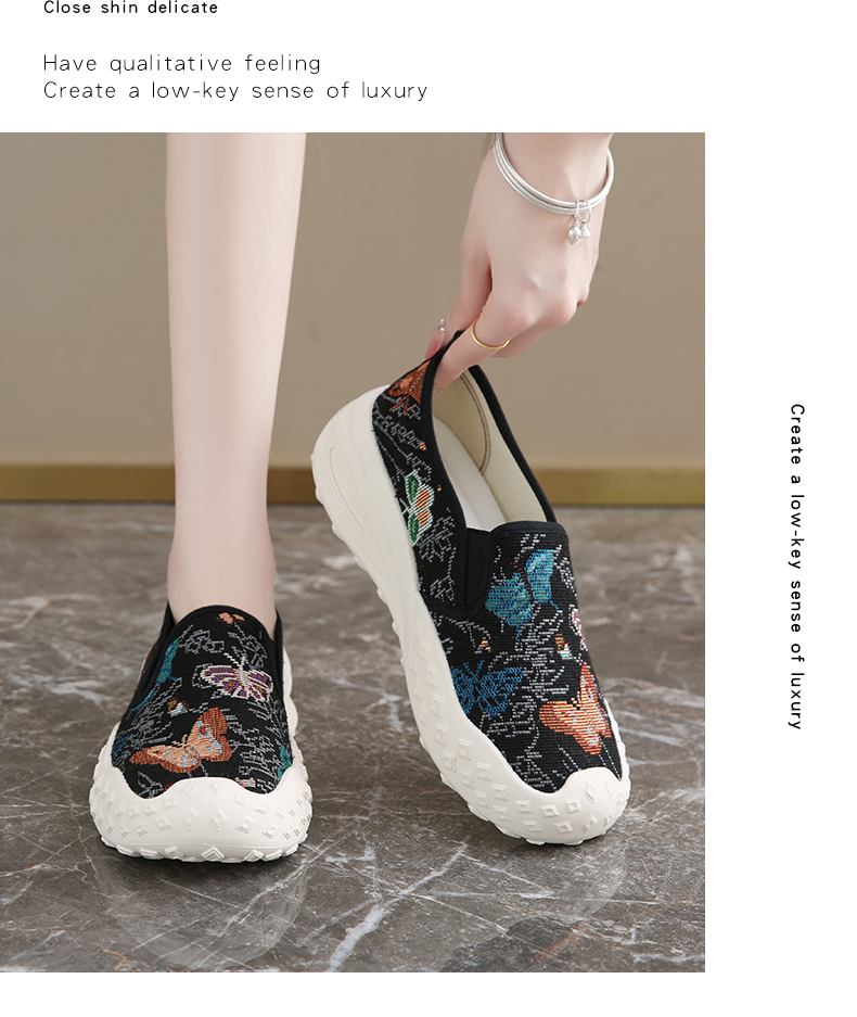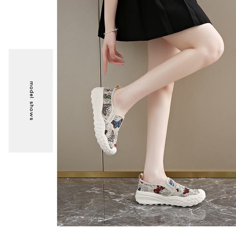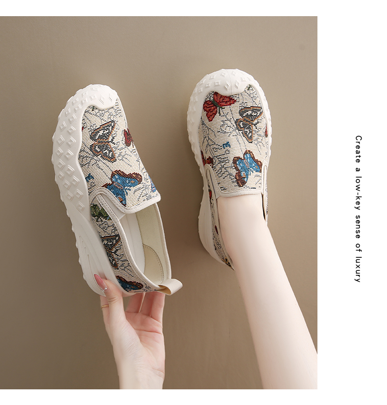 Women's Canvas Shoes 2025 New Thick-Soled Breathable Slip-On Old Beijing Cloth Shoes Comfortable Fisherman Shoes Size 34 Autumn