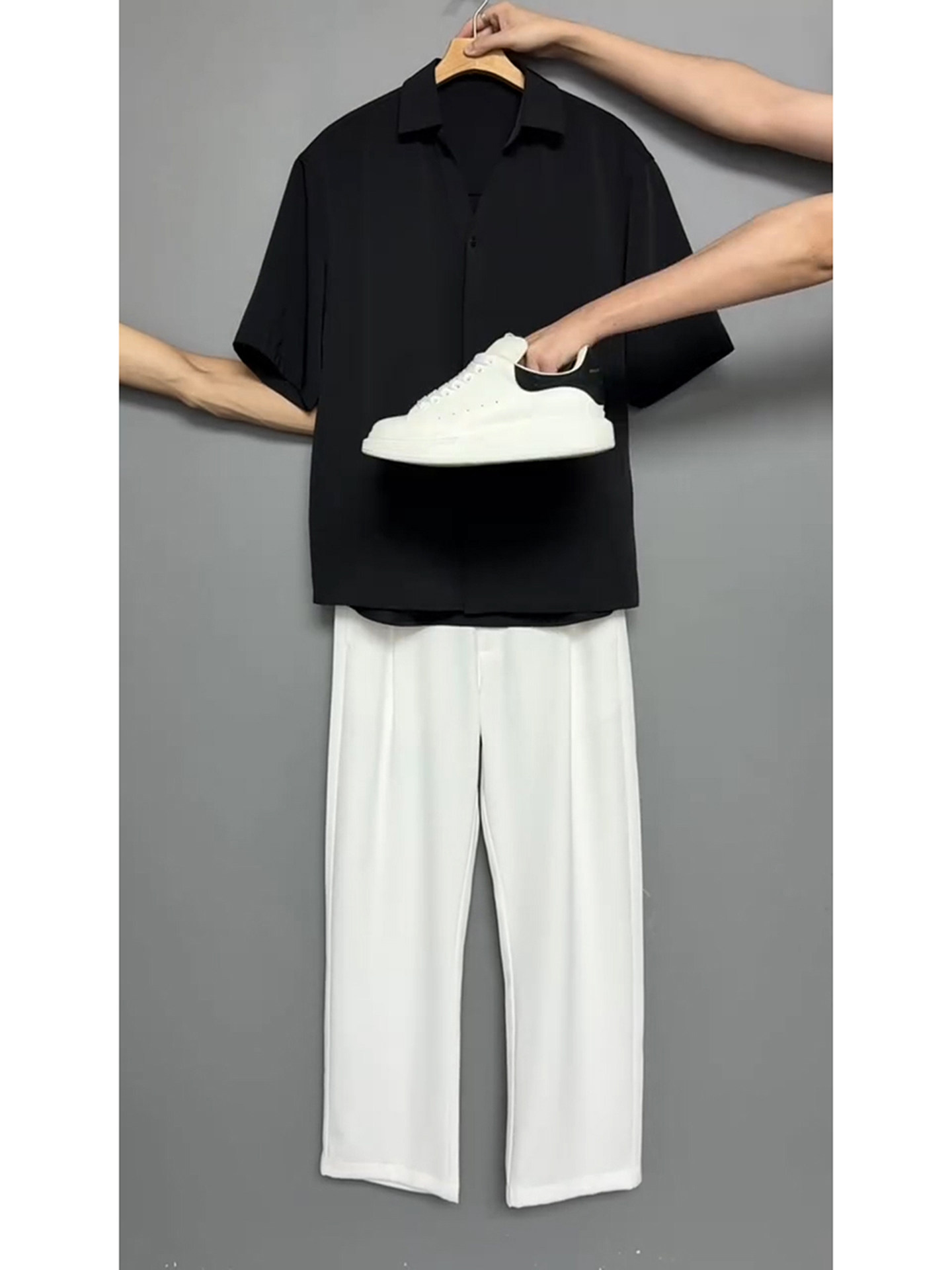 Korean Style Cool V-Neck Short-Sleeve Shirt with Drapey Suit Pants, Acetate Ice Silk Suit for Men, Summer, Old Money High-End Feel