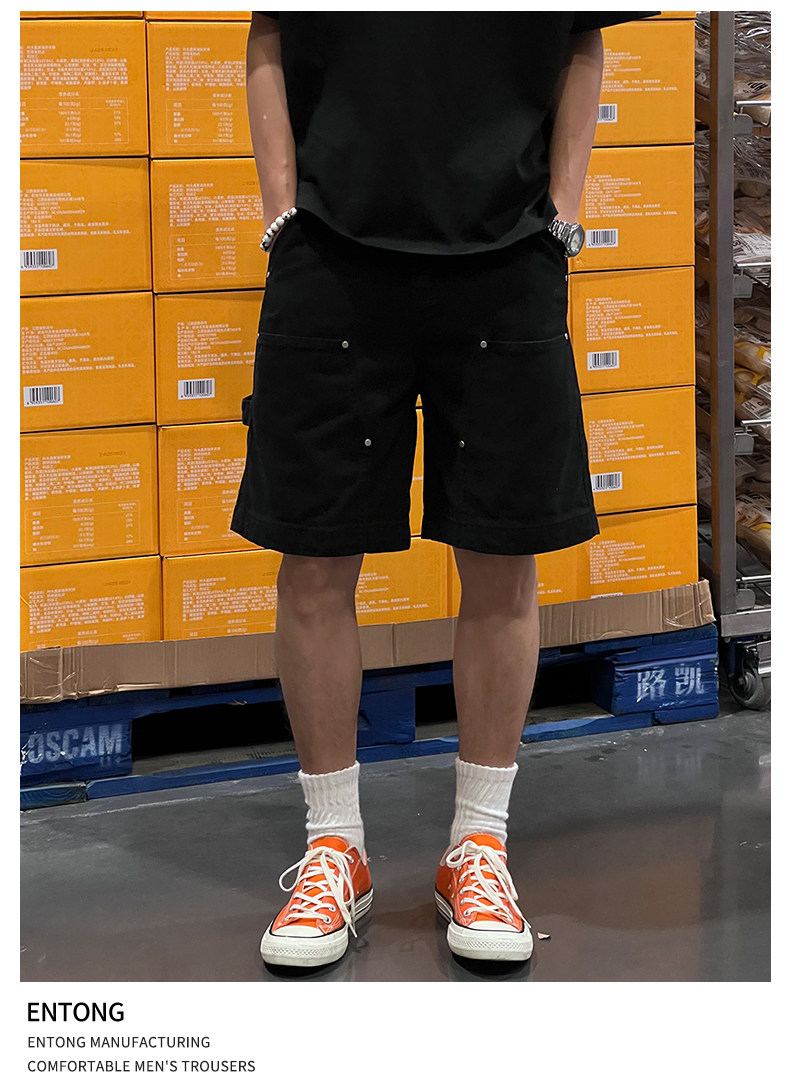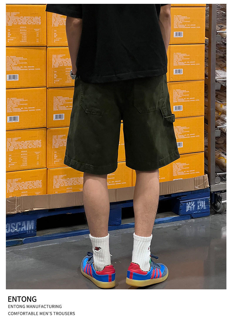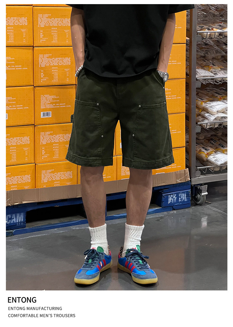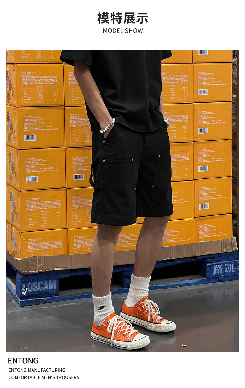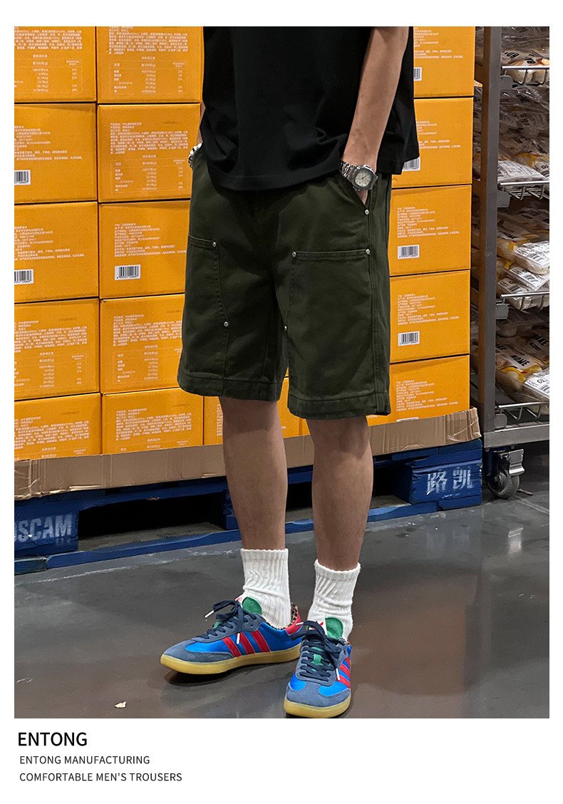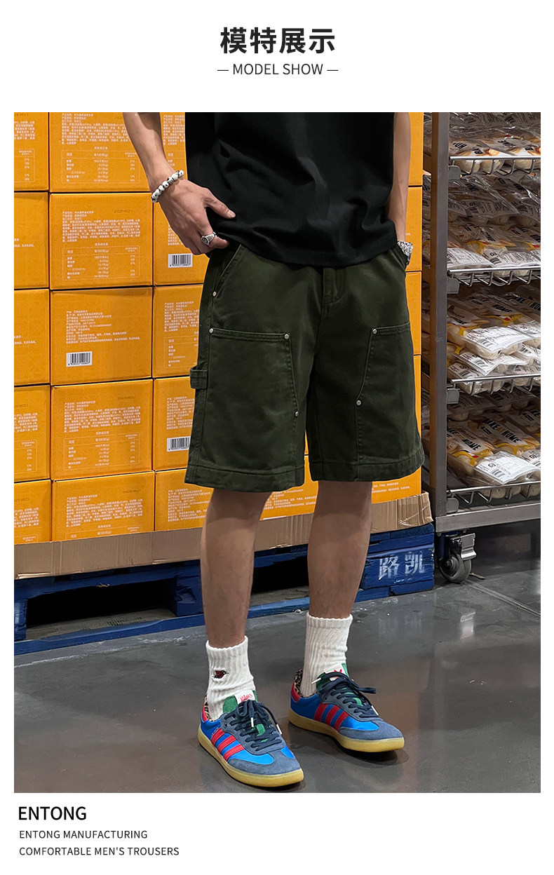 Entong Summer New Lumberjack Cargo Shorts Men's American Street Style Studded Casual Versatile Loose Five-Point Shorts