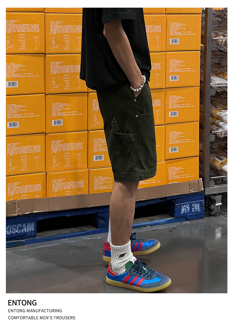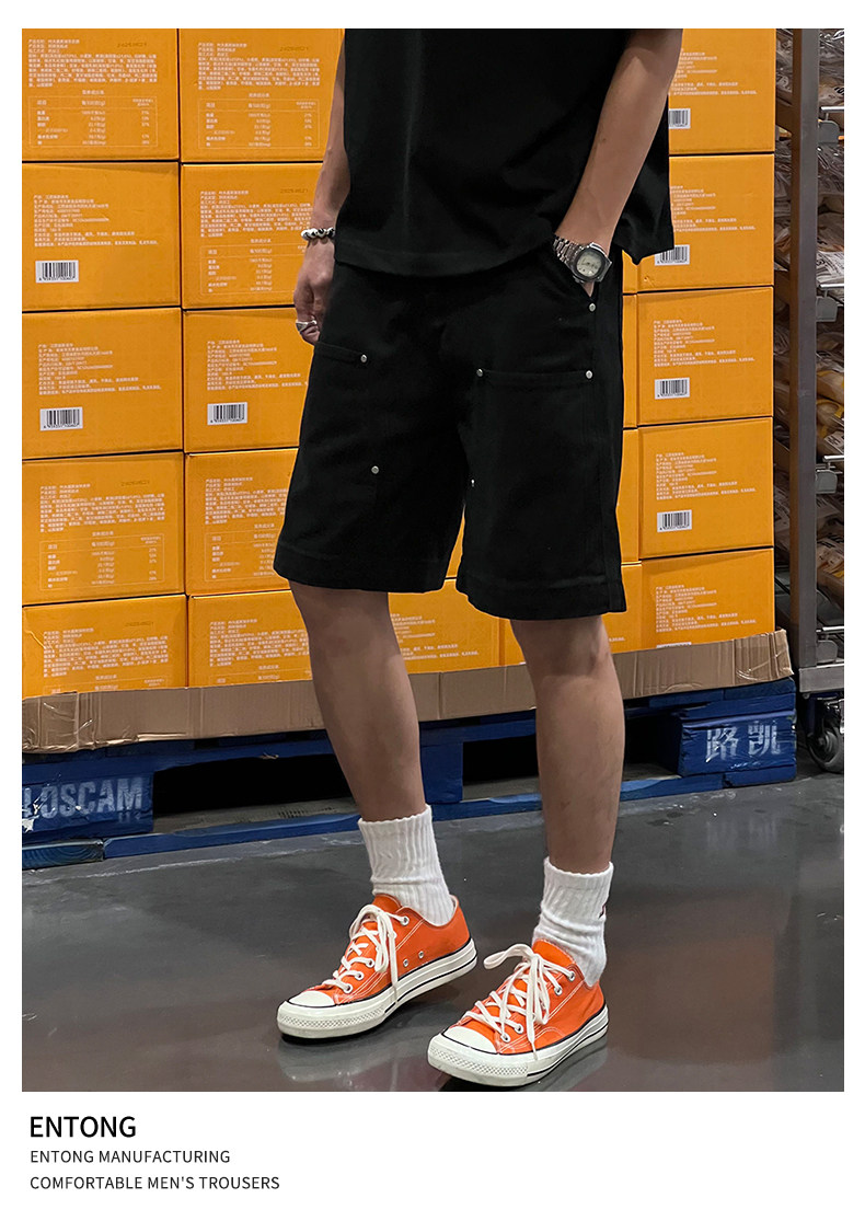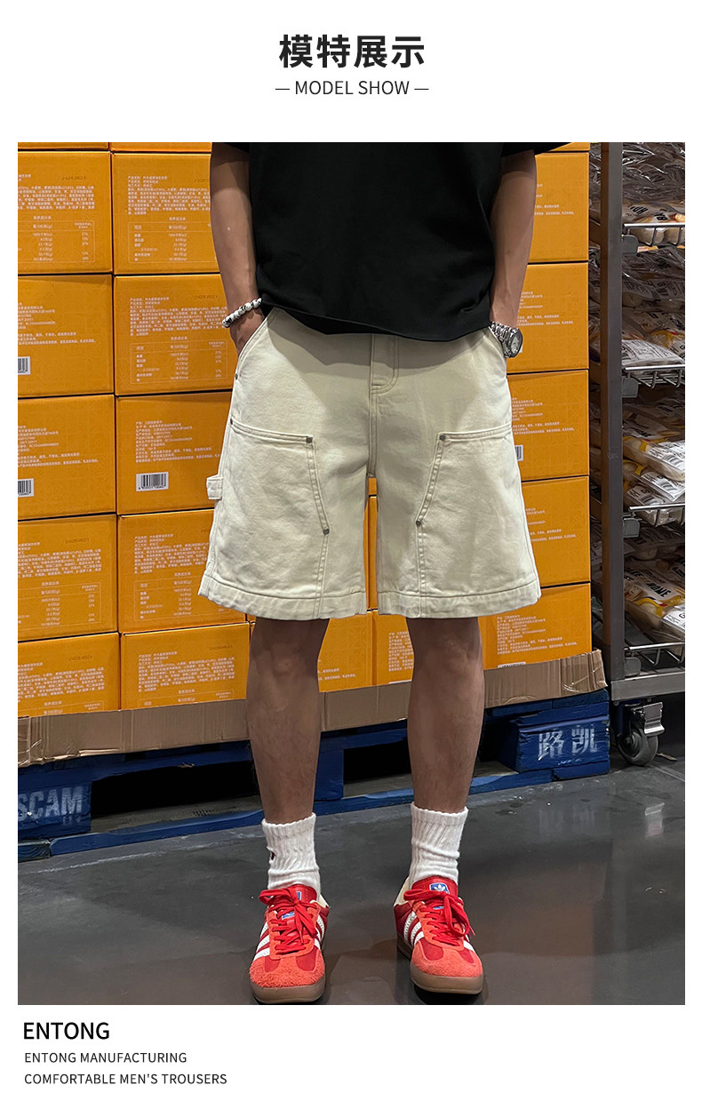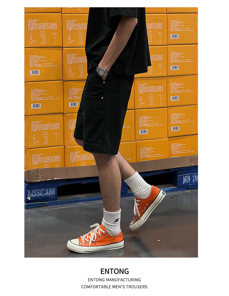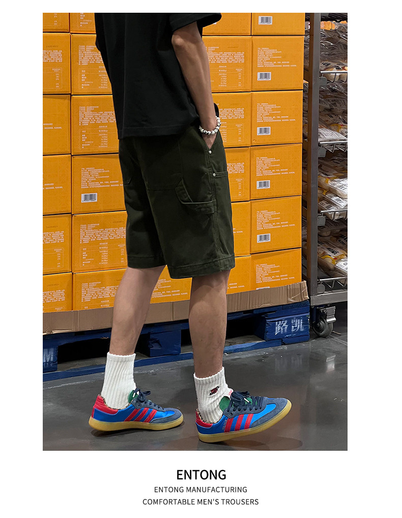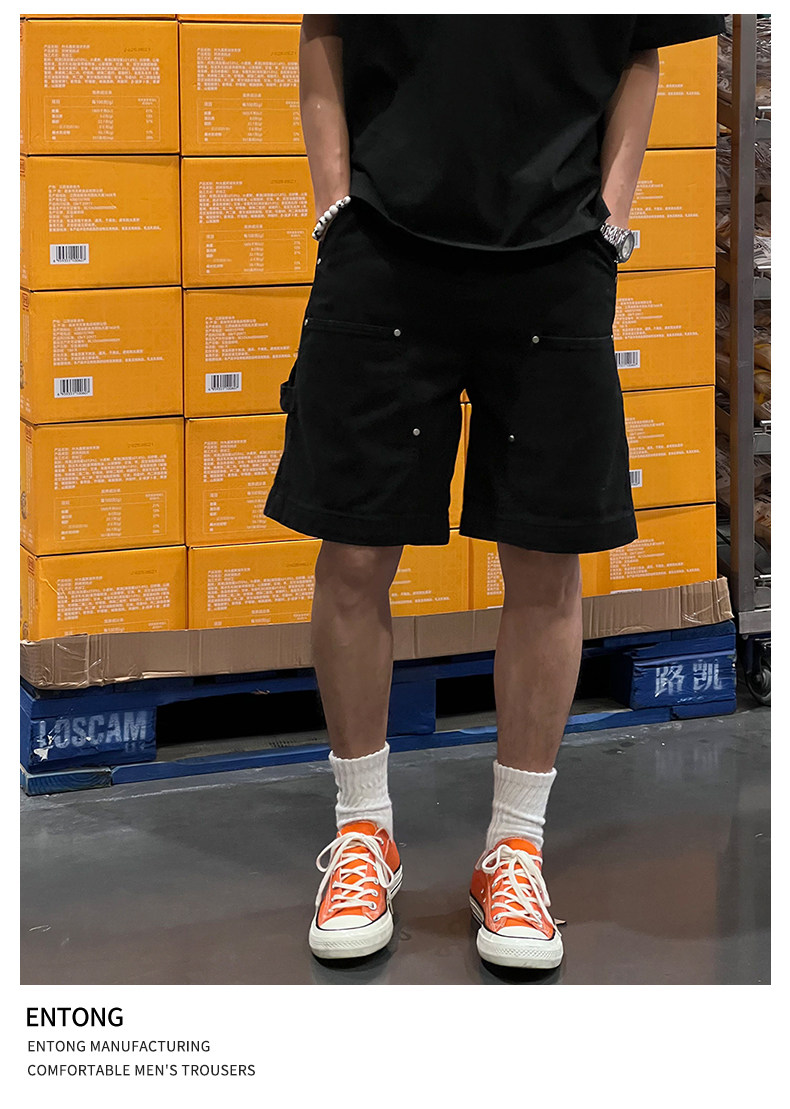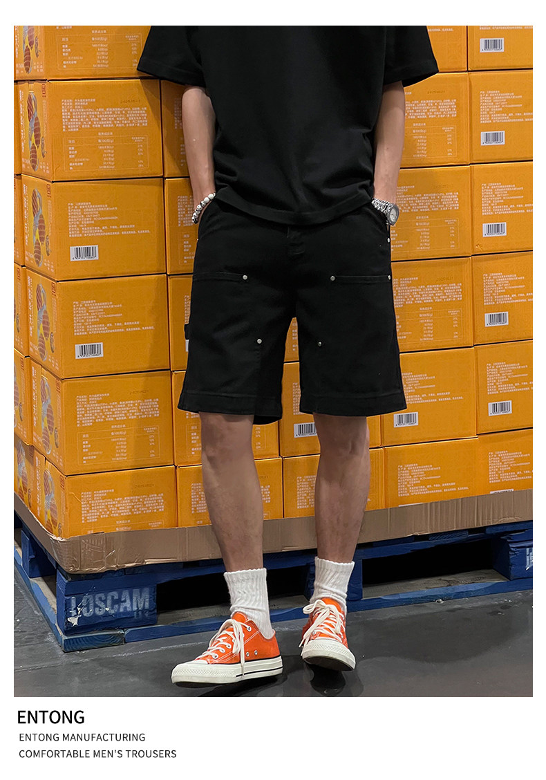 Entong Summer New Lumberjack Cargo Shorts Men's American Street Style Studded Casual Versatile Loose Five-Point Shorts