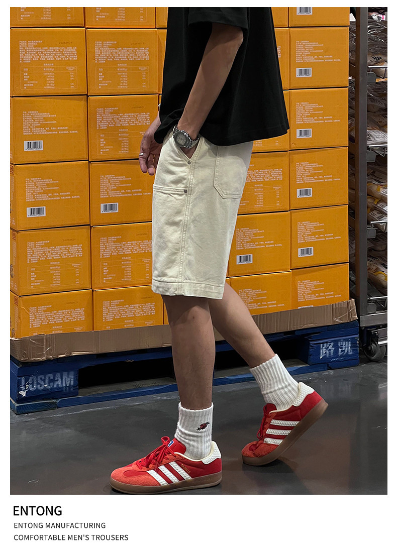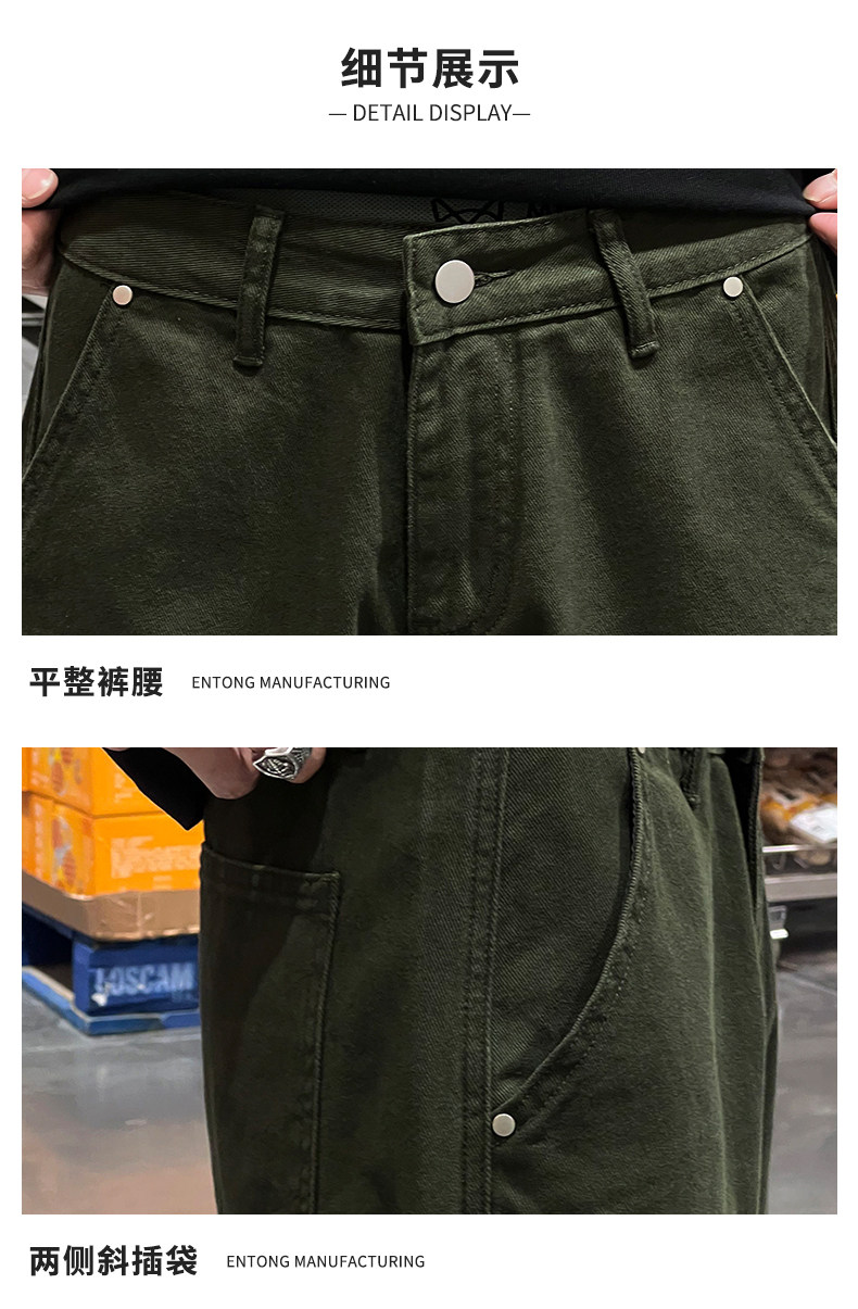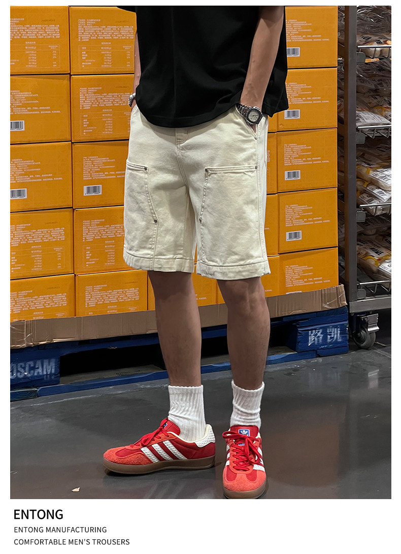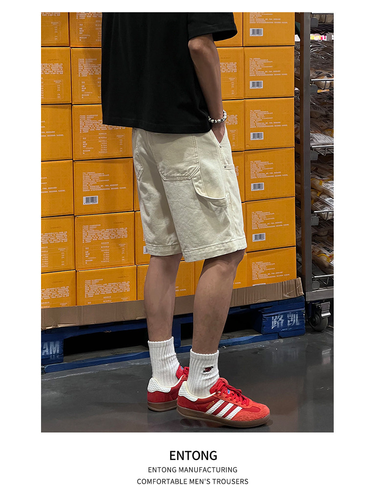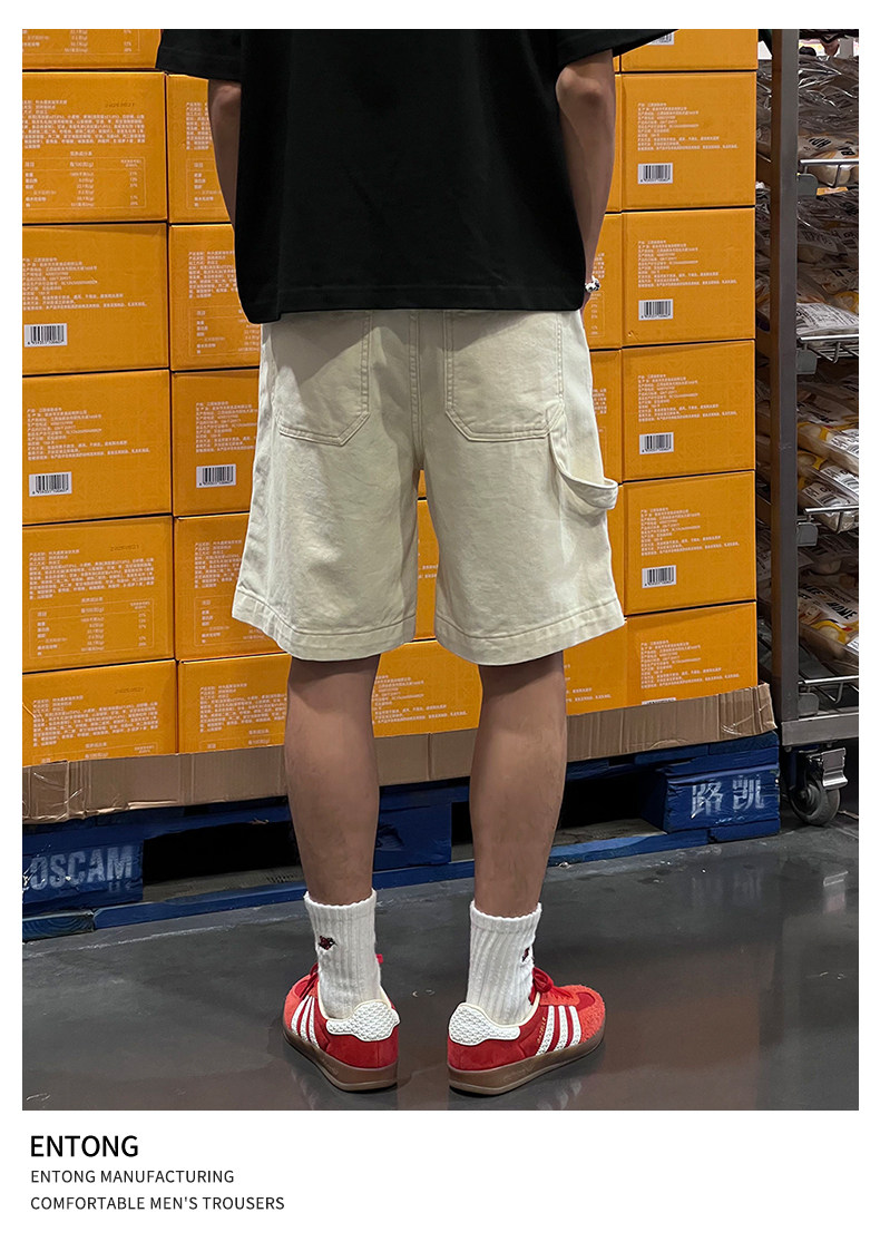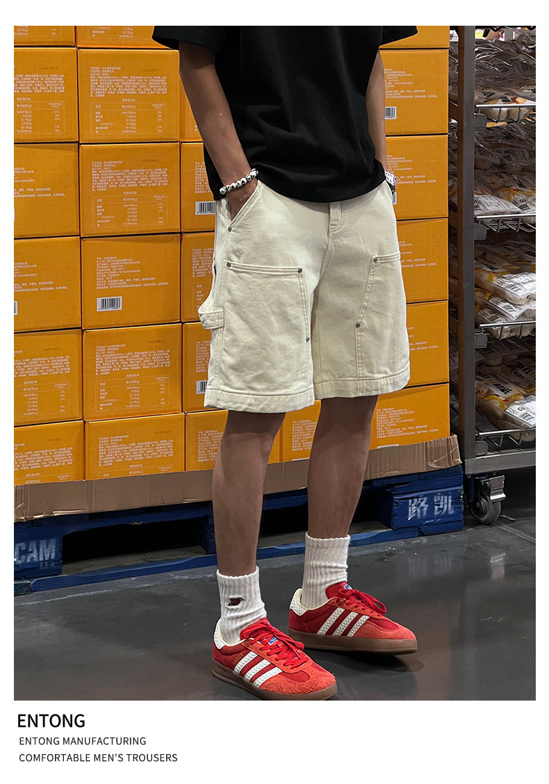 Entong Summer New Lumberjack Cargo Shorts Men's American Street Style Studded Casual Versatile Loose Five-Point Shorts