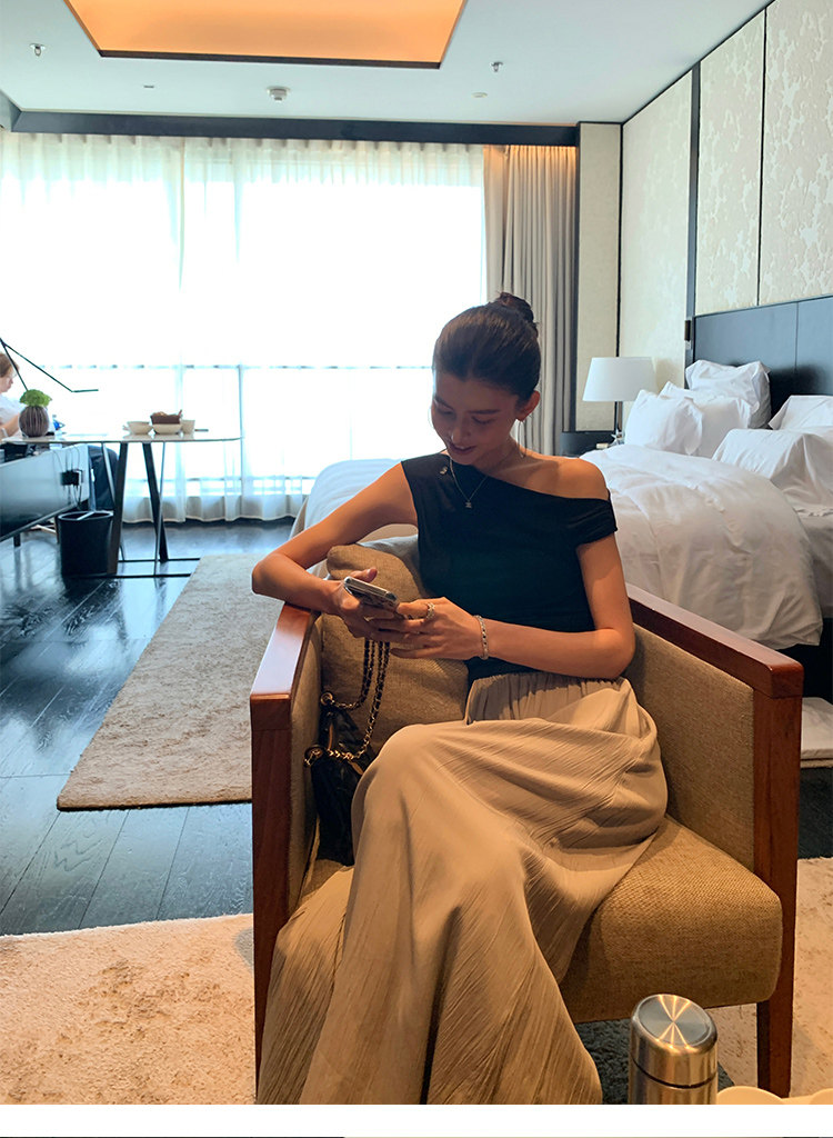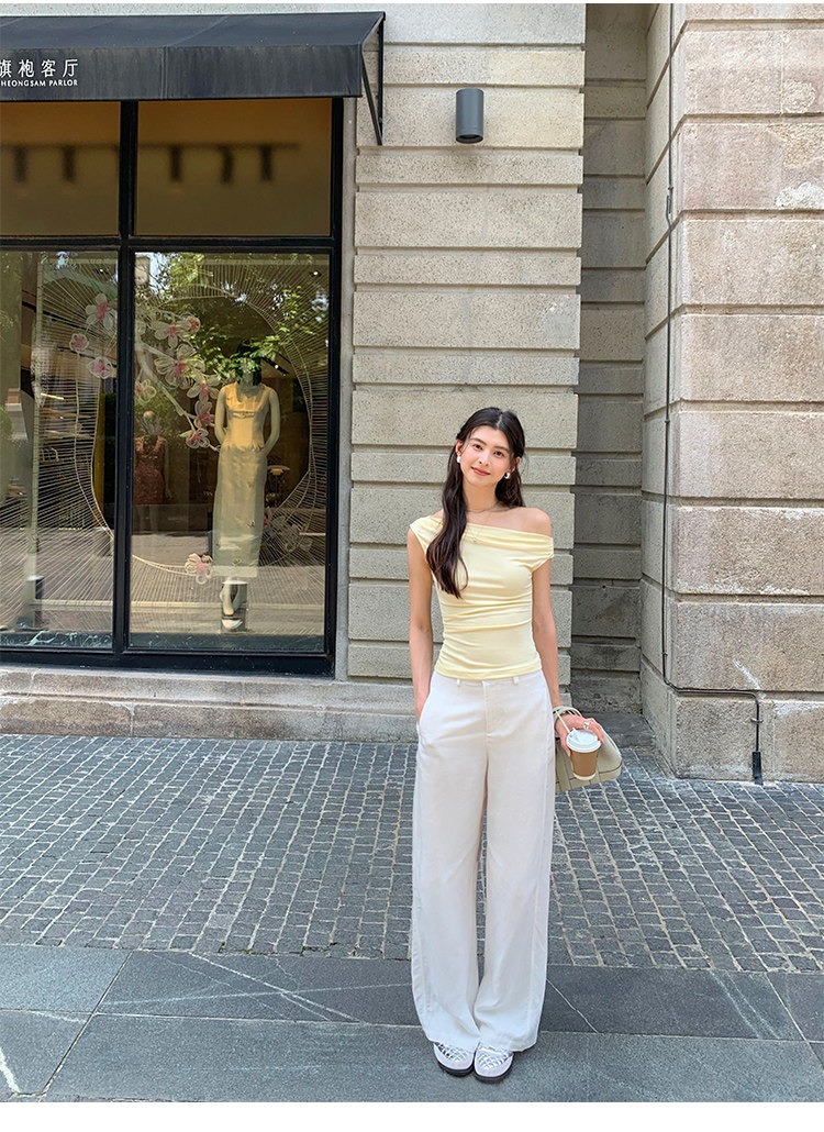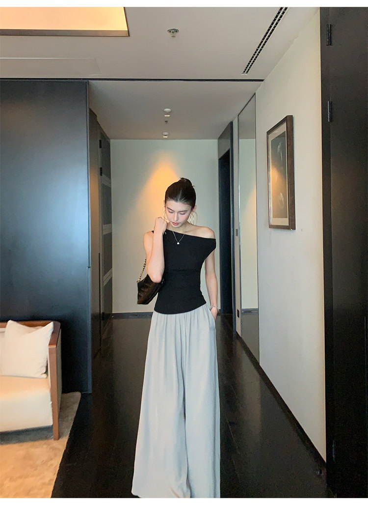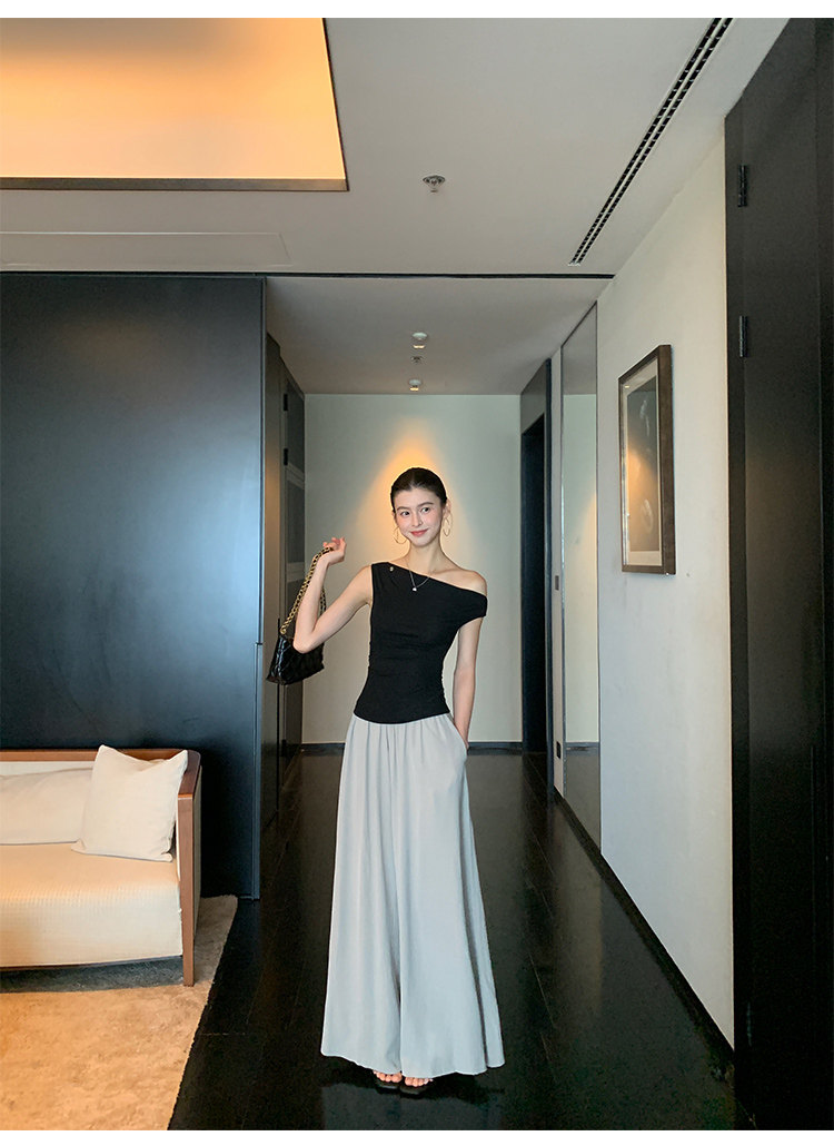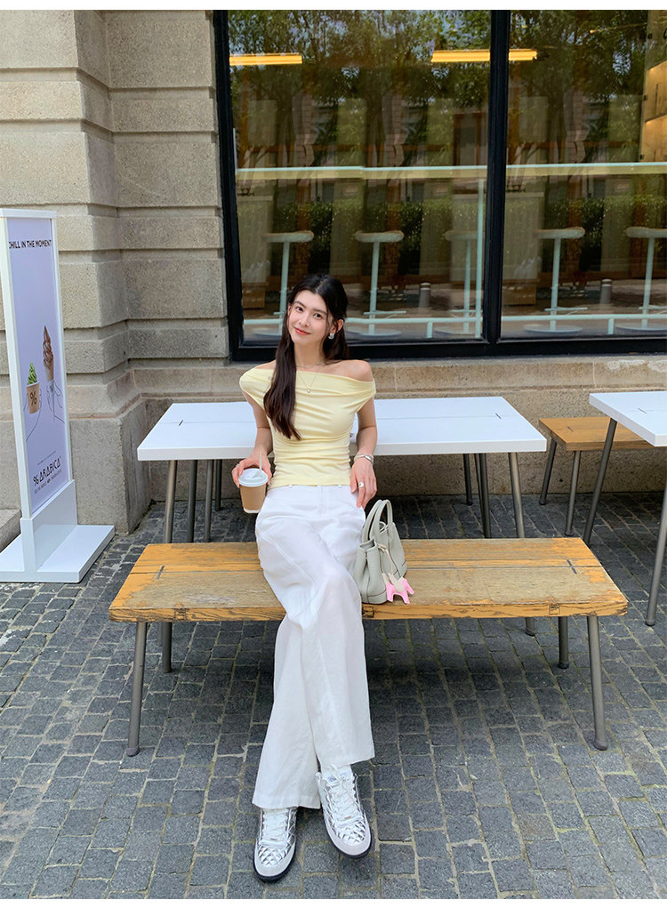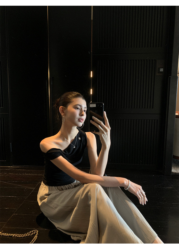 Pusumede Minimalist One-Shoulder T-Shirt for Women, Short Knitted Slim-Fit Elegant Off-Shoulder Sleeveless Top