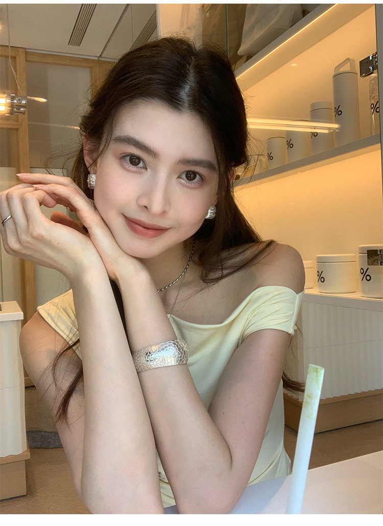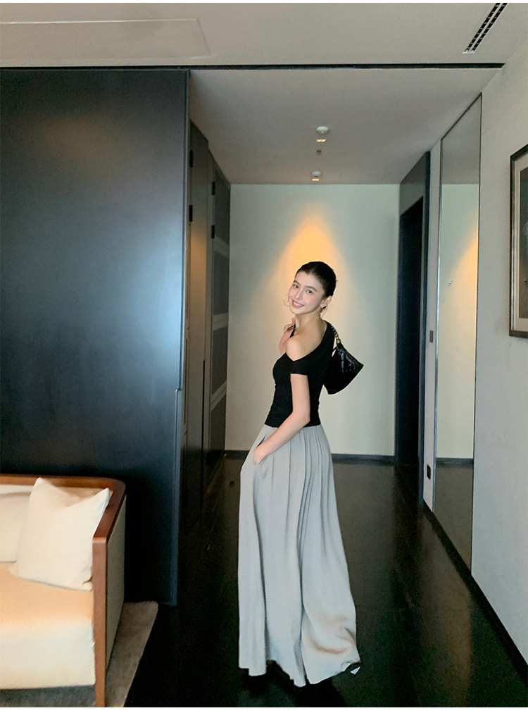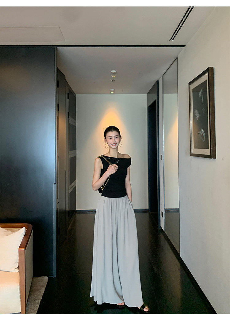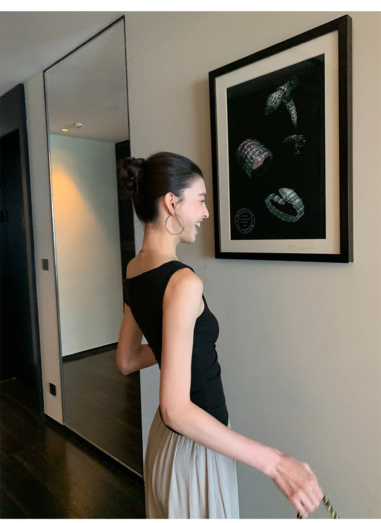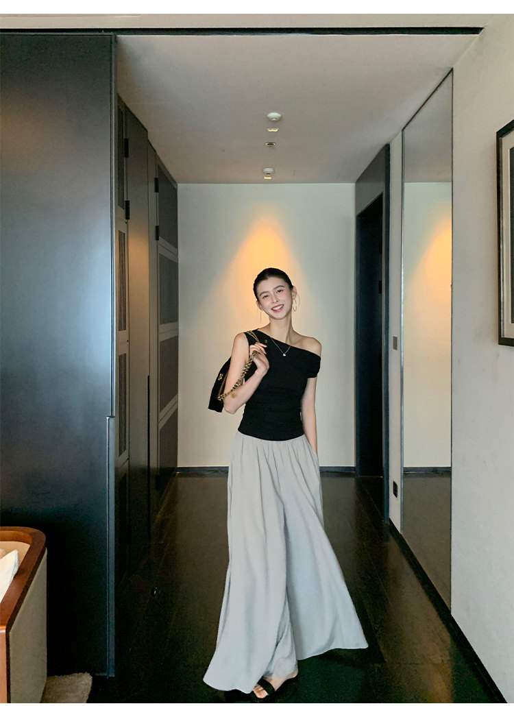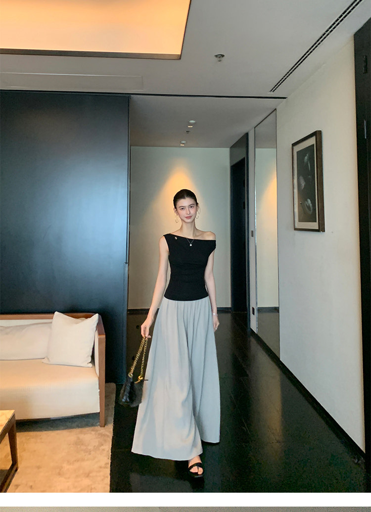 Pusumede Minimalist One-Shoulder T-Shirt for Women, Short Knitted Slim-Fit Elegant Off-Shoulder Sleeveless Top