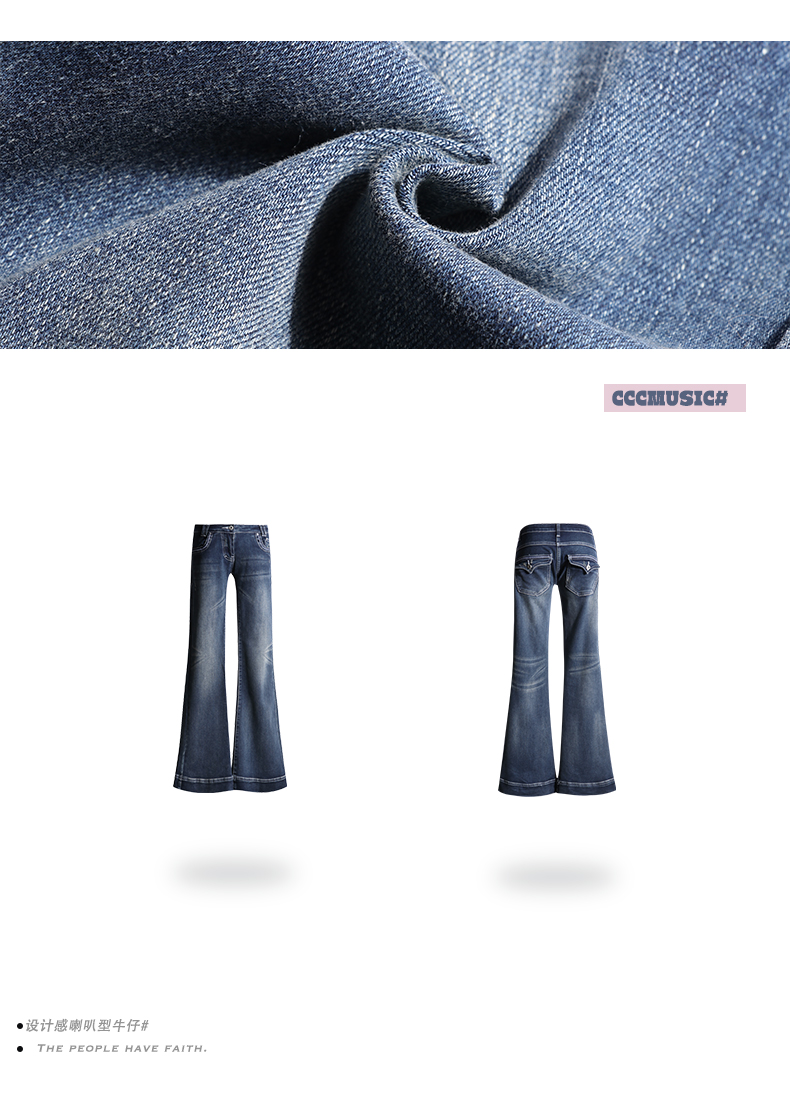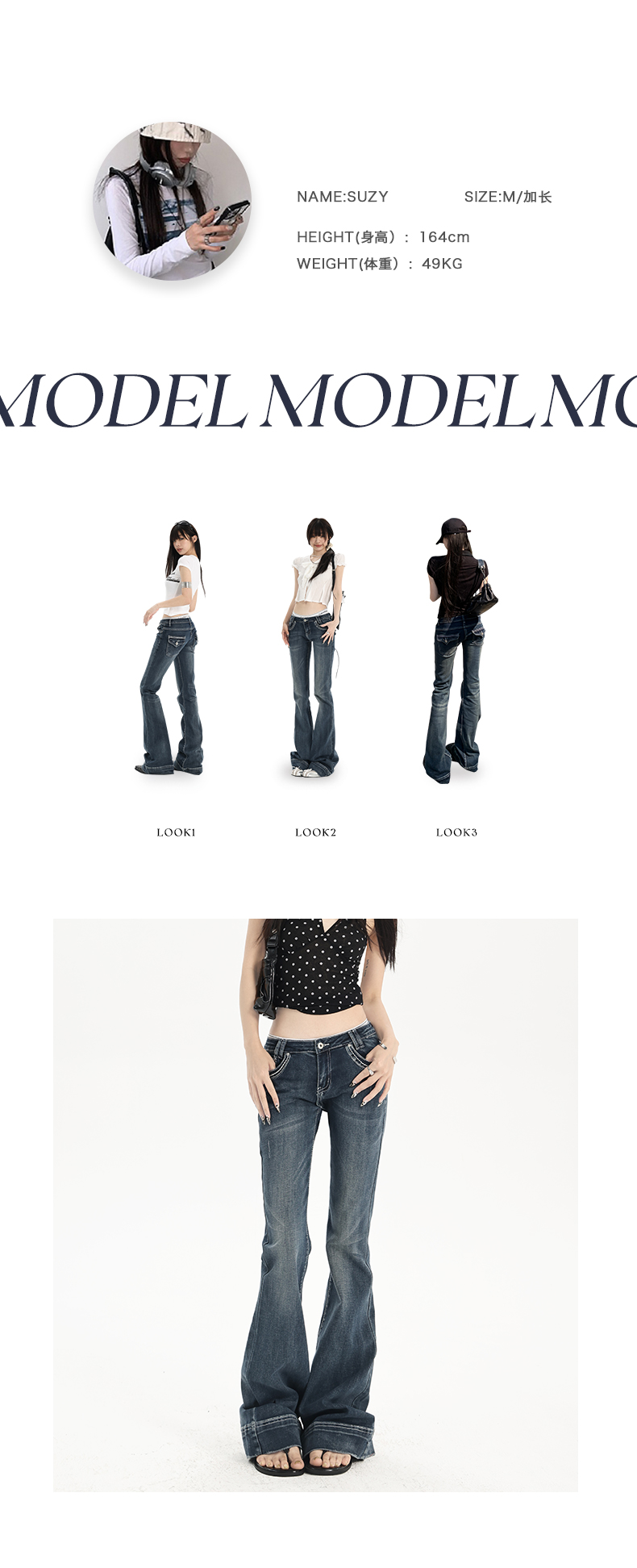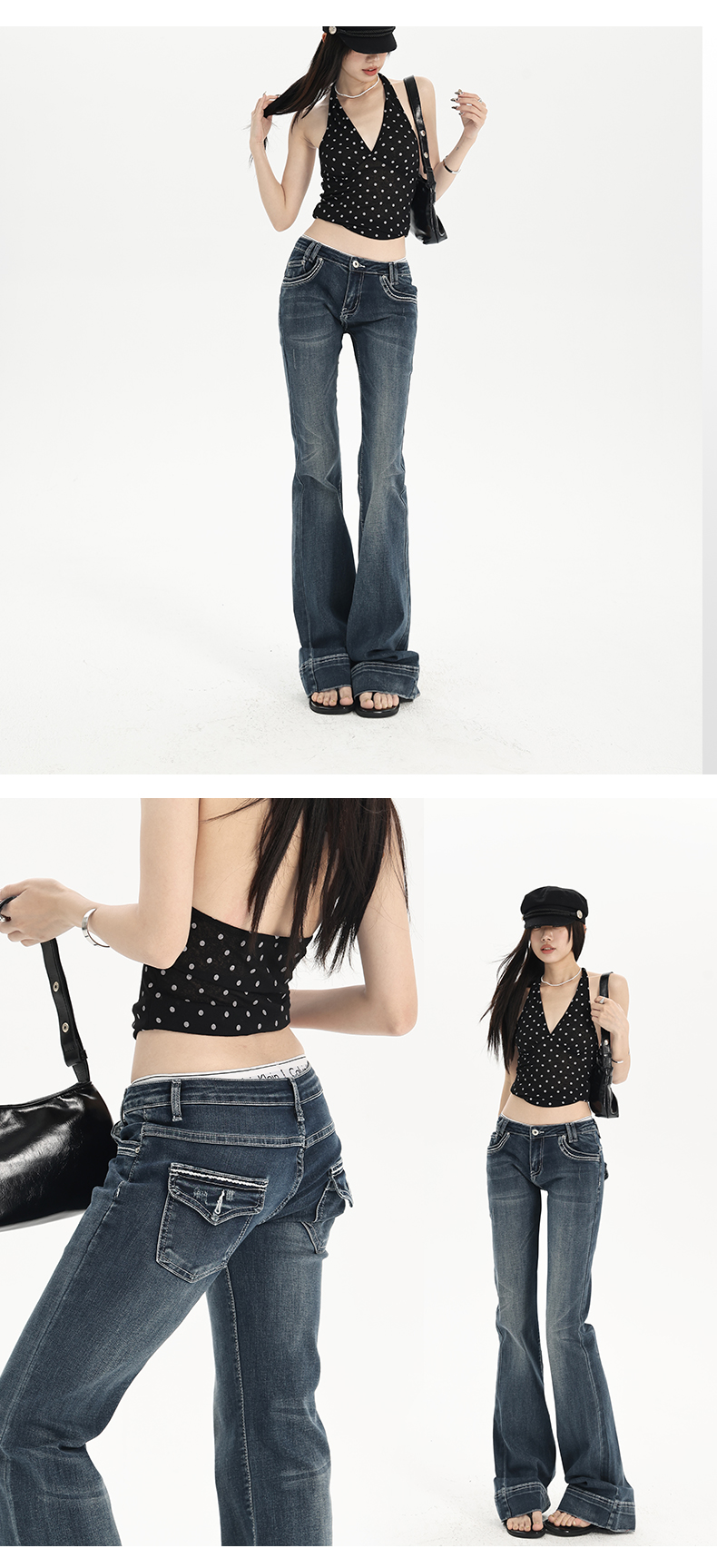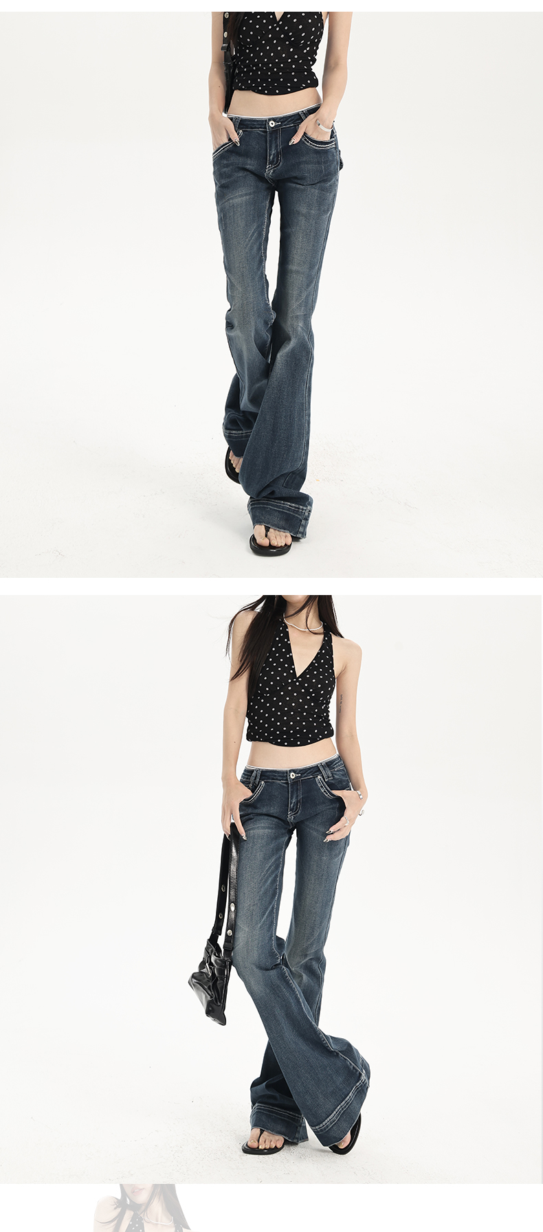 Yi Mengling Style Low-Waist Jeans for Women, American-Style Dark Blue, Slimming Design, Floor-Length Flared Pants