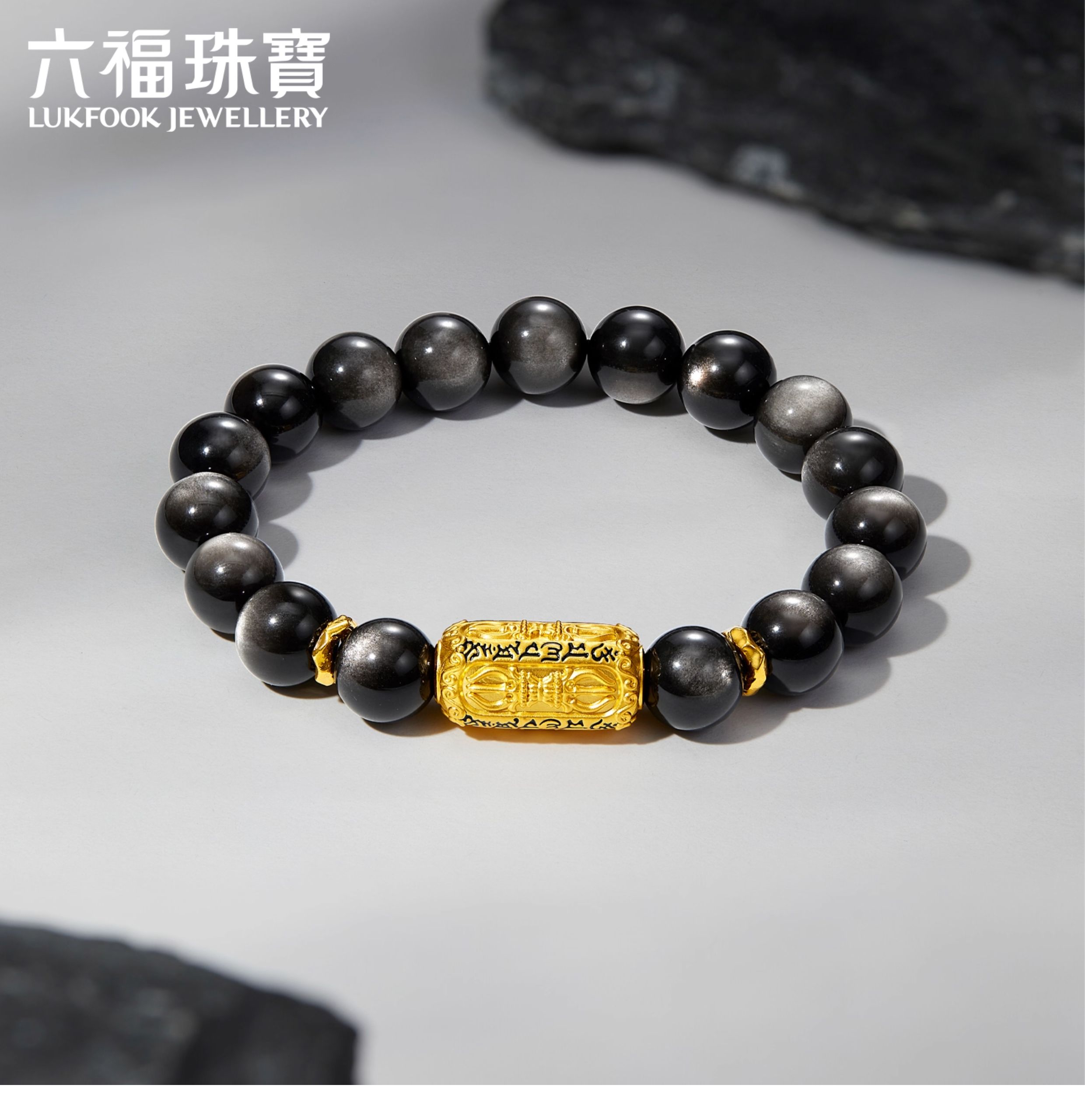 Liufu Jewelry Six Character Truth Gold Transfer Bead Bracelet Men Pestle Obsidian Bracelet G38A0002DS