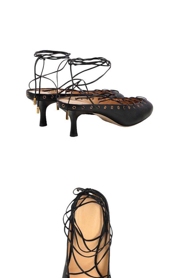 2025 Summer New European and American Women's Roman Sandals Sexy Shallow Round Toe Cross High Heel Strap Ballet Closed-Toe Sandals