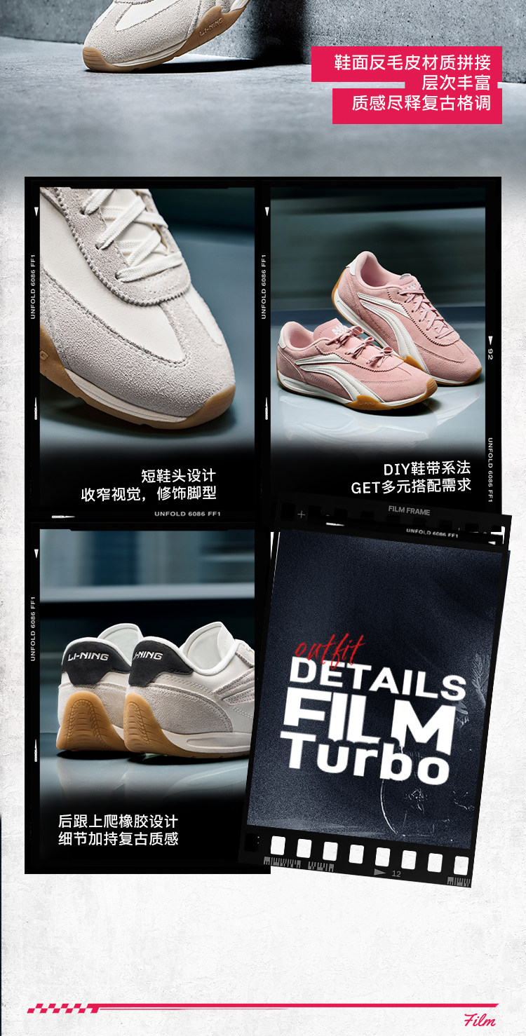 Li Ning Film Turbo | Casual Shoes for Women, New Retro Red German Training Thin-Soled Racing Sneakers for Men in the Year of the Horse.
