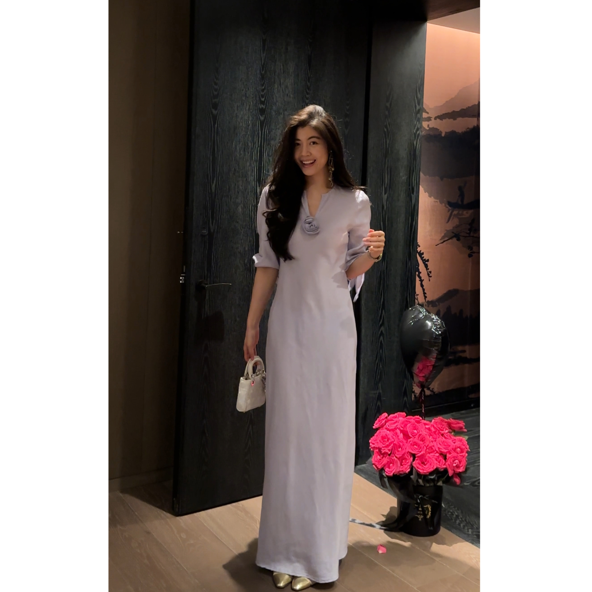 N.Cou 25 Summer New Fashionable and Elegant High-End Design with Three-Dimensional Floral V-Neck Tencel Dress