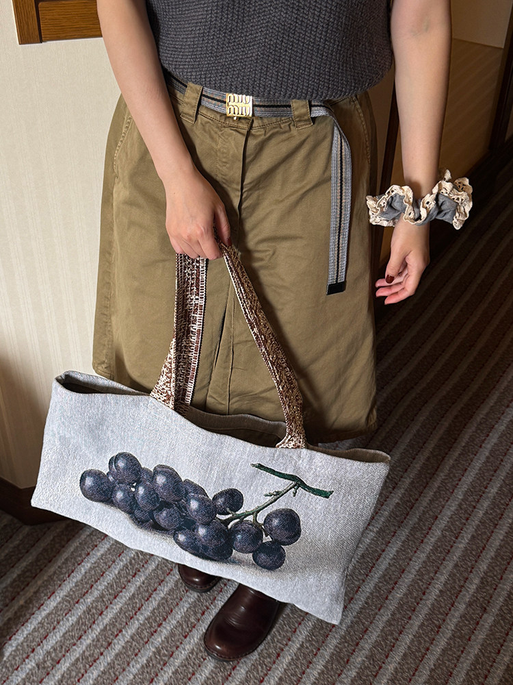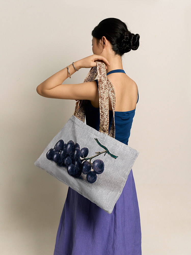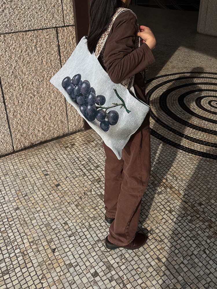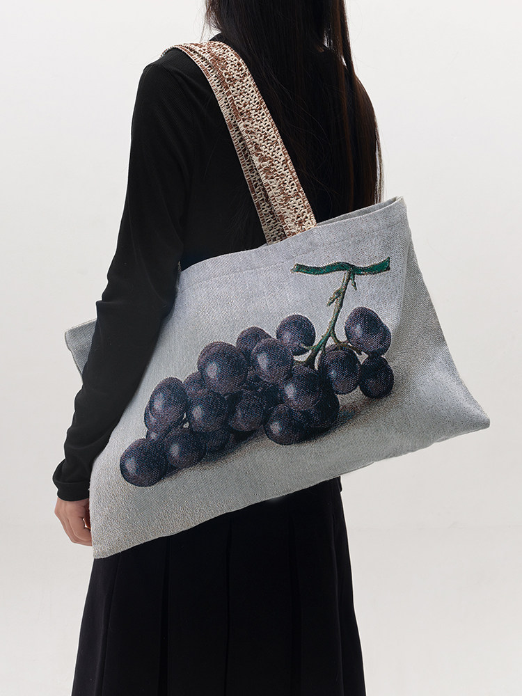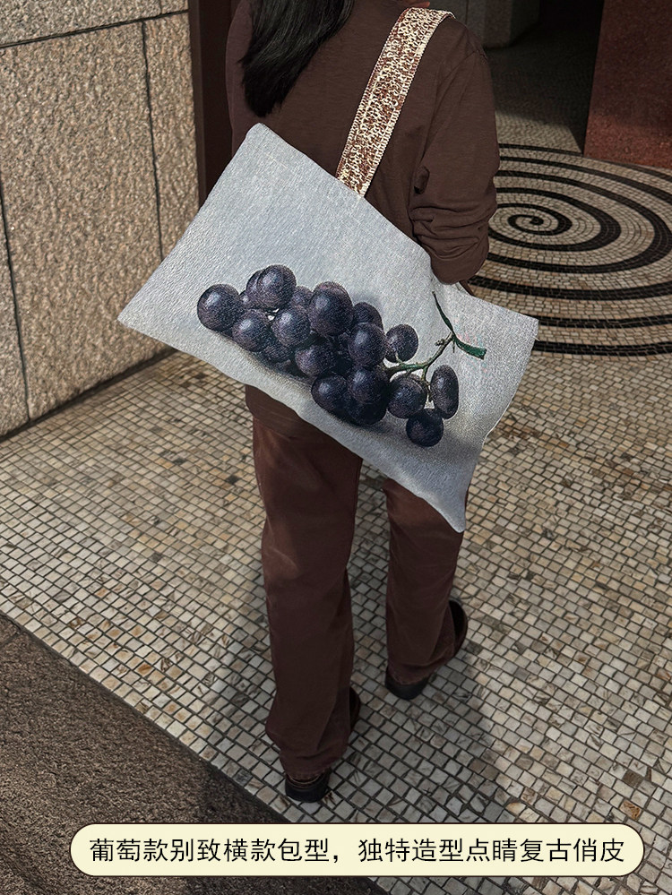 Niche Design Pear Grape Oil Painting Bag Hand-Painted Bag Yarn-Dyed Retro Large-Capacity High-End Shoulder Bag