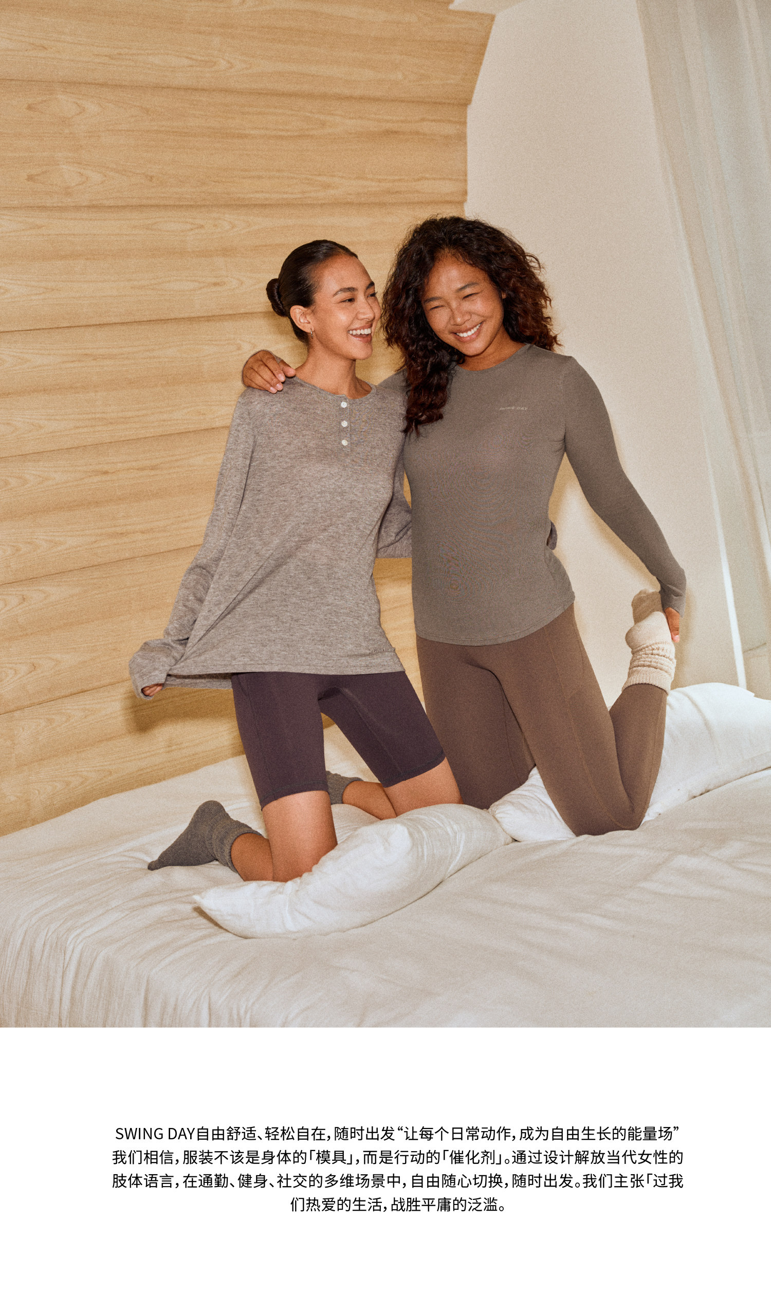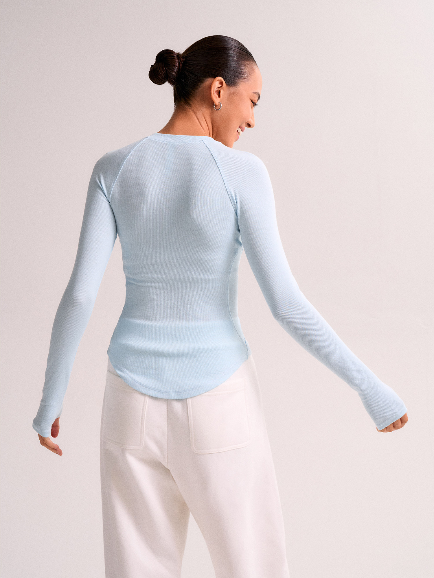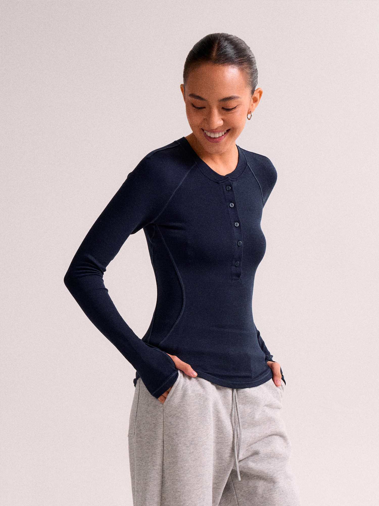Swing Day Tencel Modal Henry Collar Regular Shoulder Slim Fit Simple Slimming Sports Long-Sleeve Base Shirt for Women
