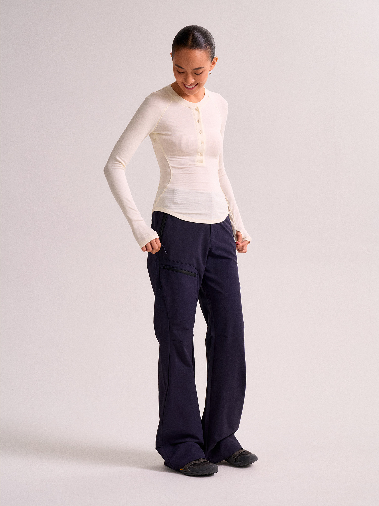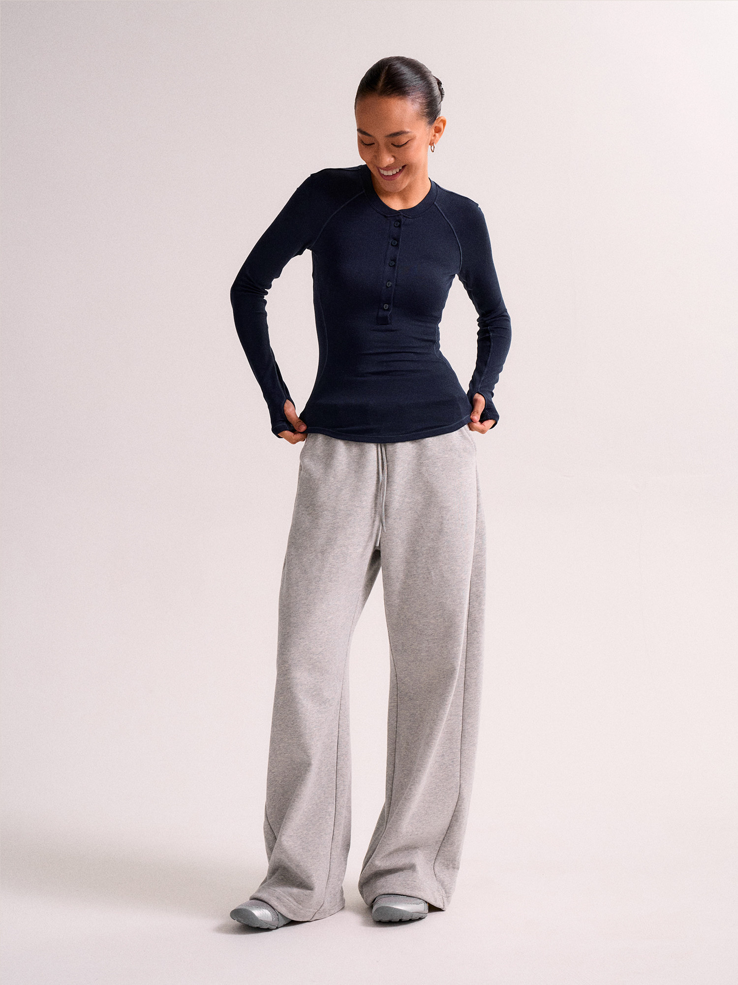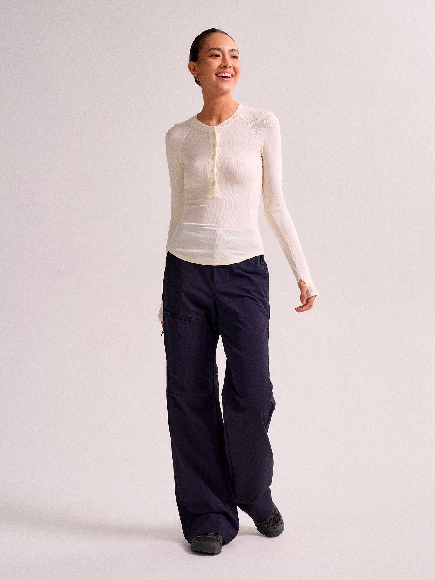Swing Day Tencel Modal Henry Collar Regular Shoulder Slim Fit Simple Slimming Sports Long-Sleeve Base Shirt for Women