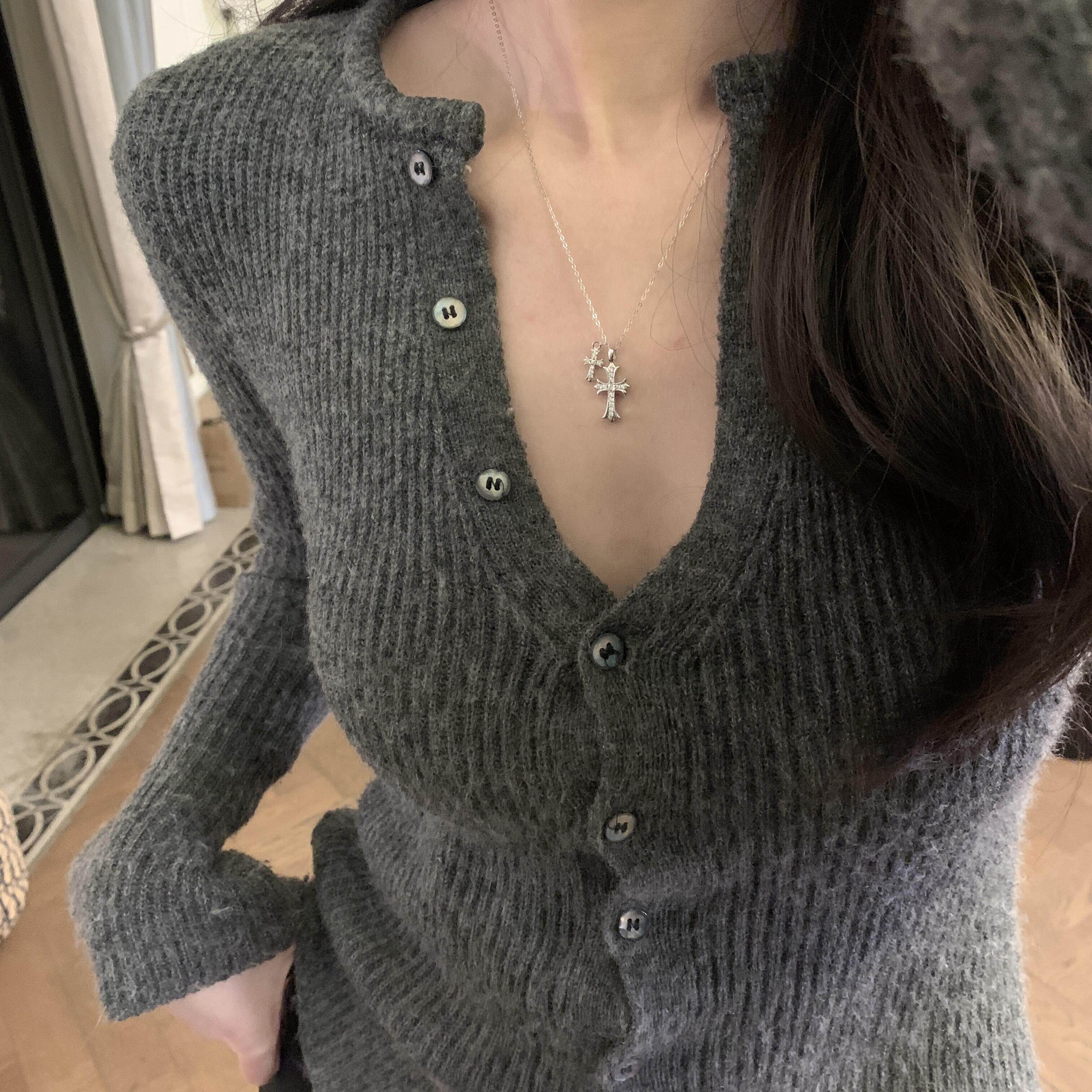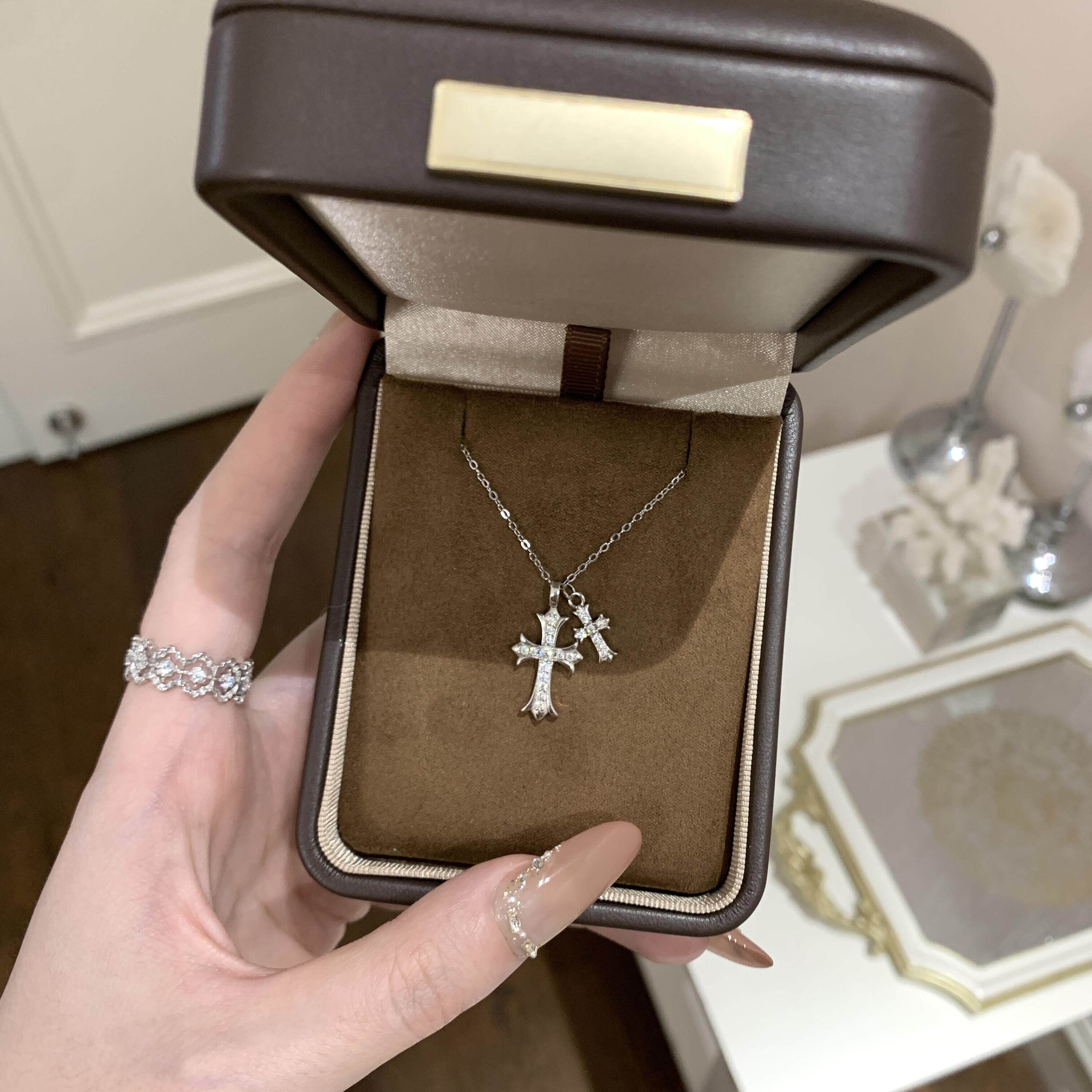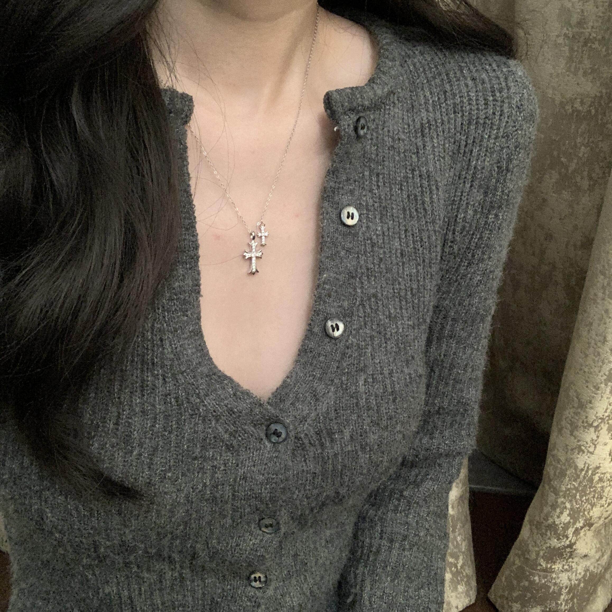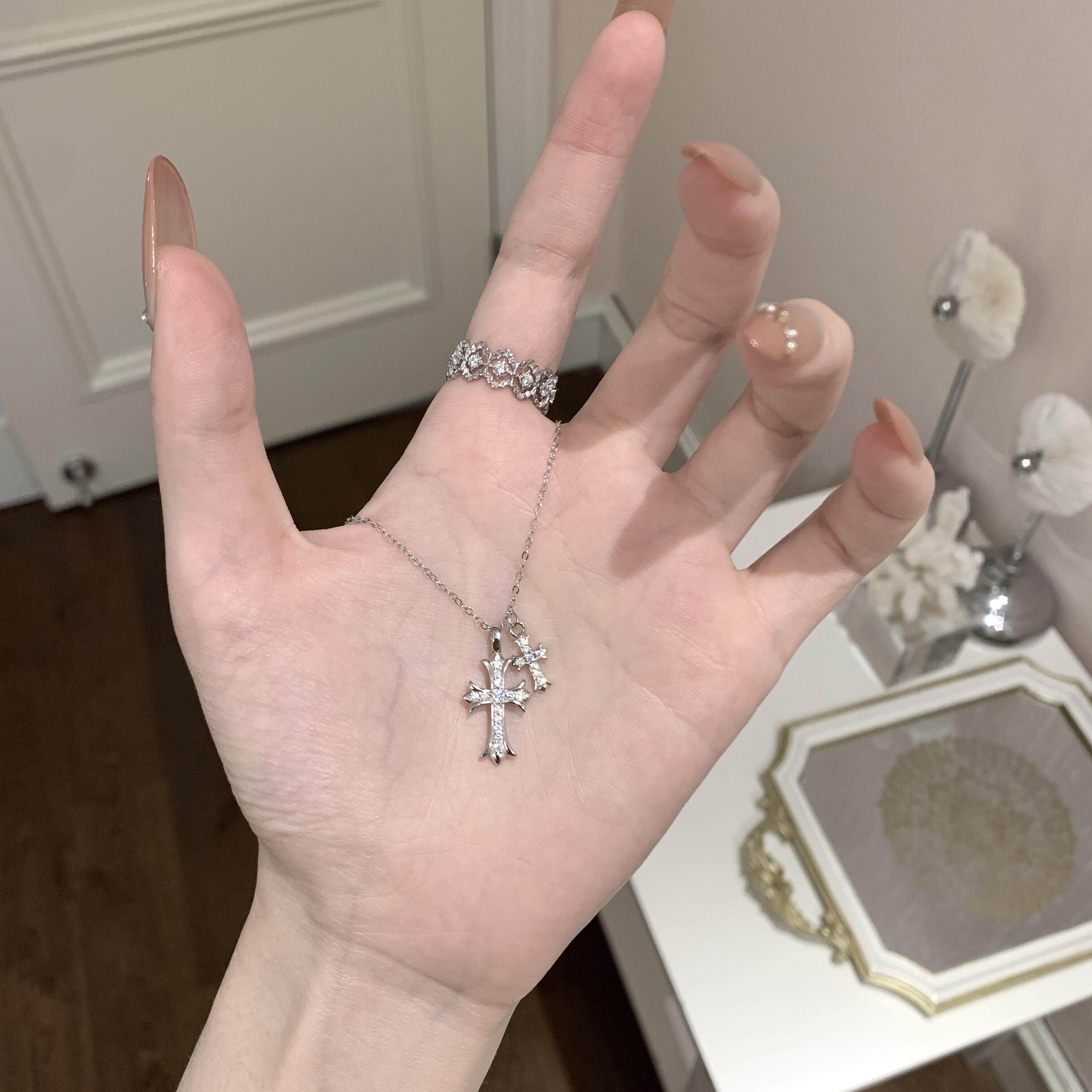 French Guir Oe'Cross' Sterling Silver Necklace for Women, Cross Pendant Collarbone Chain, Niche Gift