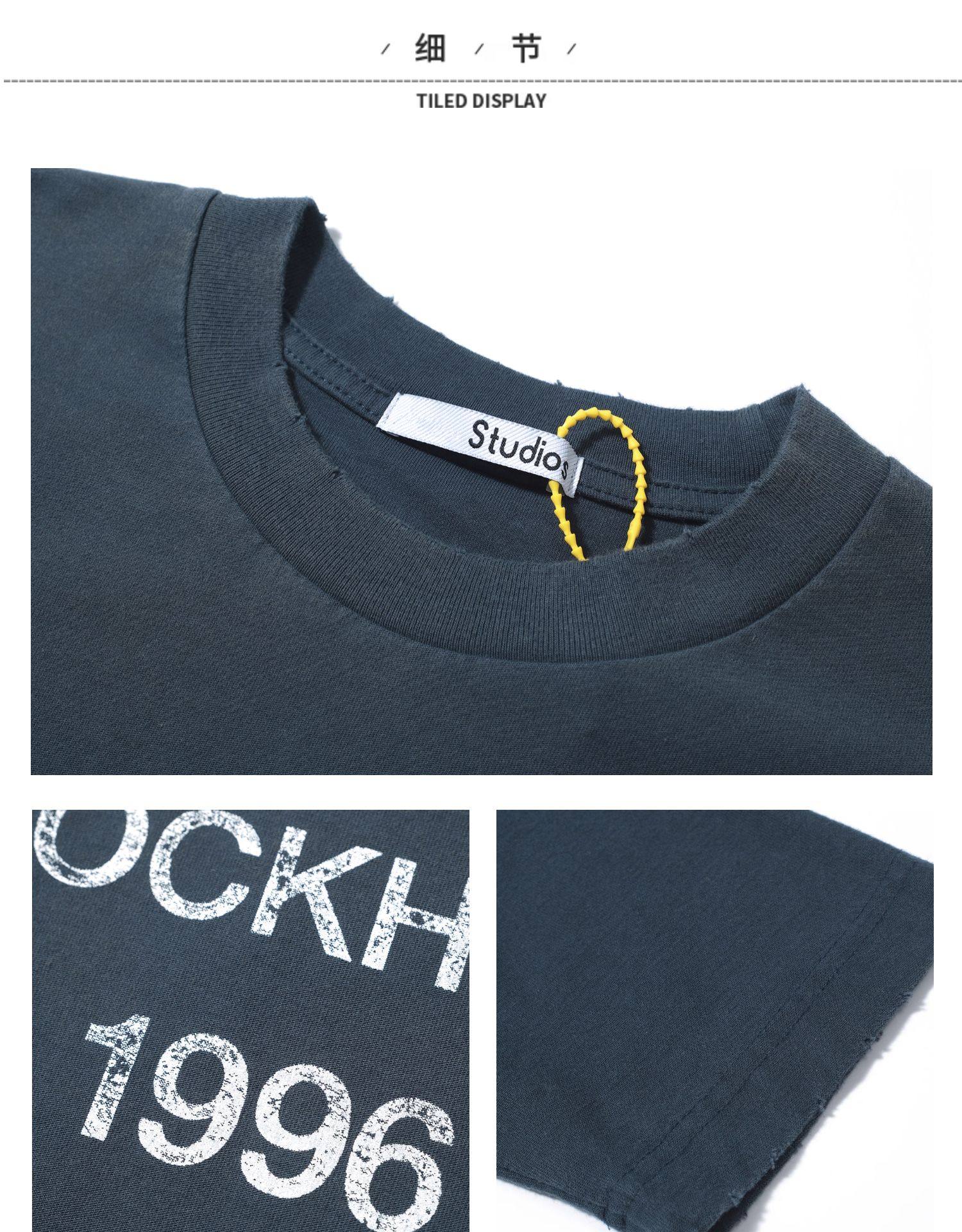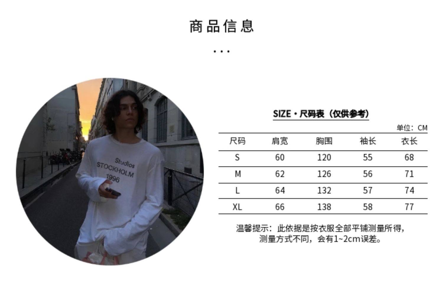 Ac Style Simple Letter Print Base Shirt Retro Distressed Vintage Unisex Loose Casual Long-Sleeve T-Shirt