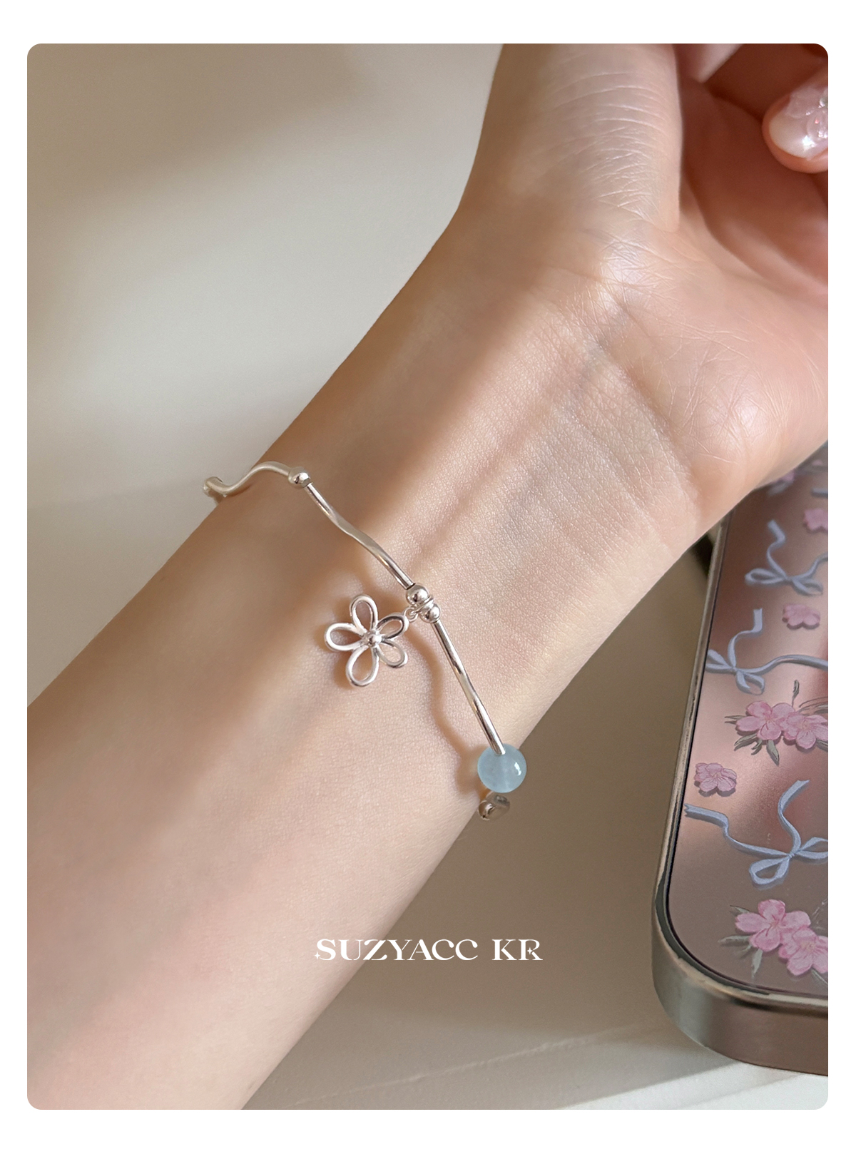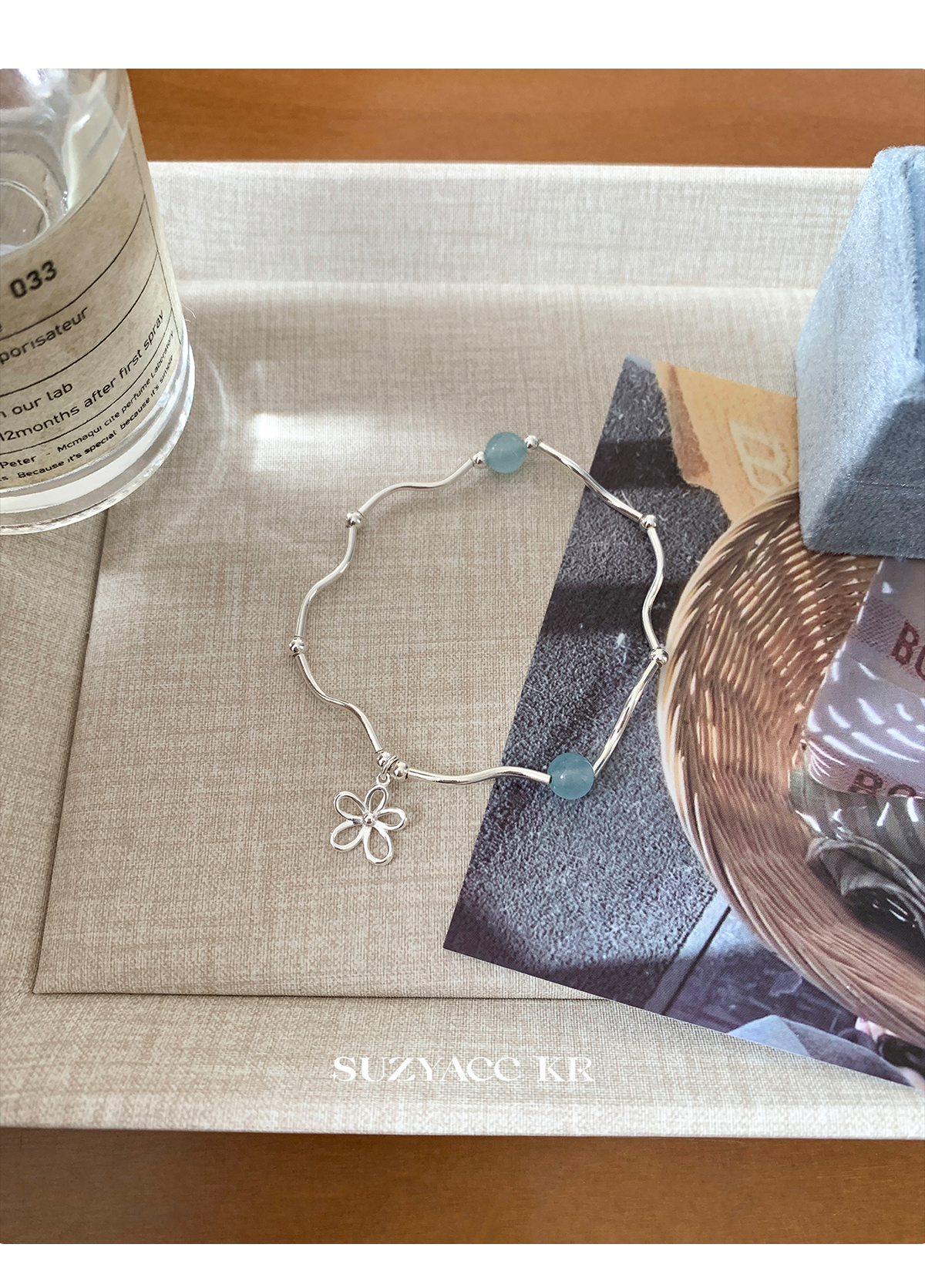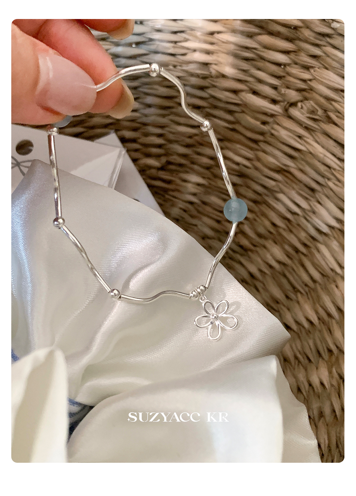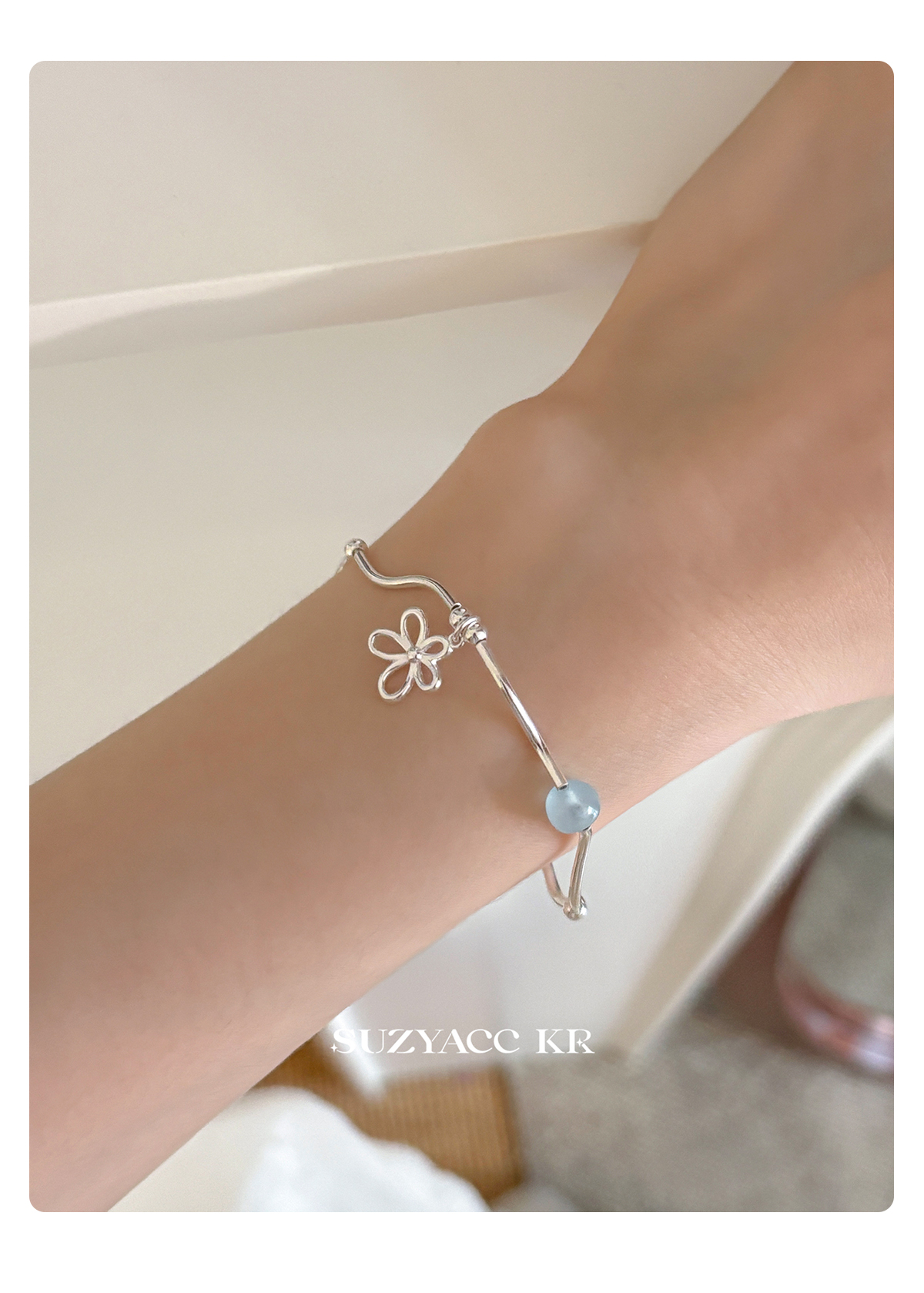 Suzyacc Kr Blue Flower Elastic Cord Simple Niche High-End Sterling Silver Bracelet ins Versatile and Elegant Jewelry