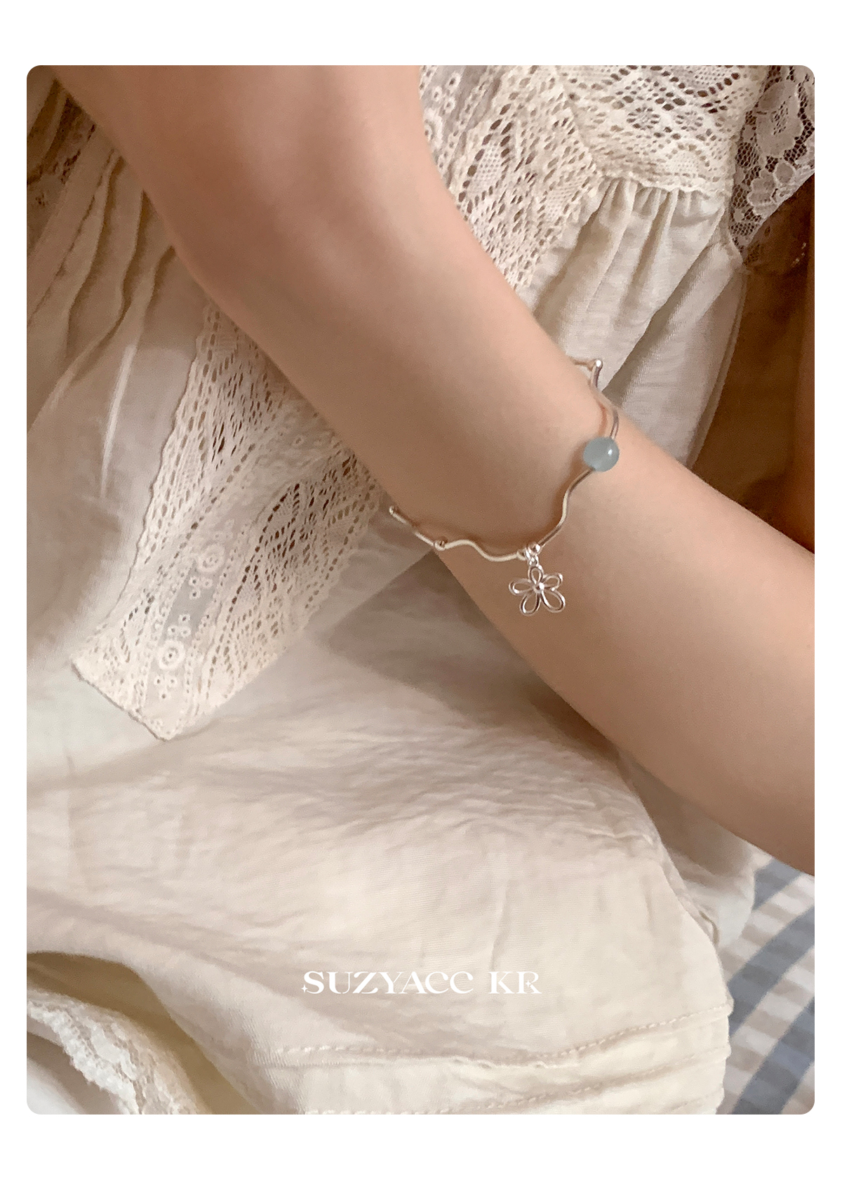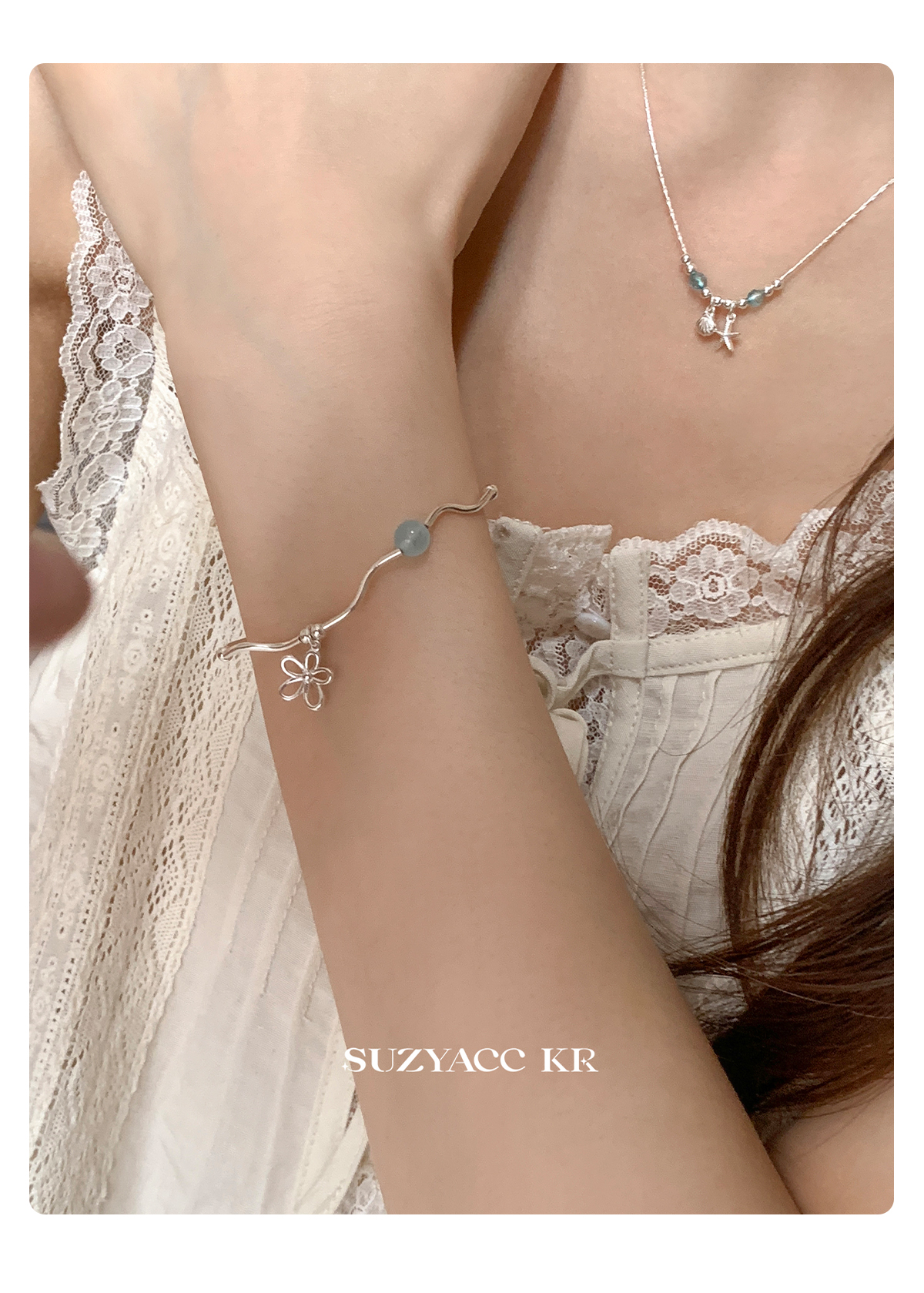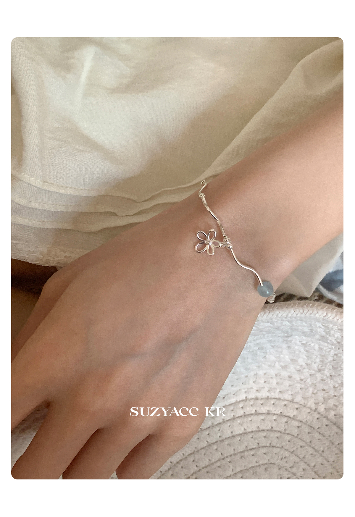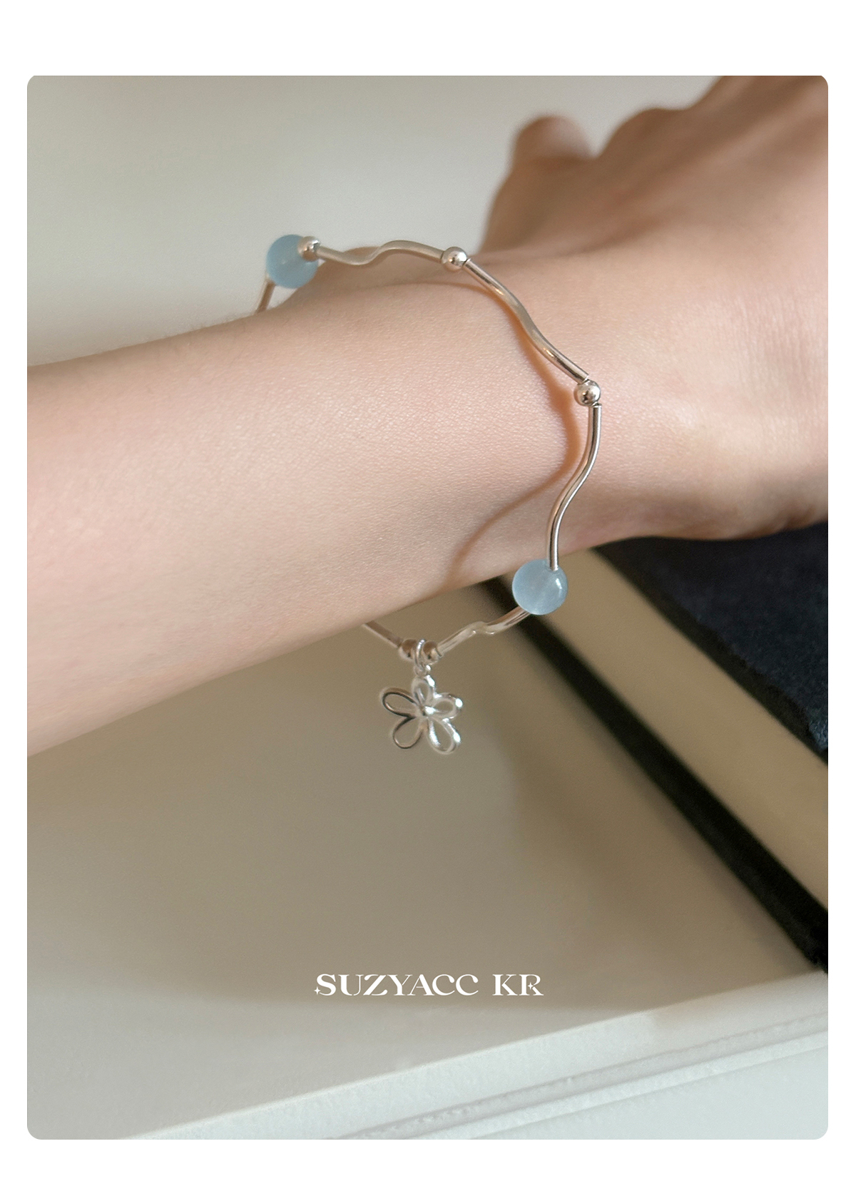 Suzyacc Kr Blue Flower Elastic Cord Simple Niche High-End Sterling Silver Bracelet ins Versatile and Elegant Jewelry