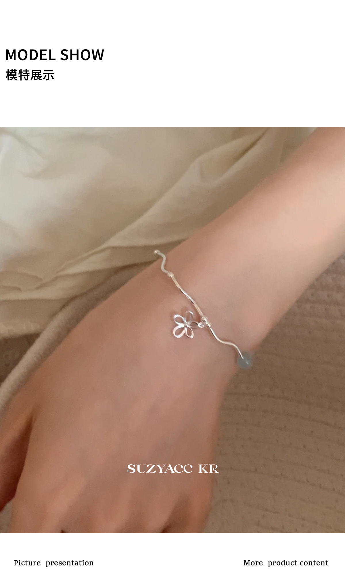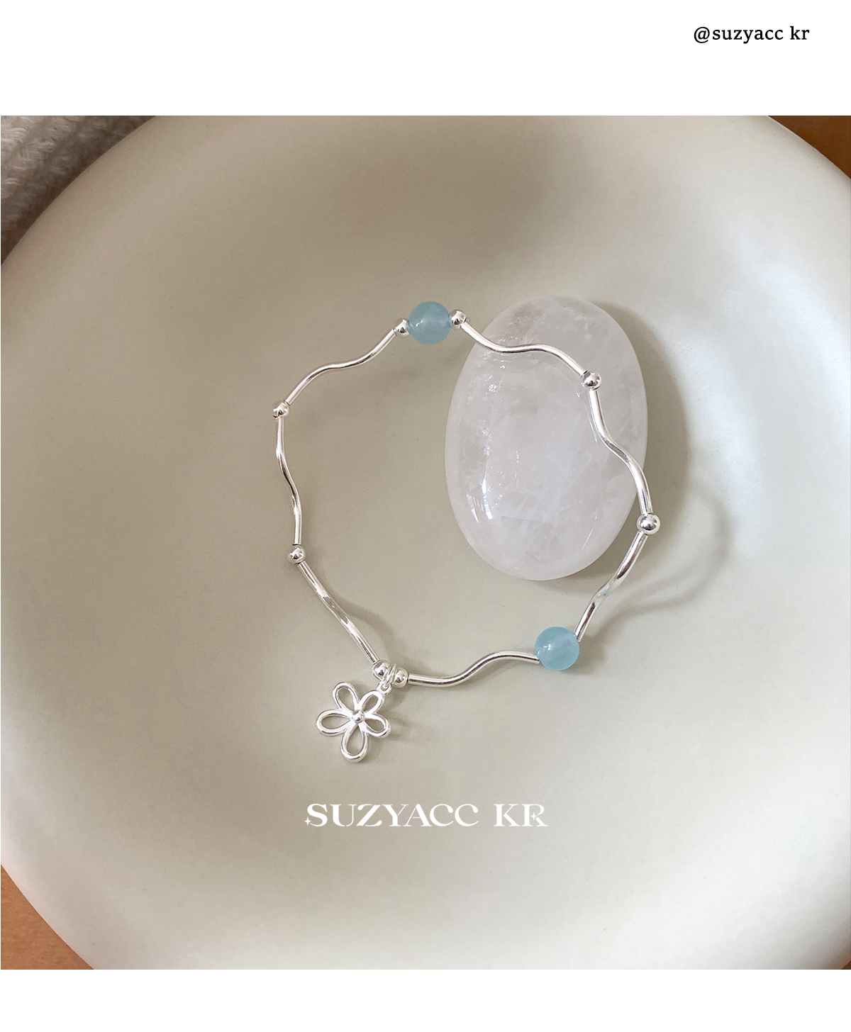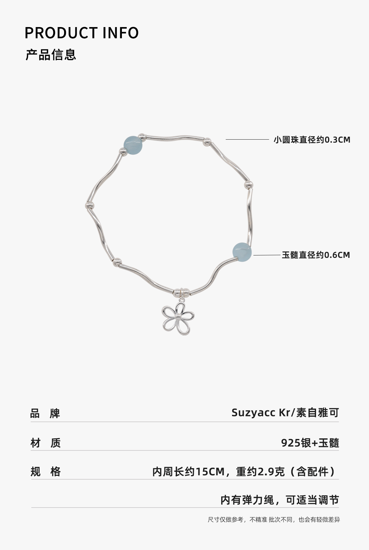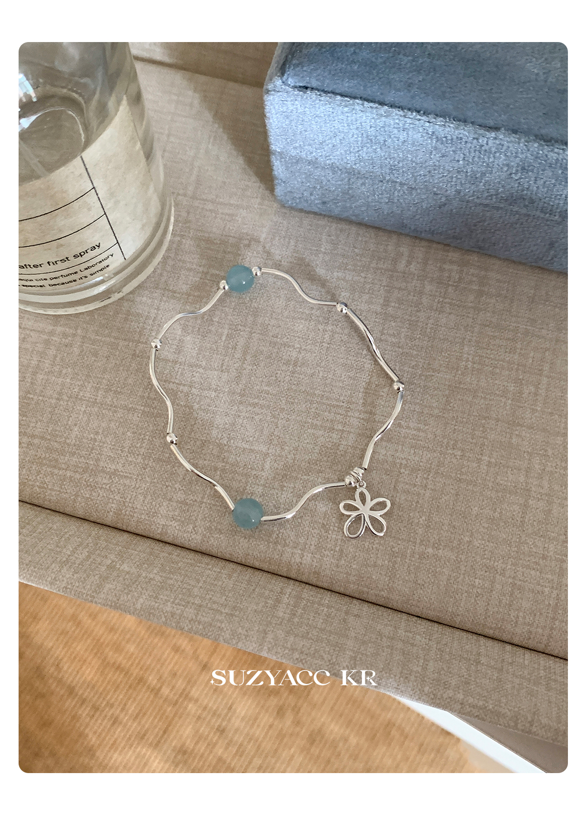 Suzyacc Kr Blue Flower Elastic Cord Simple Niche High-End Sterling Silver Bracelet ins Versatile and Elegant Jewelry