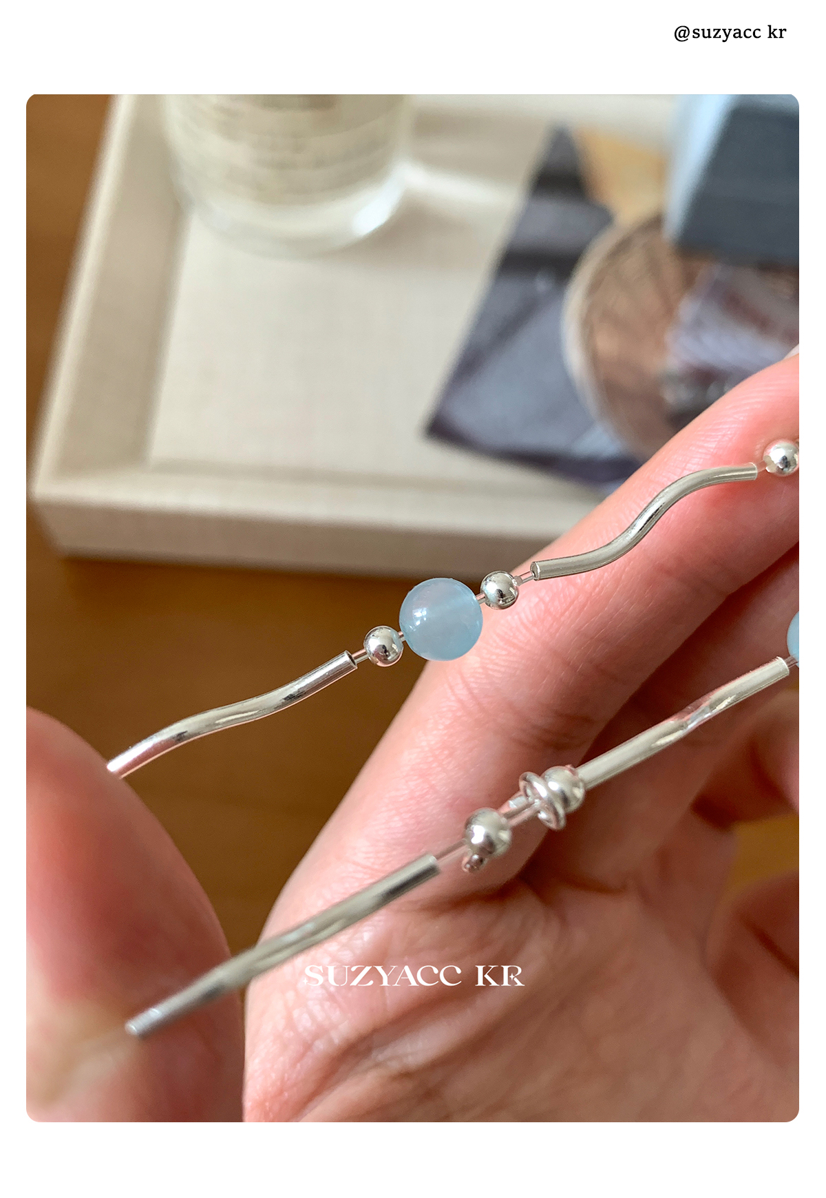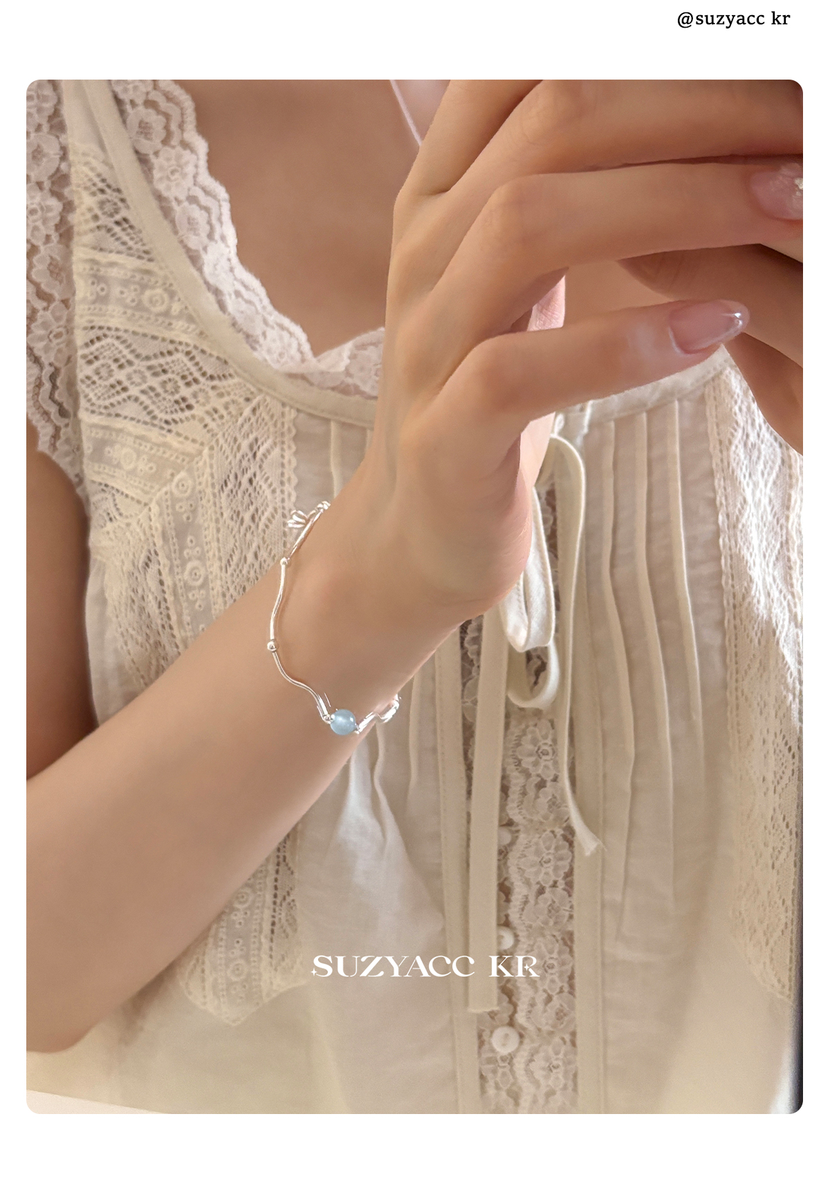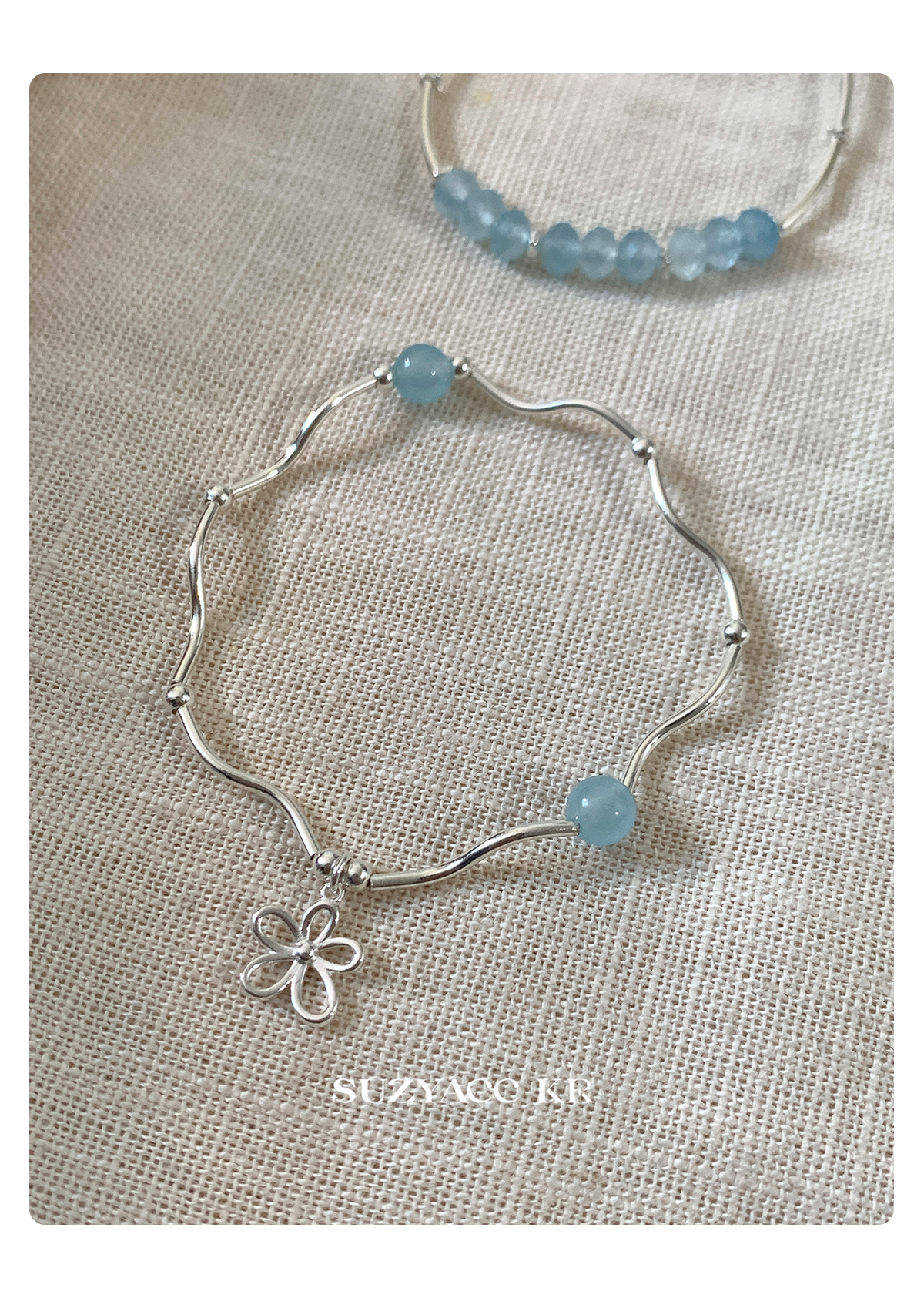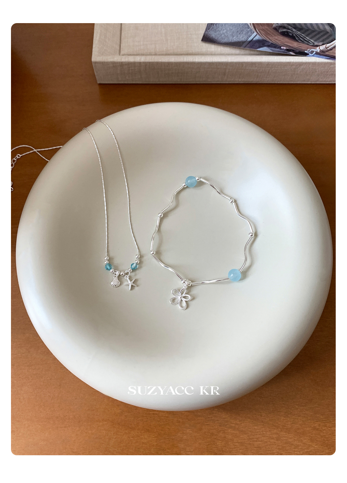 Suzyacc Kr Blue Flower Elastic Cord Simple Niche High-End Sterling Silver Bracelet ins Versatile and Elegant Jewelry