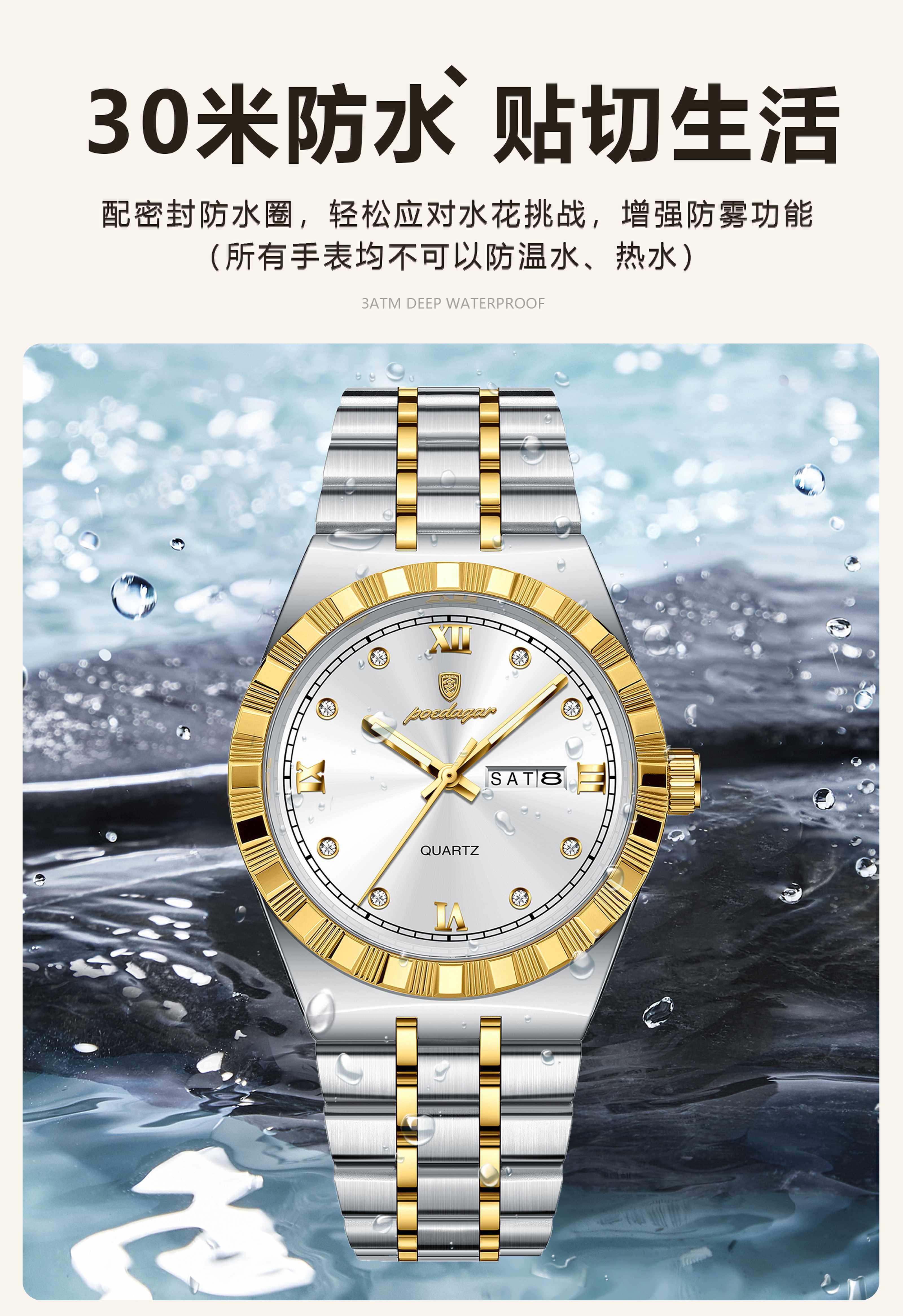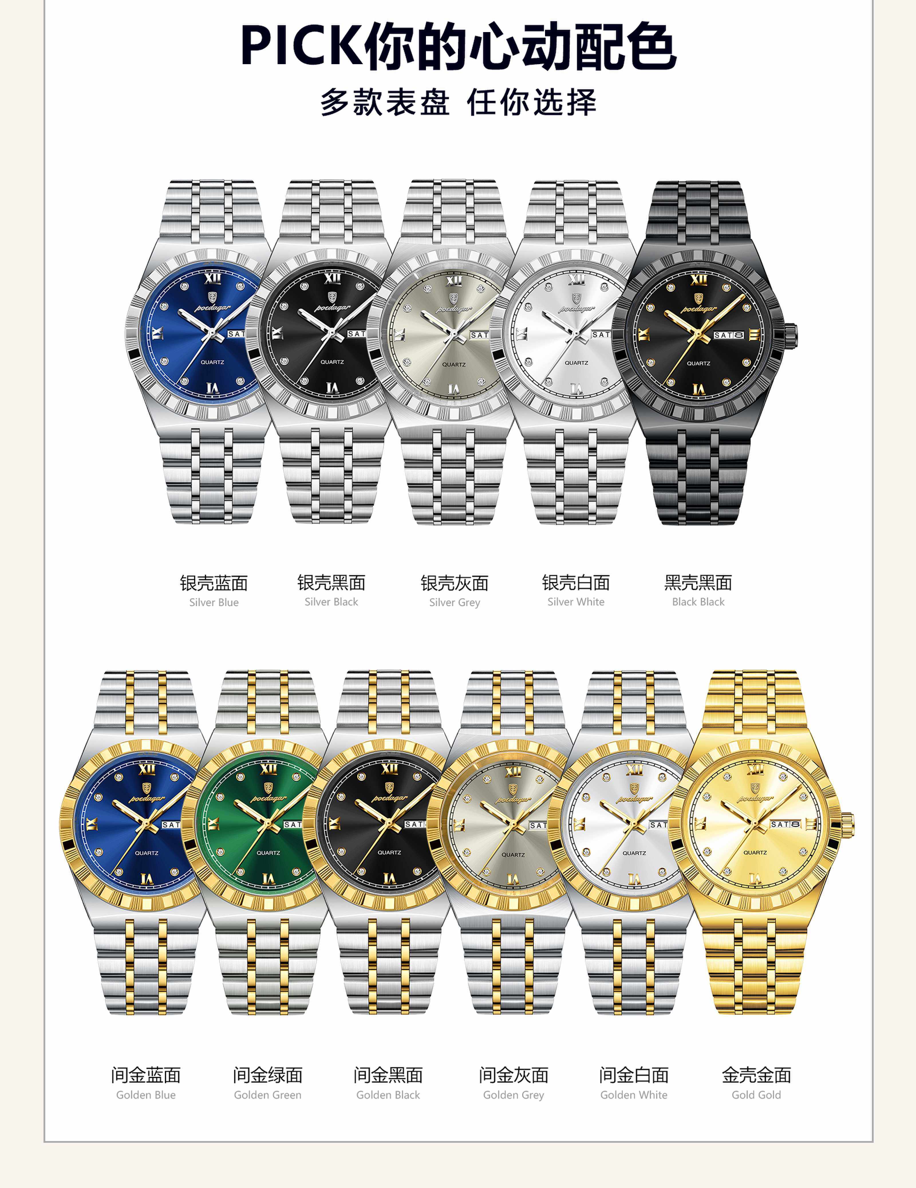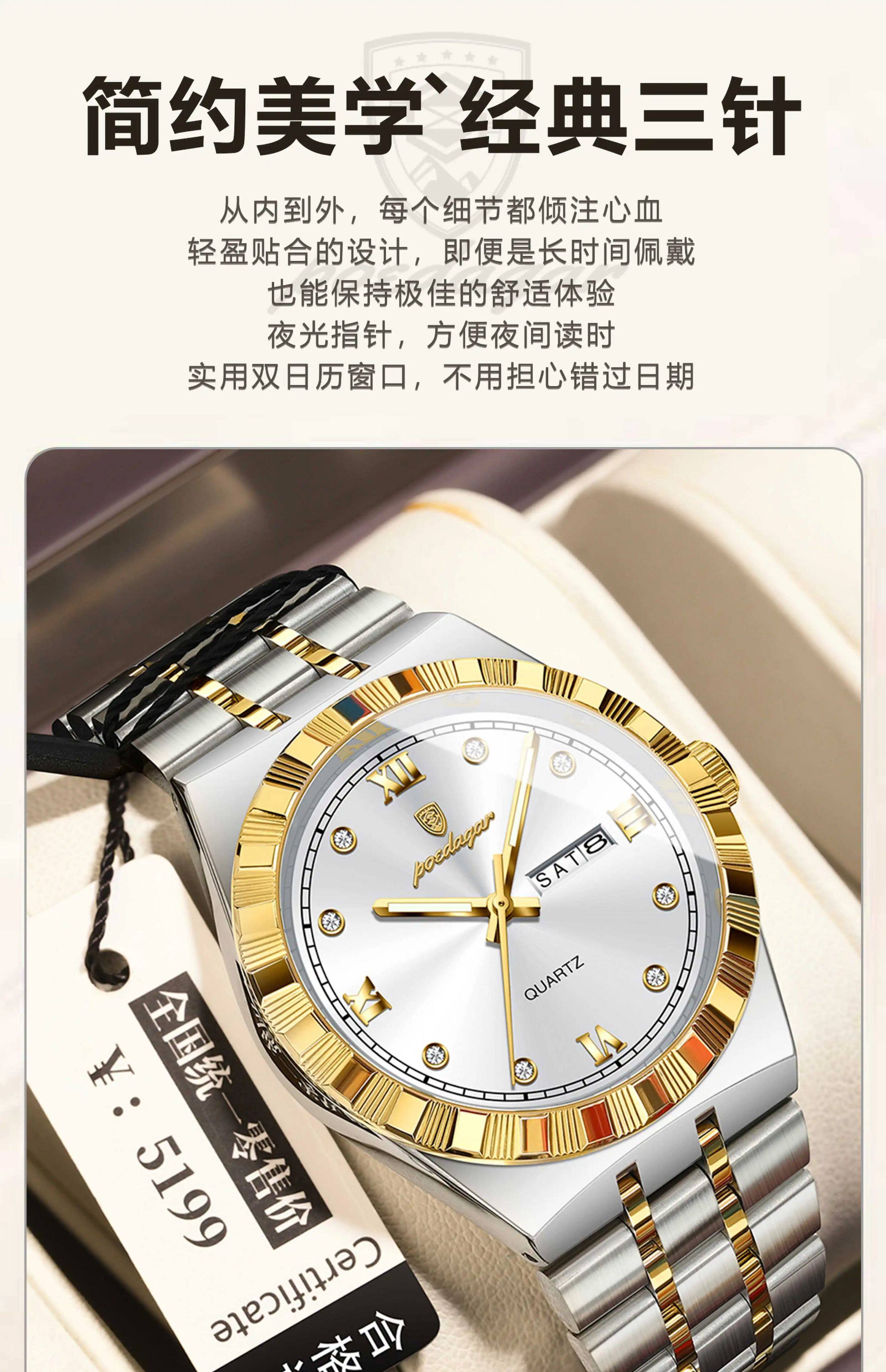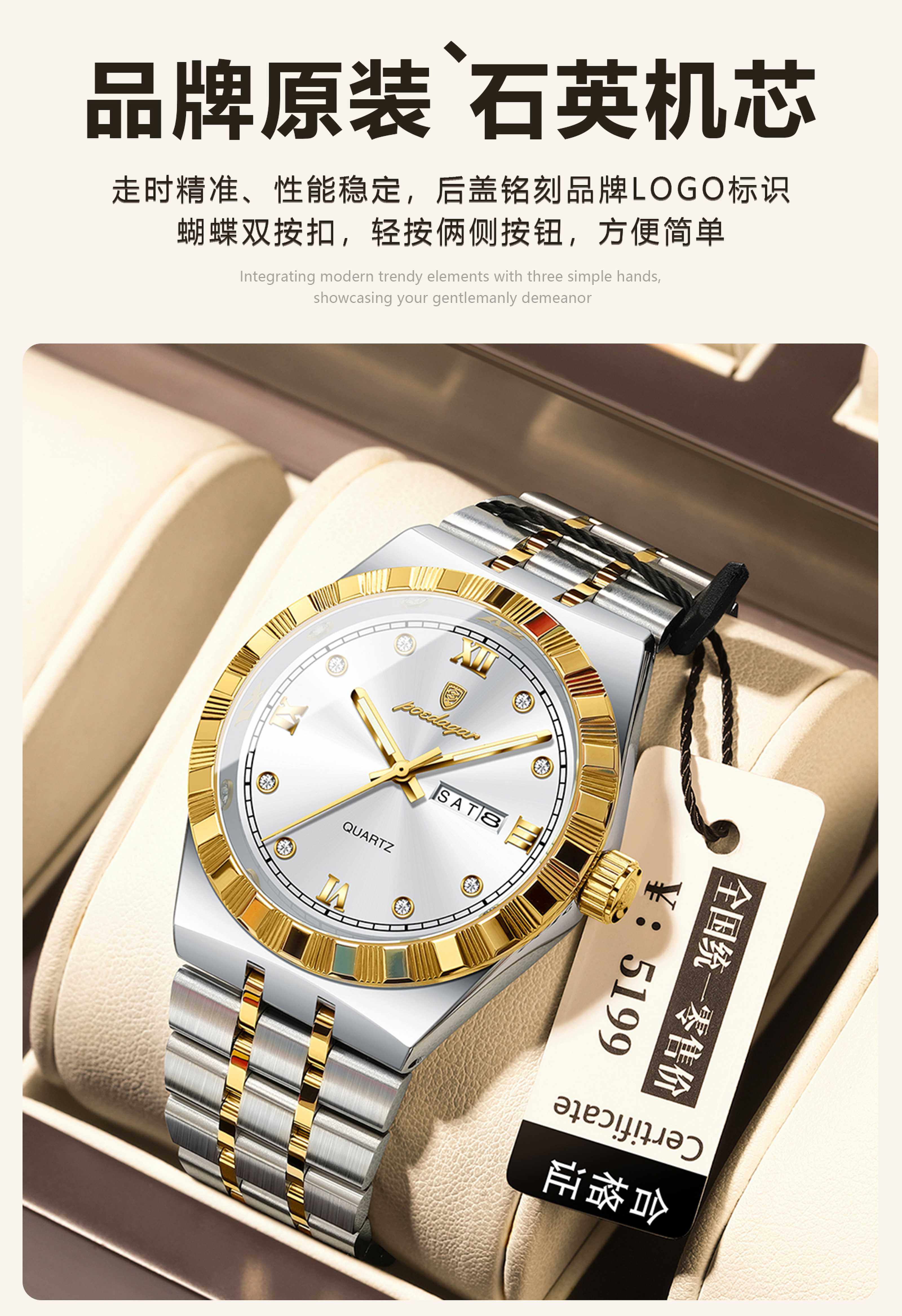 Genuine Brand-Name Men's Watch, Trendy and Fashionable, Luminous, Dual Calendar, Waterproof, Simple Watch, Men's Quartz Watch