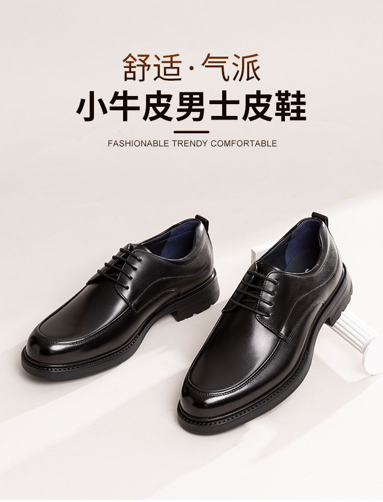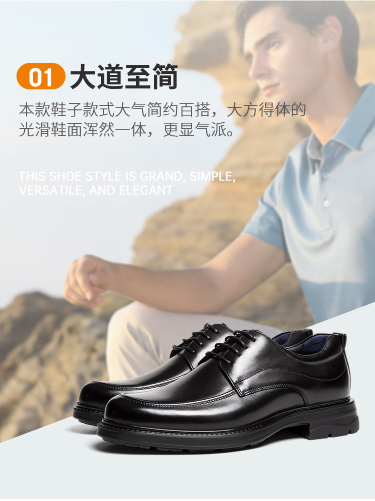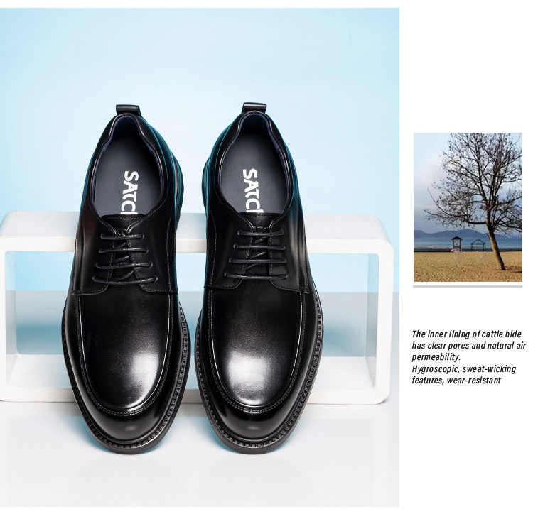 Sachi Men's Shoes, Men's Leather Shoes, Men's Black Commuter Genuine Leather Breathable Round-Toe Soft-Soled High-End Business Formal Derby Shoes