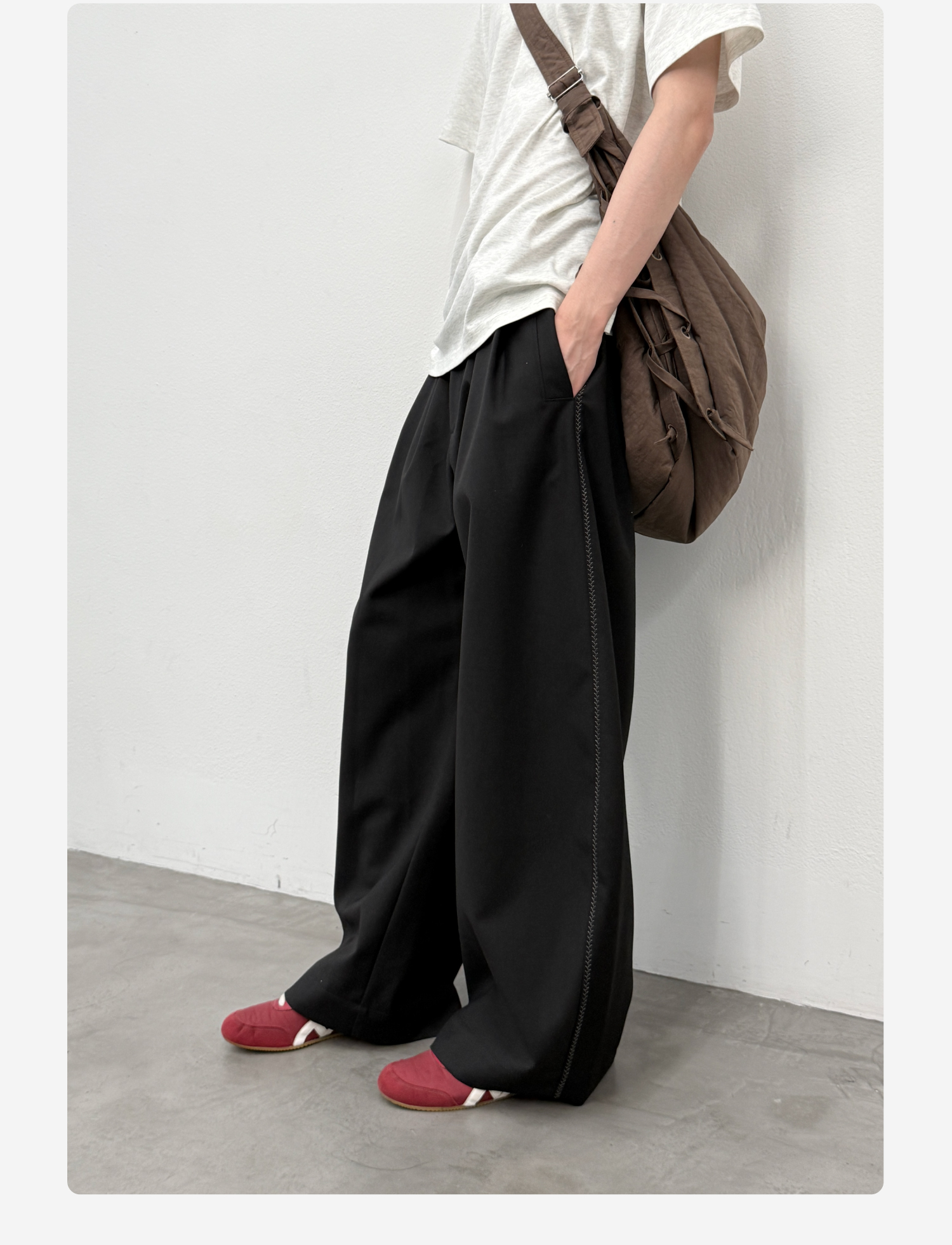 Roaringwild a Arch Roaring Beast Black Side Seam Visible Stitching Scimitar Pants Loose Wide-Leg Dress Pants for Men