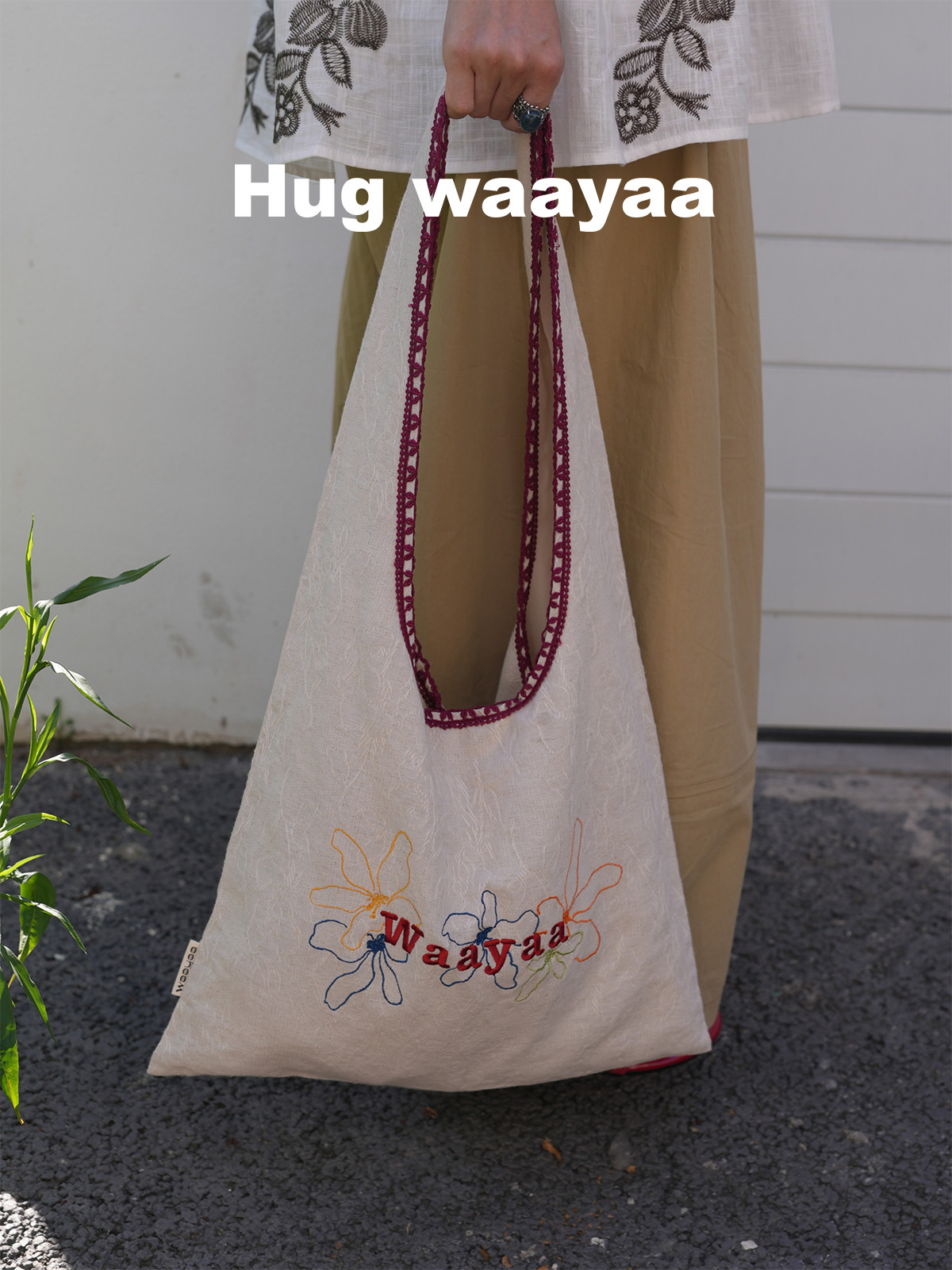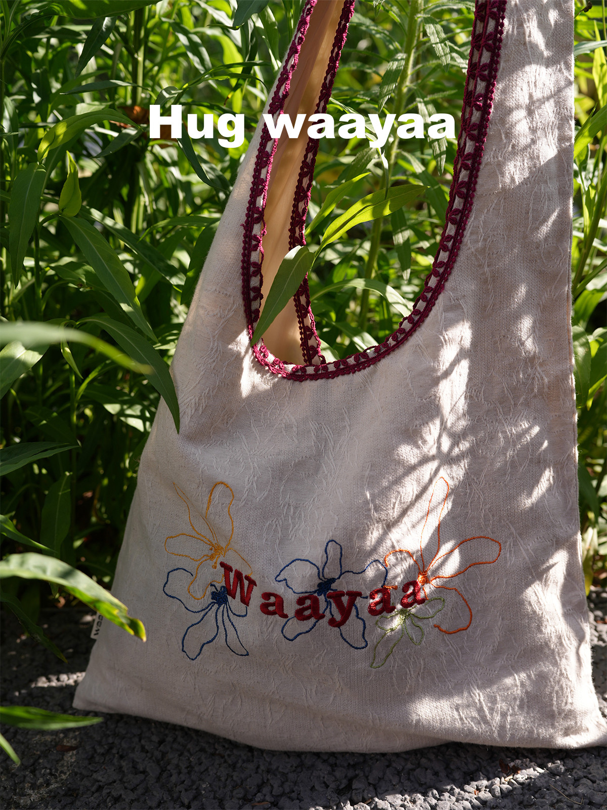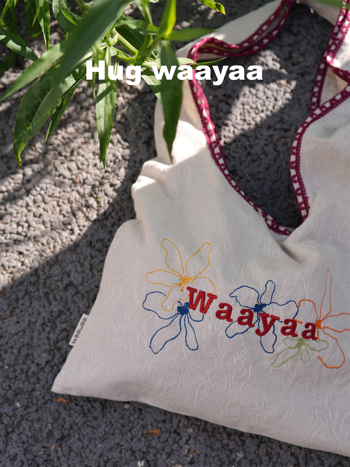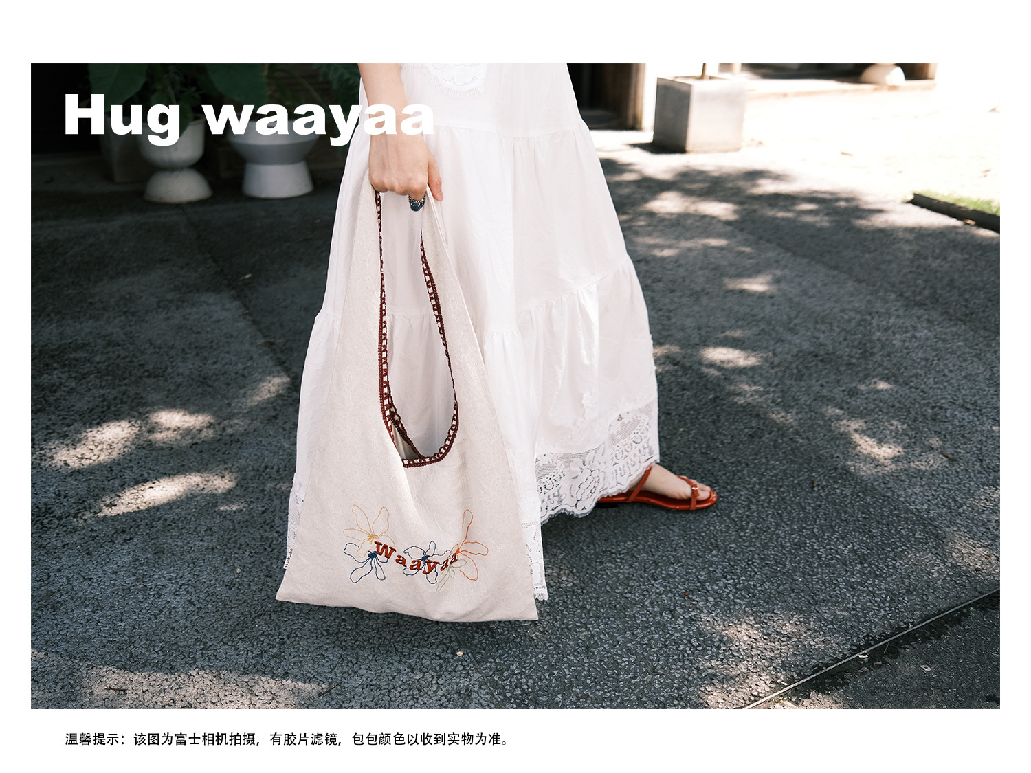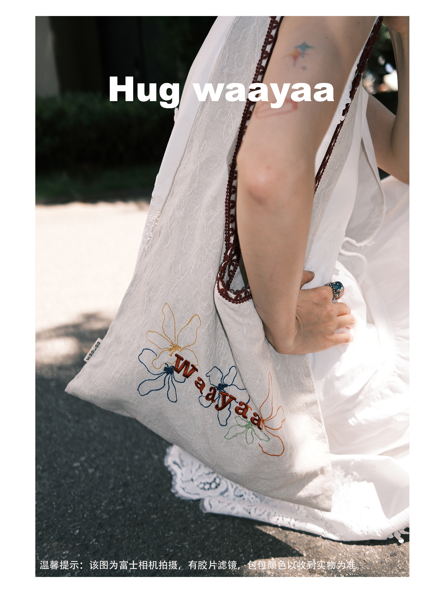 Hug Waayaa Original Illustration Hand-Embroidered Flower Paradise Flower Field Tote Shoulder Textured Canvas Bag for Women