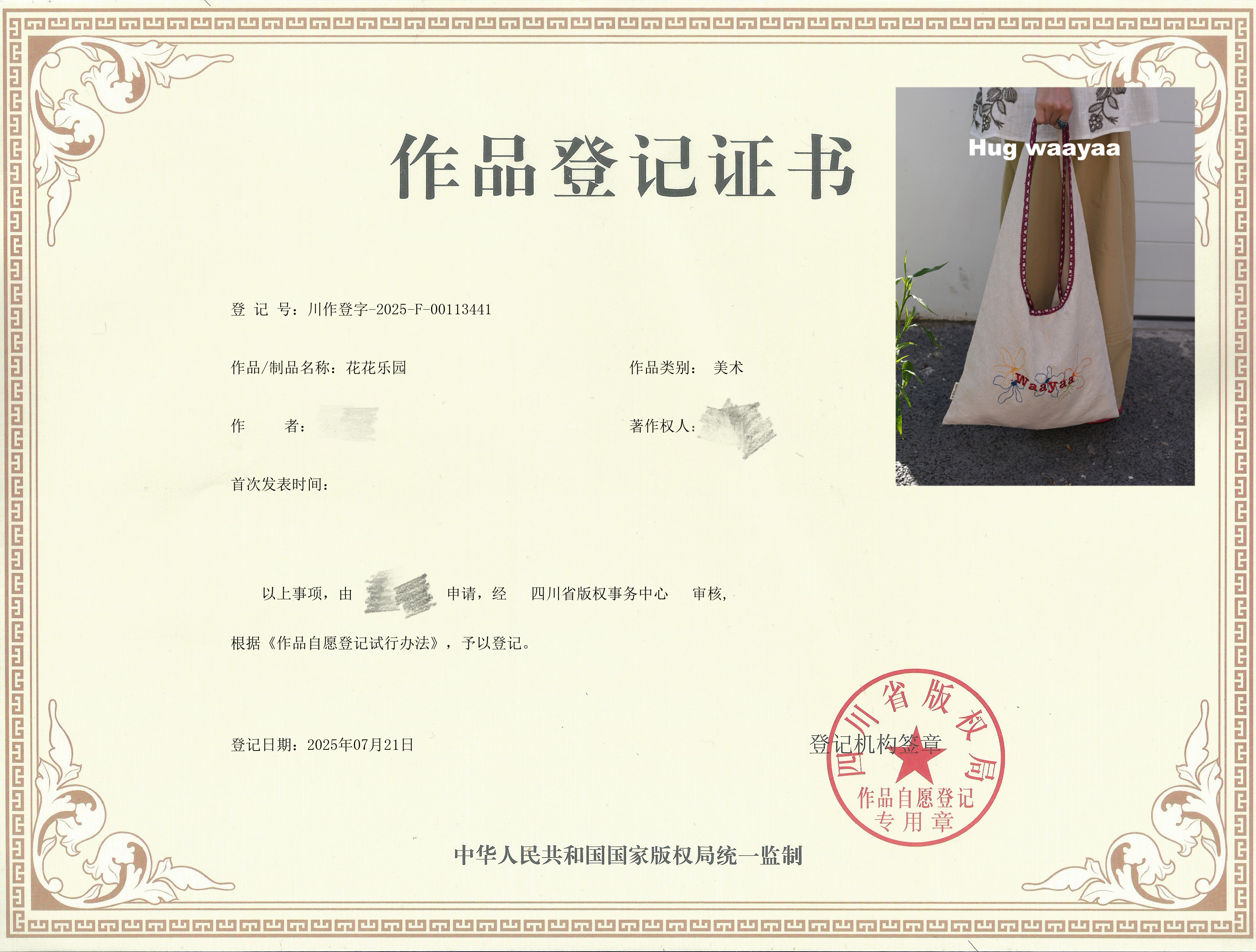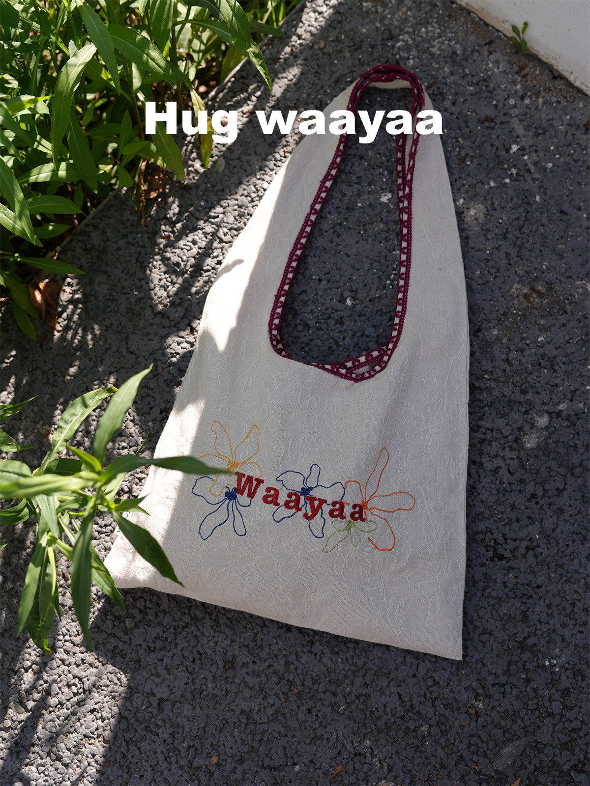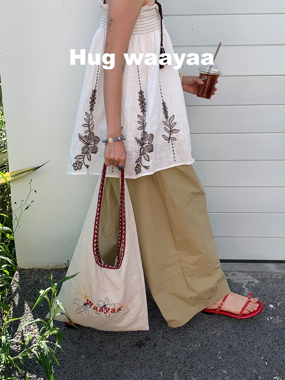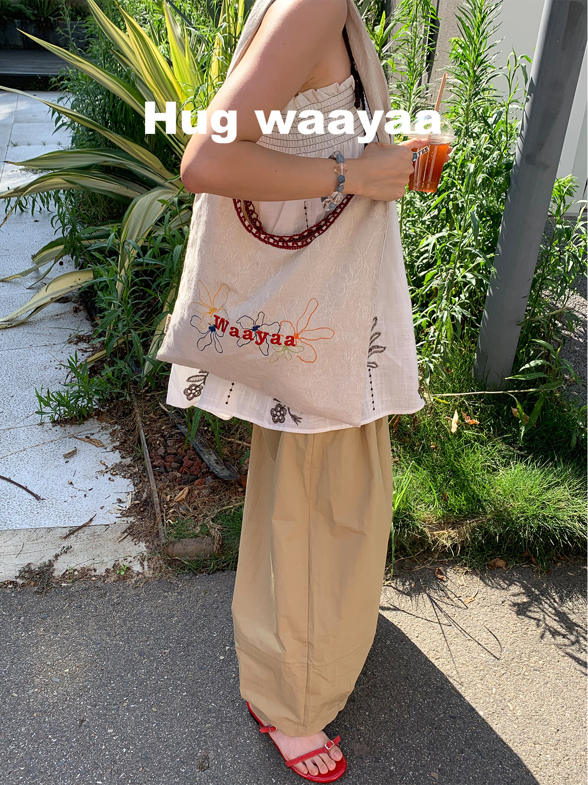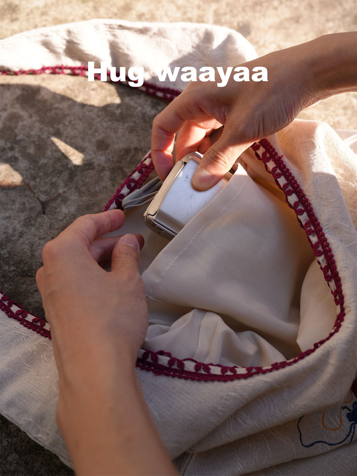 Hug Waayaa Original Illustration Hand-Embroidered Flower Paradise Flower Field Tote Shoulder Textured Canvas Bag for Women