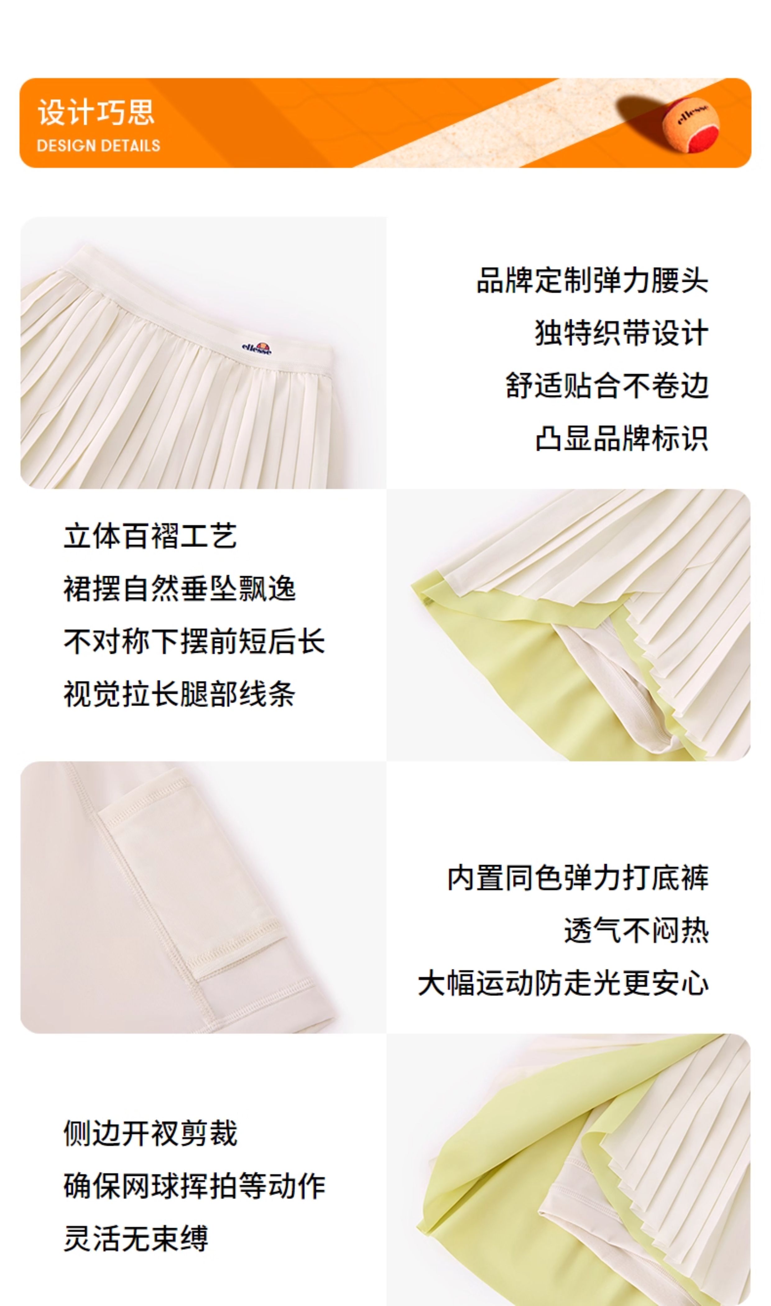 Ellesse Little Shell 25 Autumn New Asymmetrical Hem Pleated Skirt Sports Skirt Women's Anti-Exposure Skirt