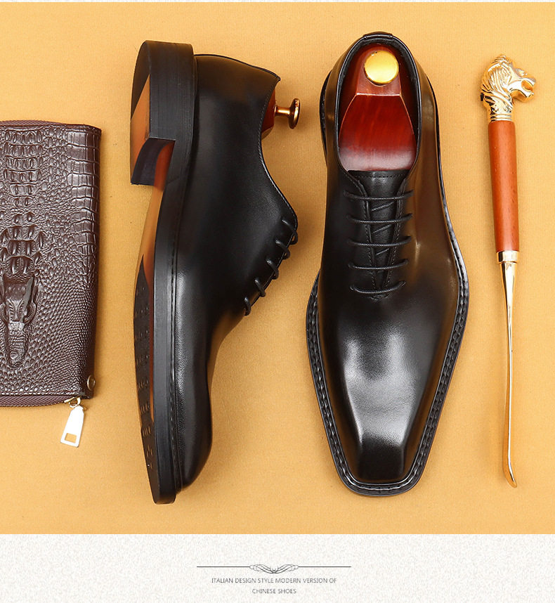 Oland Paul Spring and Summer New Leather Shoes Men's Genuine Leather Business Formal Wedding Shoes Square Toe Brown Oxford British Style