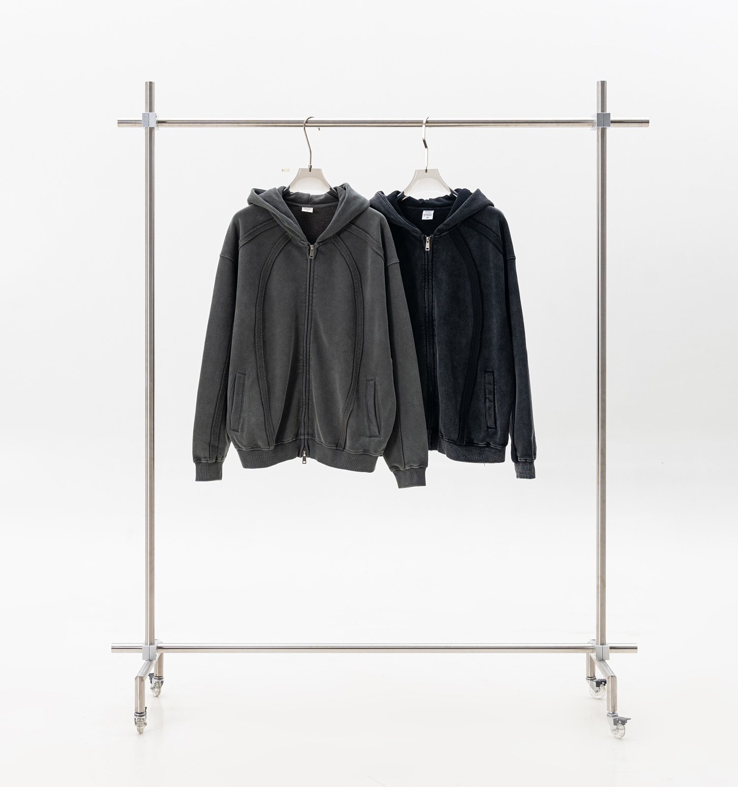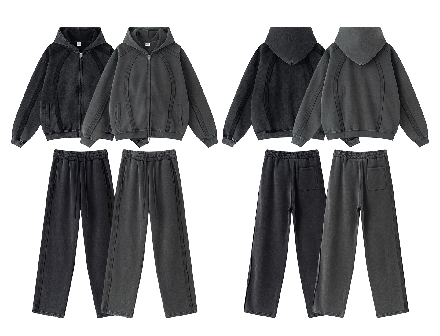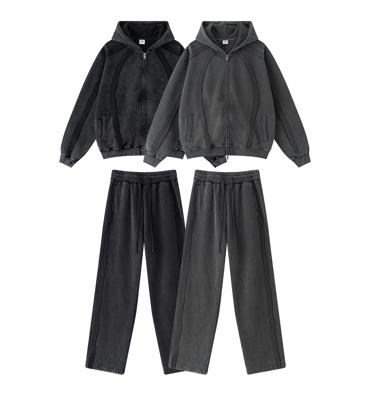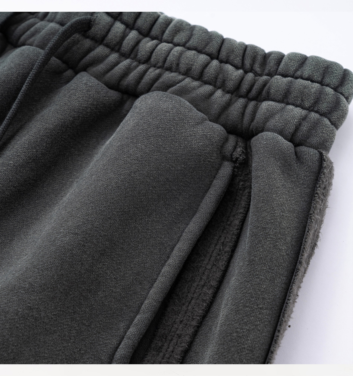 Personalized Urban American Retro Autumn and Winter 360g Washed Vintage Fleece-Lined Set Deconstructed Design Sweatshirt and Pants for Men and Women