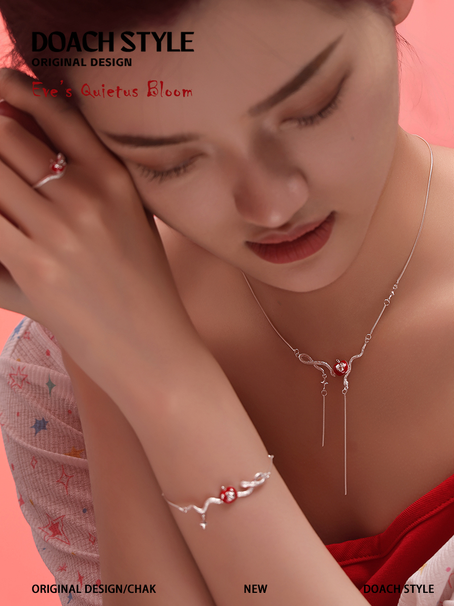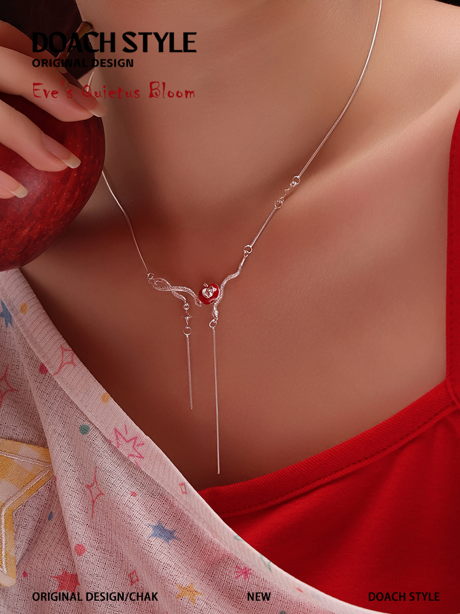 Doach Original S925 Sterling Silver Apple Necklace Niche Design High-End Sweet and Cool New Sand Snake Clavicle Chain