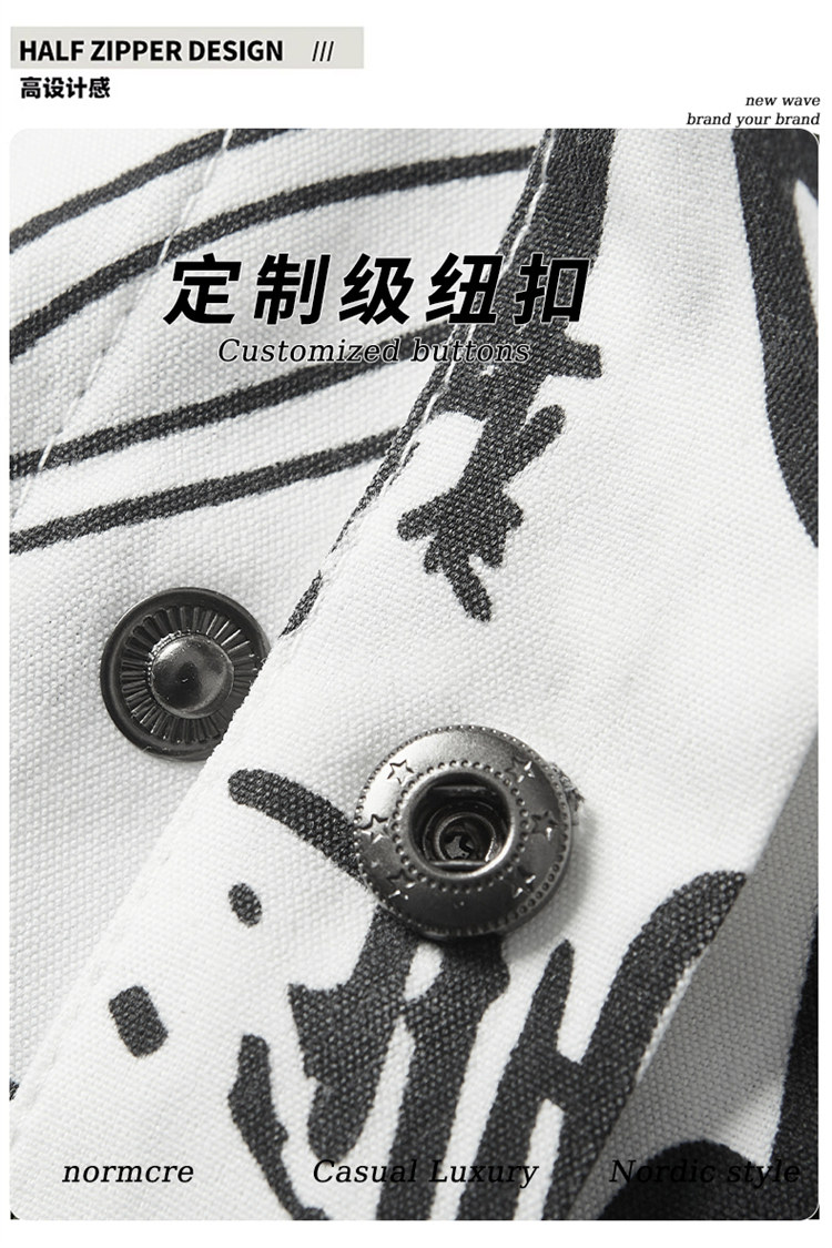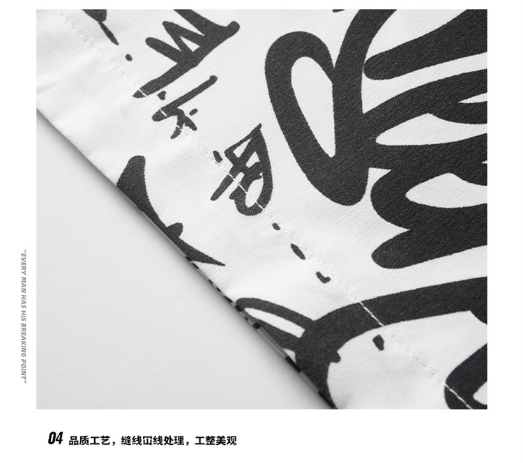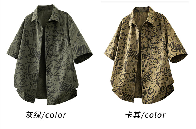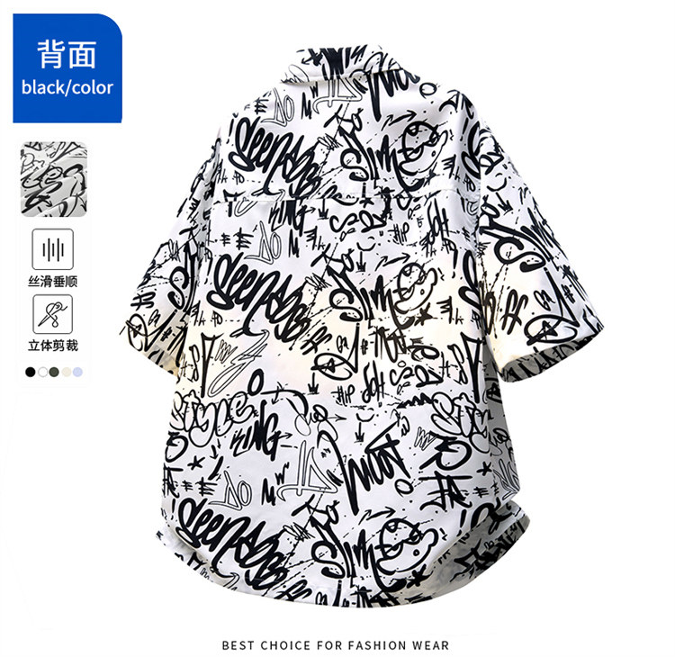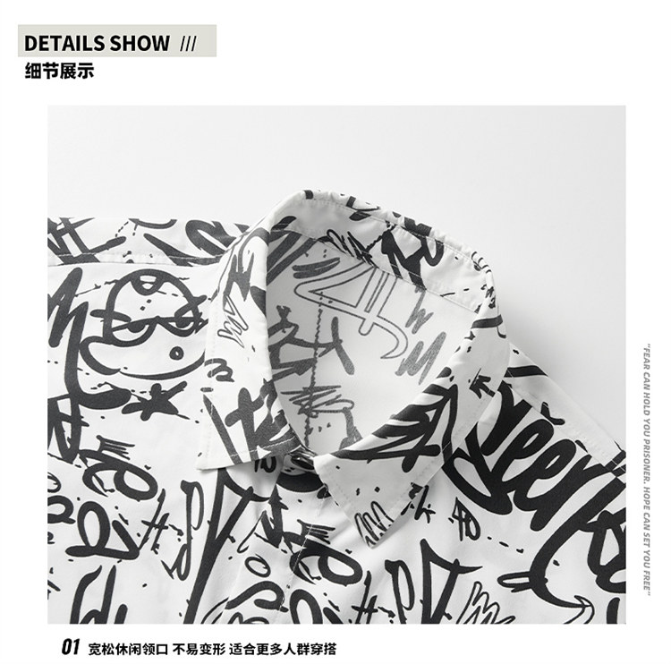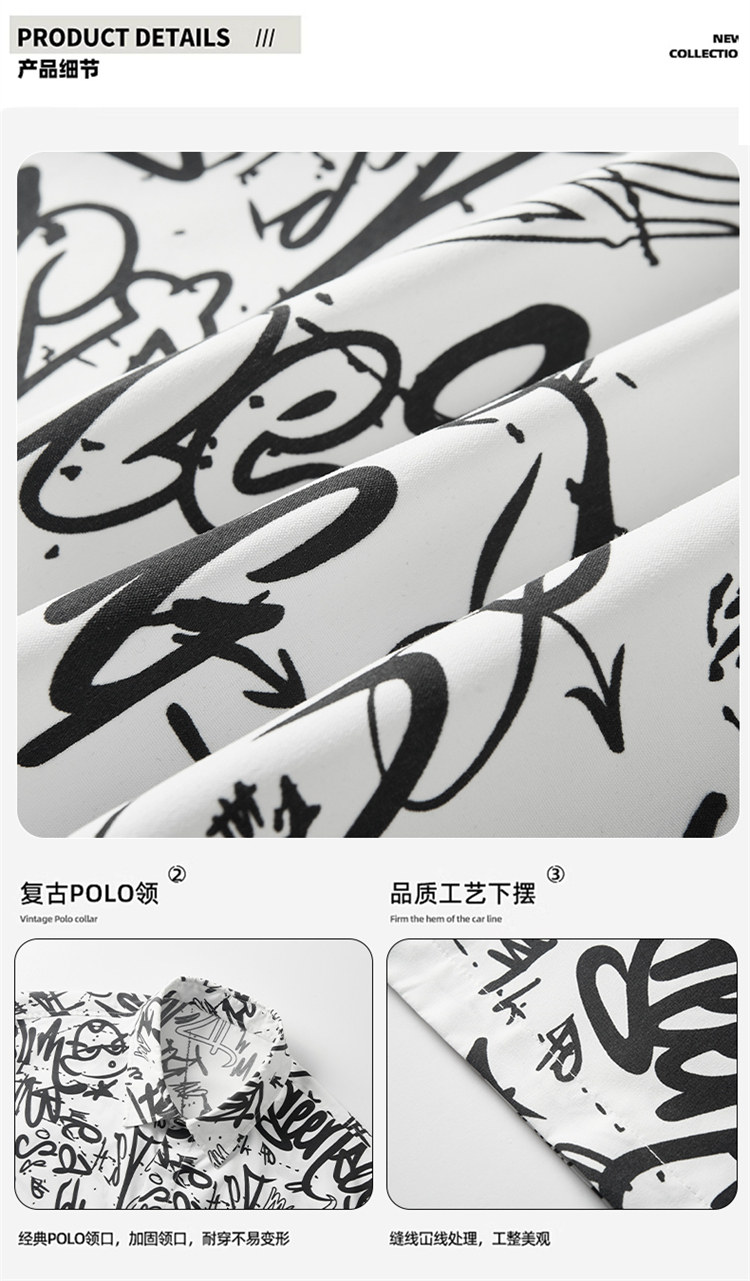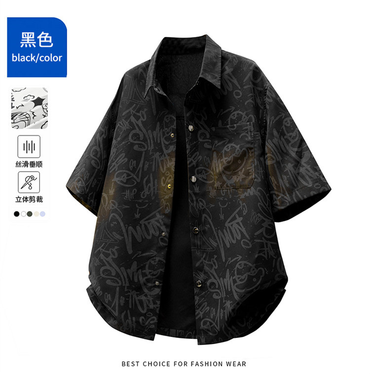 Wassup Line Trendy Brand Summer All-Over Print Short-Sleeve Shirt for Men, Loose Fit, Versatile, Breathable, Casual, Plus Size Top