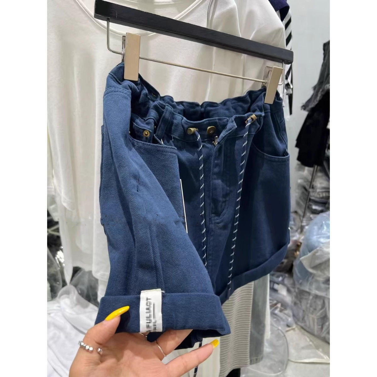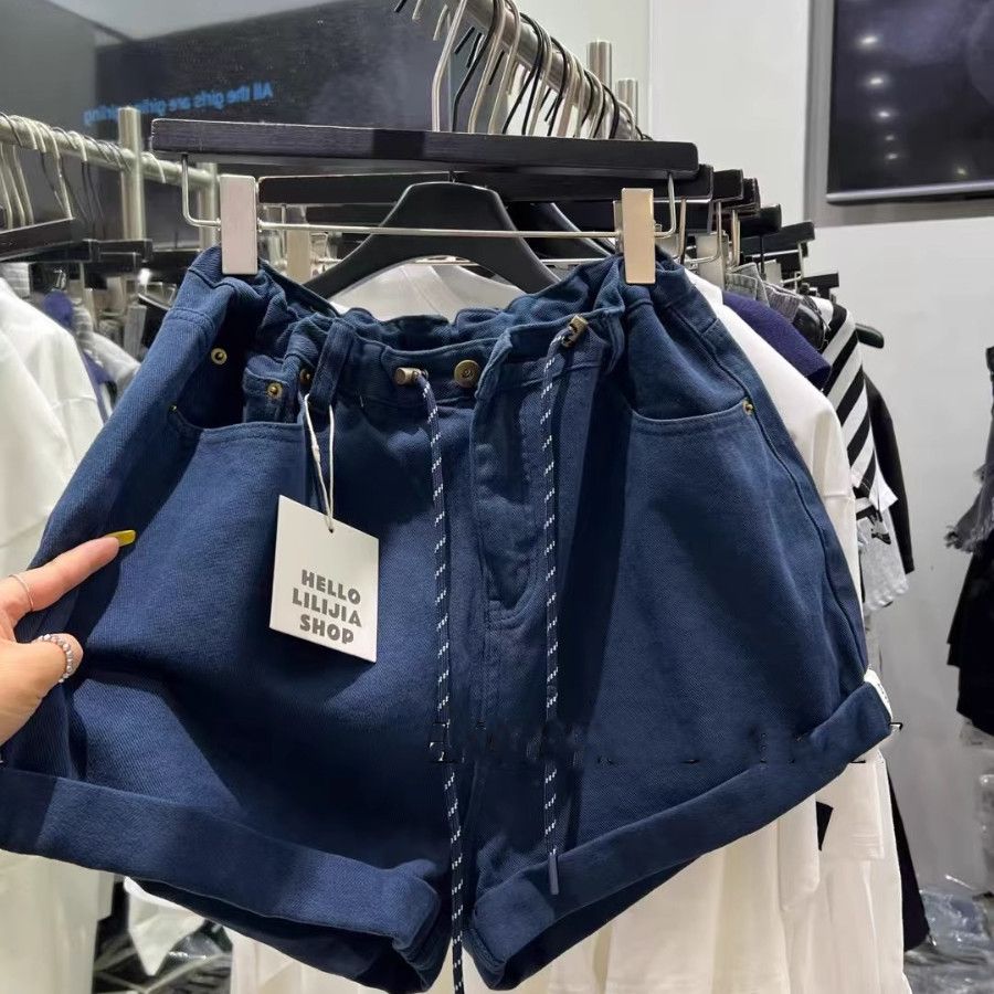 Korean Dongdaemun Designer Denim Shorts for Women, New Summer Style, Relaxed Fit, High-Waisted Drawstring Wide-Leg Bloomers