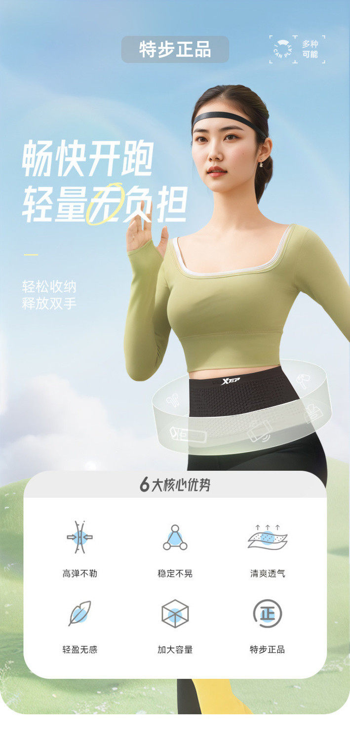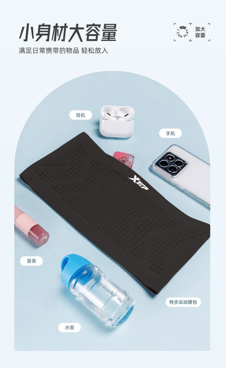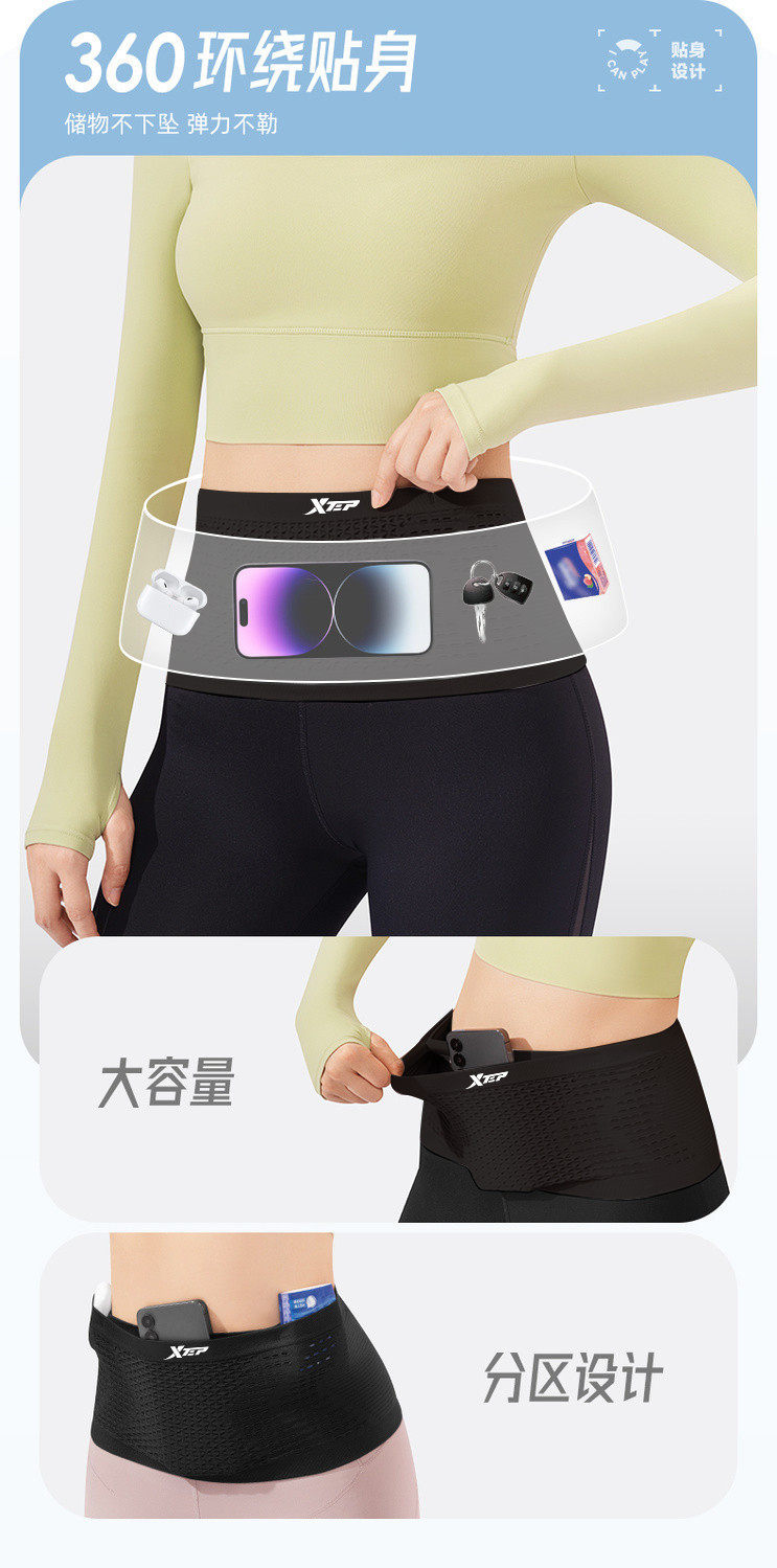 Xtep Sports Running Waist Bag for Men and Women, Invisible Phone Bag, Hiking and Cycling Water Bottle Belt Bag, Marathon Hiking