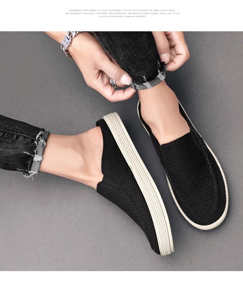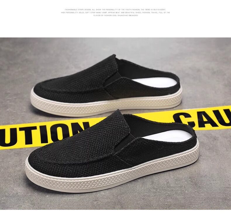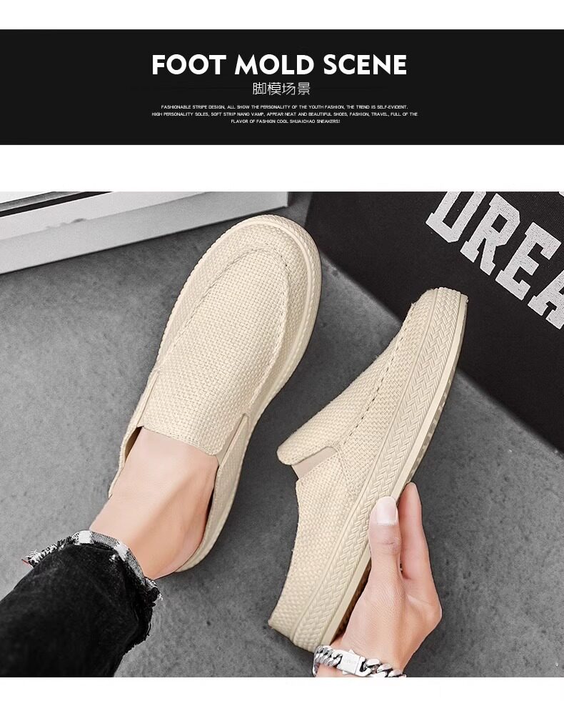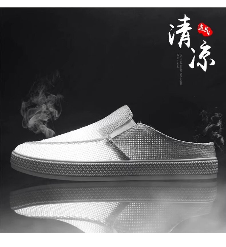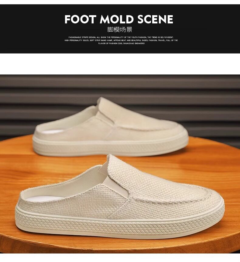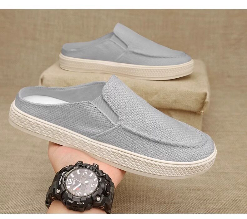 Canvas Men's Shoes 2025 Old Beijing Cloth Shoes with Thousand-Layer Soles, Slip-On Half-Mules, Casual Driving Shoes, New Thin Style for Spring and Summer