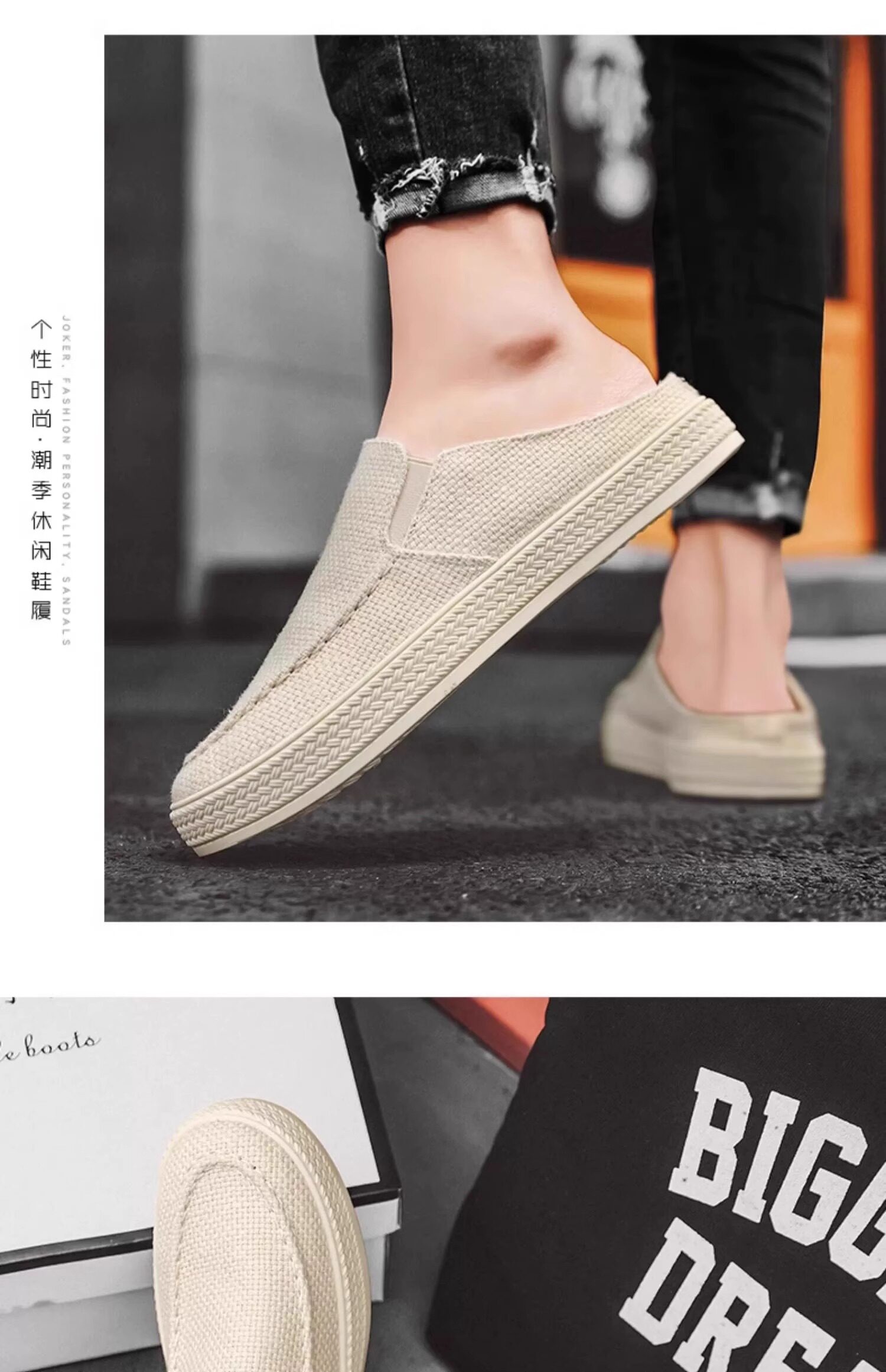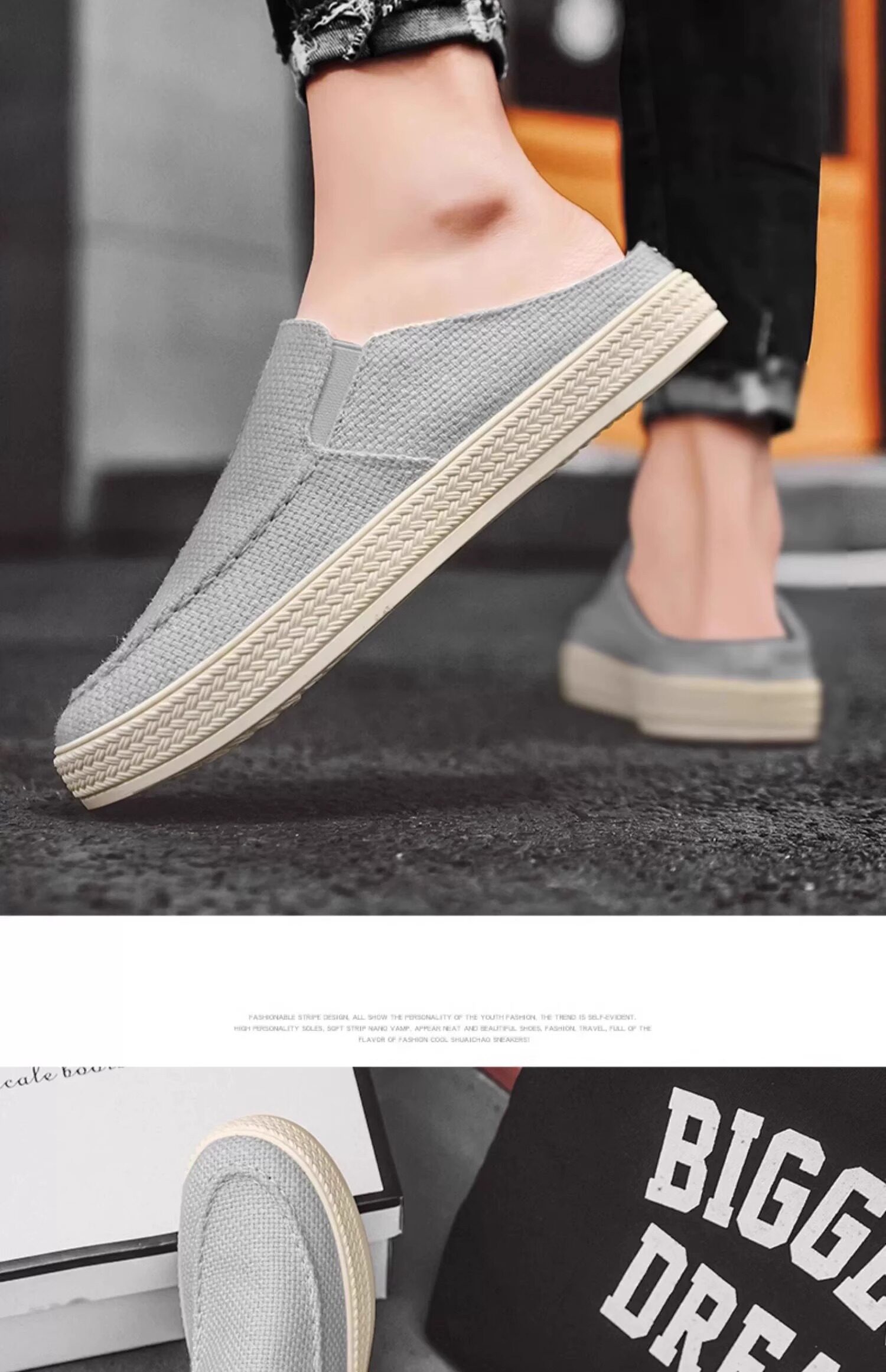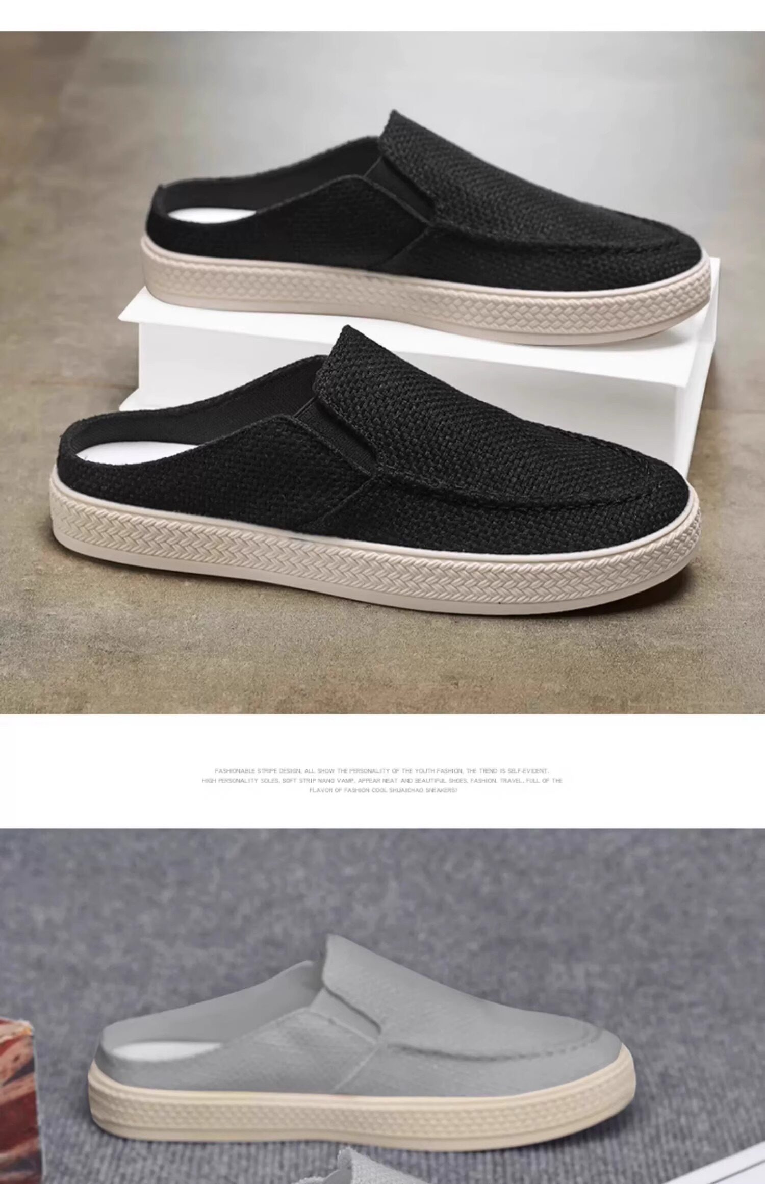 Canvas Men's Shoes 2025 Old Beijing Cloth Shoes with Thousand-Layer Soles, Slip-On Half-Mules, Casual Driving Shoes, New Thin Style for Spring and Summer